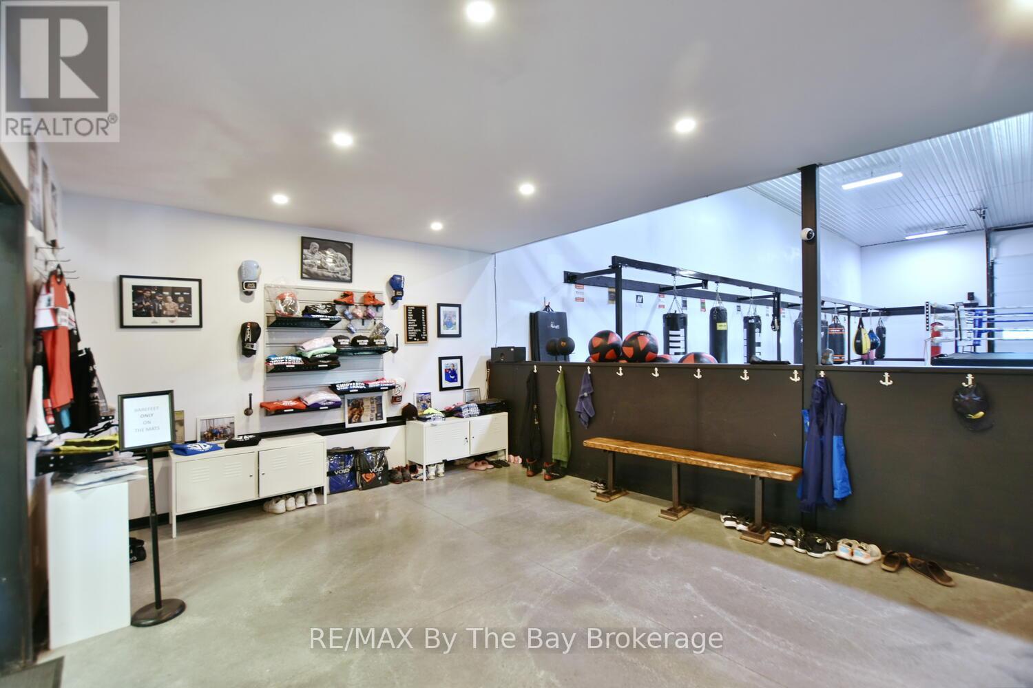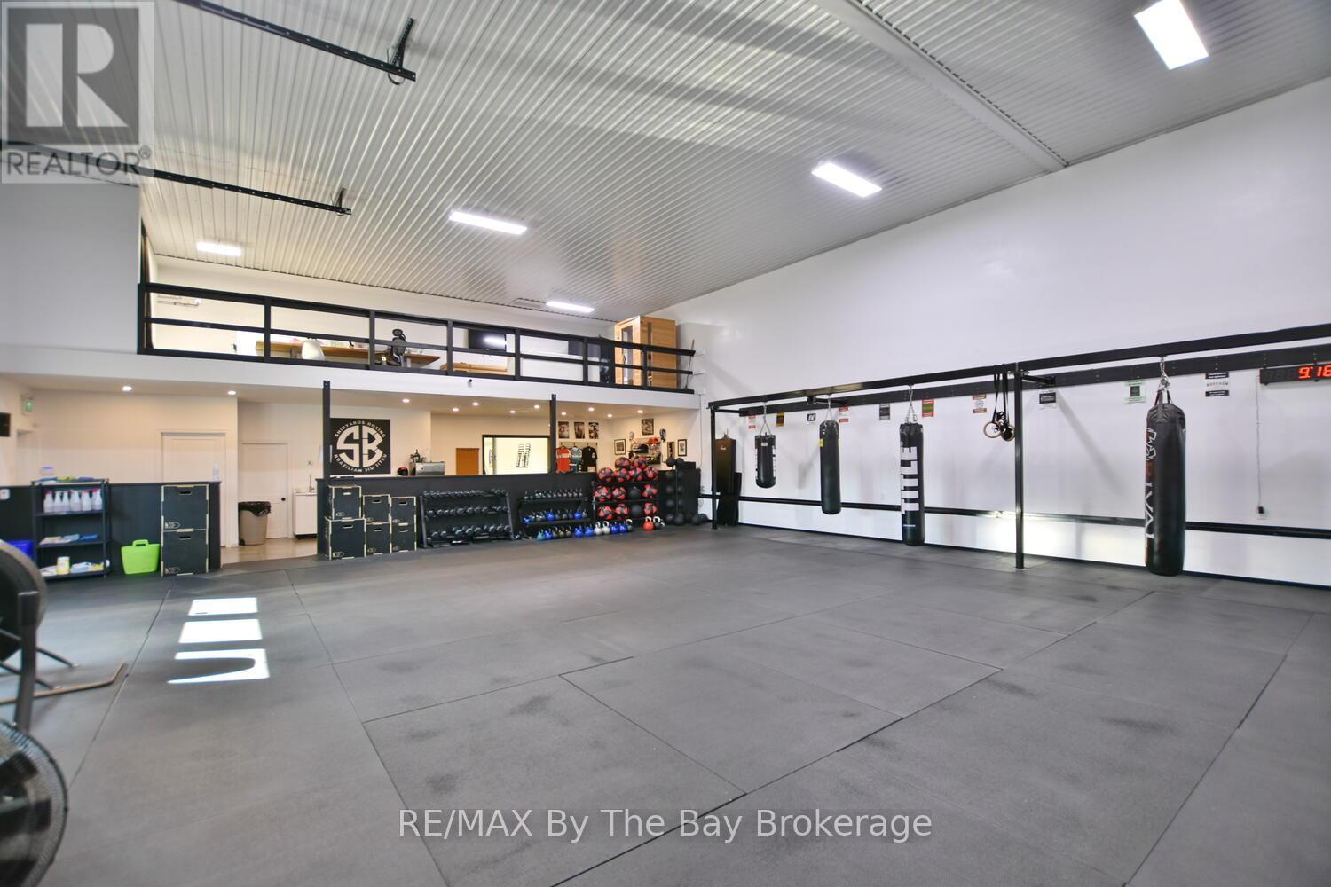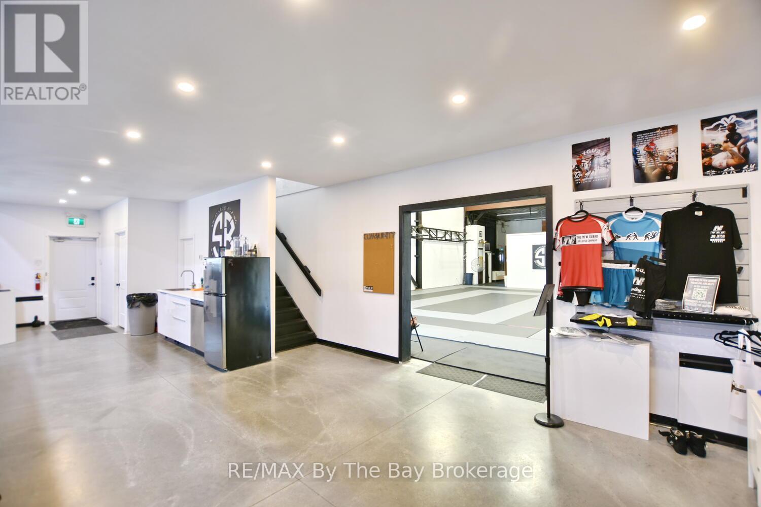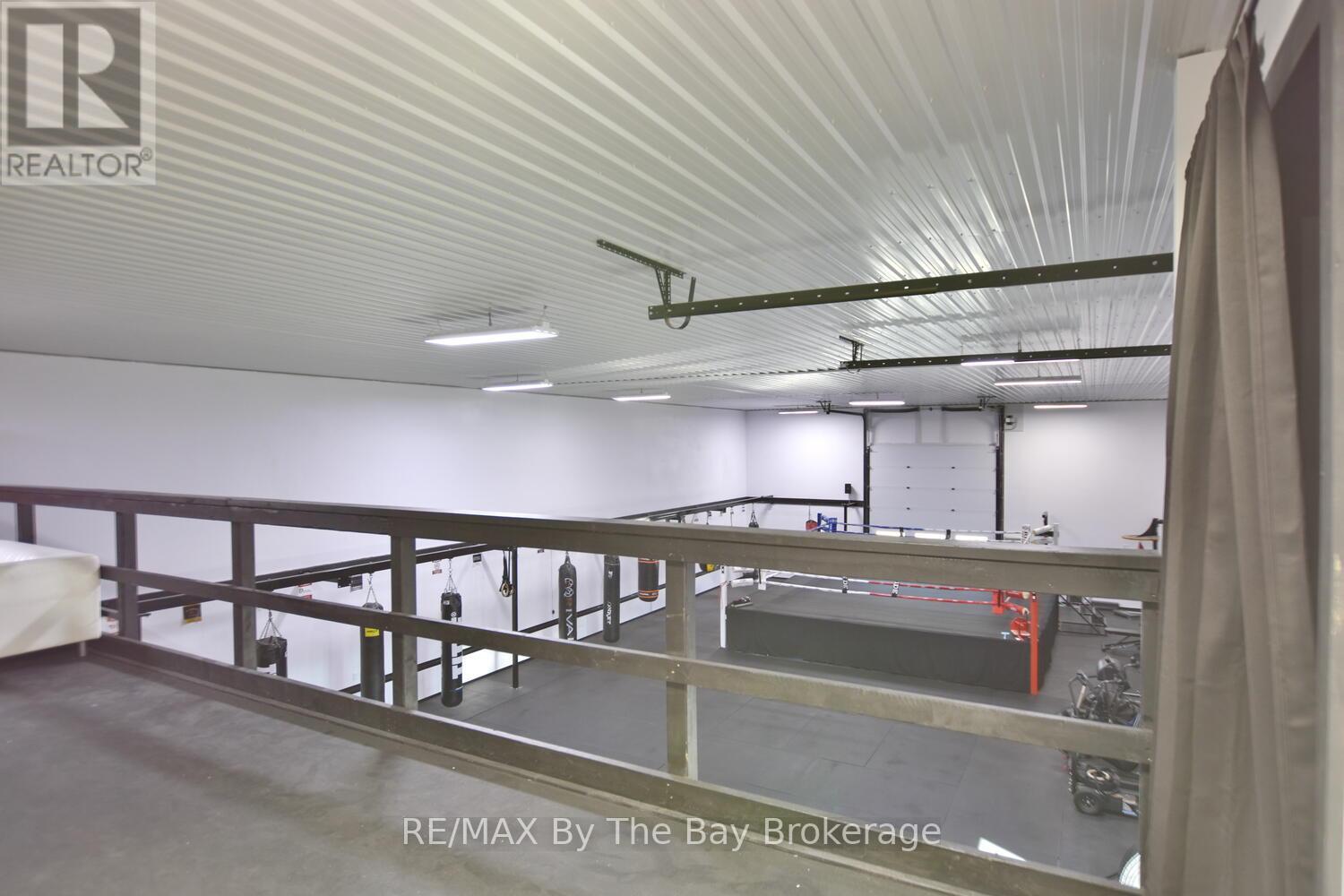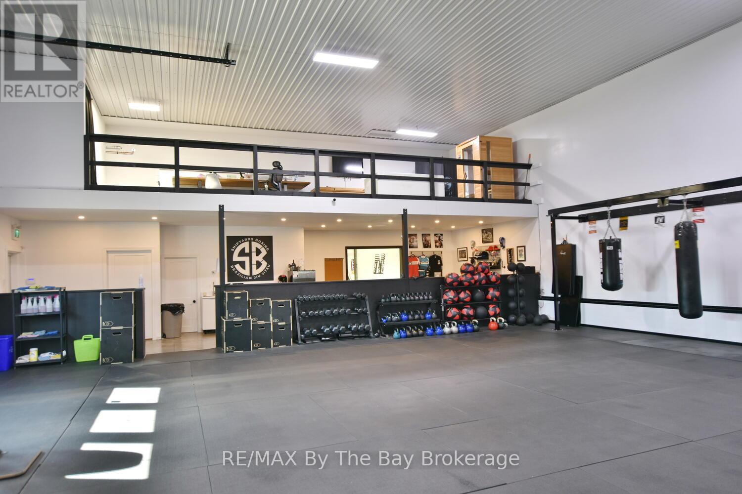 An exceptional opportunity to lease a versatile and well-appointed commercial/industrial space located in Collingwood's established industrial area, just minutes from the primary intersection of First Street and High Street. This highly functional unit was previously operating as a CrossFit gym and is well suited for a wide range of commercial, fitness, showroom, light industrial, or service-based uses. The property offers approximately 3,200 square feet on the main level, complemented by a 540 square foot mezzanine that overlooks the main floor, providing excellent sightlines and added flexibility for office, storage, or spectator use. A removable half wall allows the space to be opened further, creating a total usable area of approximately 3,541 square feet, depending on tenant requirements. The interior is finished with a clean, modern aesthetic, featuring bright lighting, white walls, and an open-concept layout that can be easily adapted to suit a variety of business needs. The building is equipped with radiant in-floor heating, offering efficient, consistent comfort throughout the space year-round. A large ground-level garage door provides convenient access for shipping, receiving, or equipment movement, making the unit ideal for businesses requiring loading capabilities. The property also benefits from ample on-site parking, ensuring ease of access for staff and clients alike. Offered at $5,000 per month plus utilities, with hydro averaging approximately $260 per month, this space represents excellent value for a well-located, move-in-ready commercial unit in a high-demand area of Collingwood. With its strategic location, flexible configuration, and high-quality interior finishes, this property presents an outstanding leasing opportunity for tenants seeking a functional and professional commercial space with strong long-term potential. (id:64974)