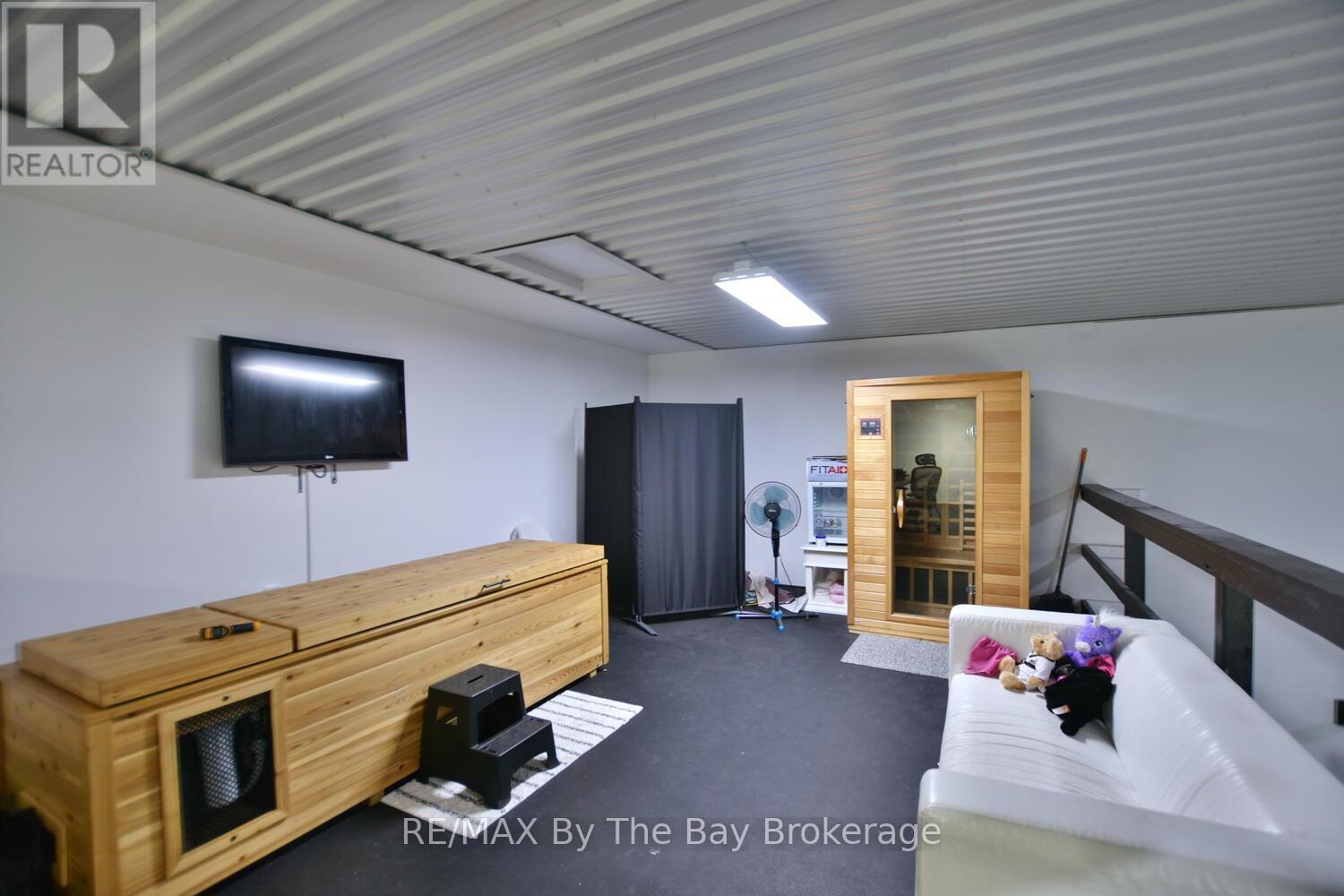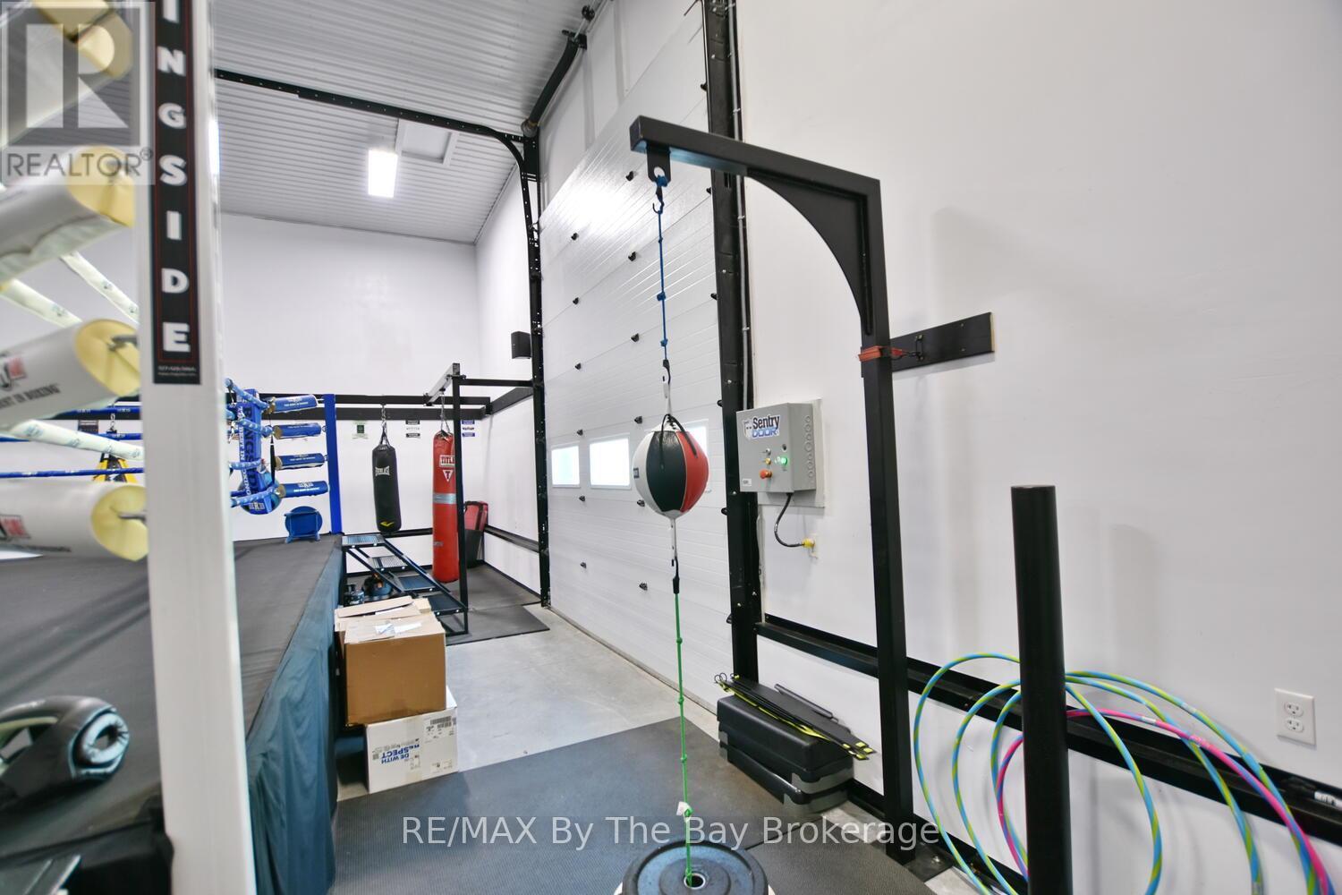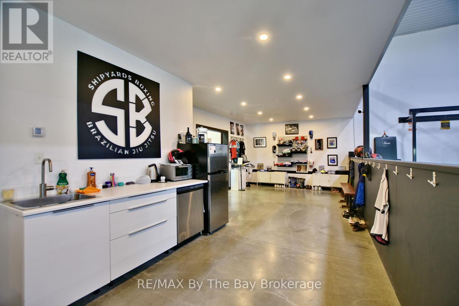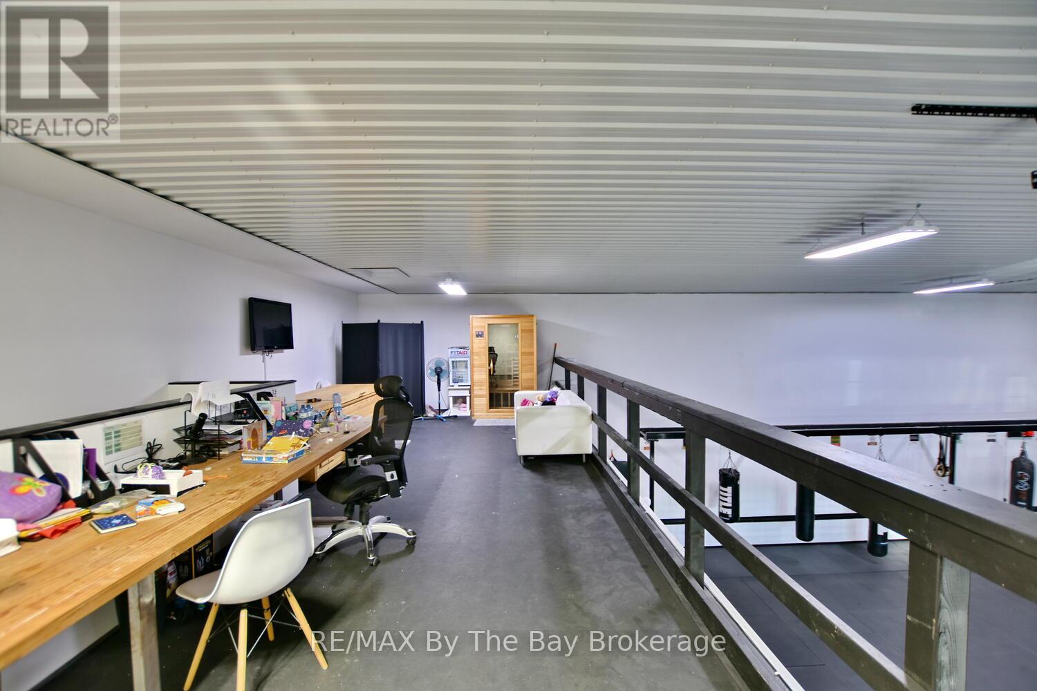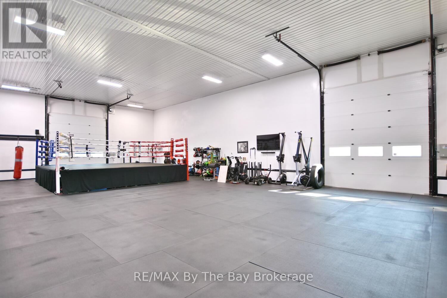 An exceptional opportunity to lease a versatile and well-appointed commercial/industrial space located in Collingwood's established industrial area, just minutes from the primary intersection of First Street and High Street. This highly functional unit was previously operating as a CrossFit gym and is well suited for a wide range of commercial, fitness, showroom, light industrial, or service-based uses. The property offers approximately 3,200 square feet on the main level, complemented by a 540 square foot mezzanine that overlooks the main floor, providing excellent sightlines and added flexibility for office, storage, or spectator use. A removable half wall allows the space to be opened further, creating a total usable area of approximately 3,541 square feet, depending on tenant requirements. The interior is finished with a clean, modern aesthetic, featuring bright lighting, white walls, and an open-concept layout that can be easily adapted to suit a variety of business needs. The building is equipped with radiant in-floor heating, offering efficient, consistent comfort throughout the space year-round. A large ground-level garage door provides convenient access for shipping, receiving, or equipment movement, making the unit ideal for businesses requiring loading capabilities. The property also benefits from ample on-site parking, ensuring ease of access for staff and clients alike. Offered at $5,000 per month plus utilities, with hydro averaging approximately $260 per month, this space represents excellent value for a well-located, move-in-ready commercial unit in a high-demand area of Collingwood. With its strategic location, flexible configuration, and high-quality interior finishes, this property presents an outstanding leasing opportunity for tenants seeking a functional and professional commercial space with strong long-term potential. (id:64974)