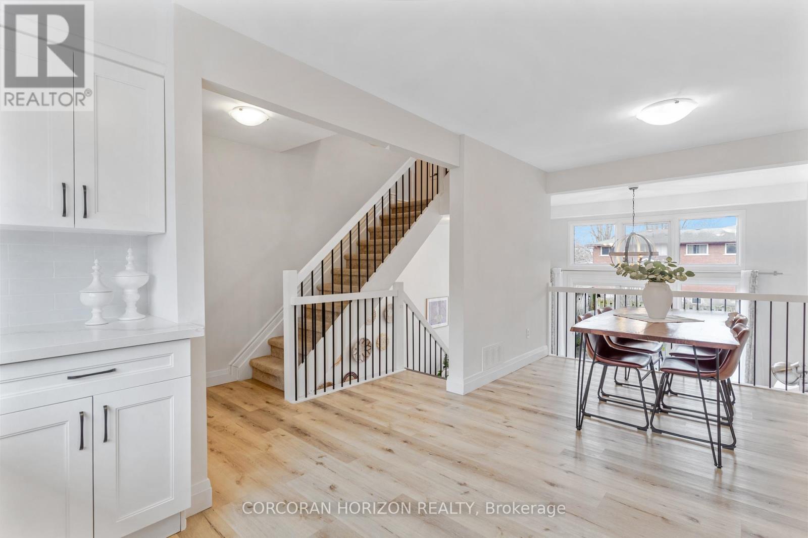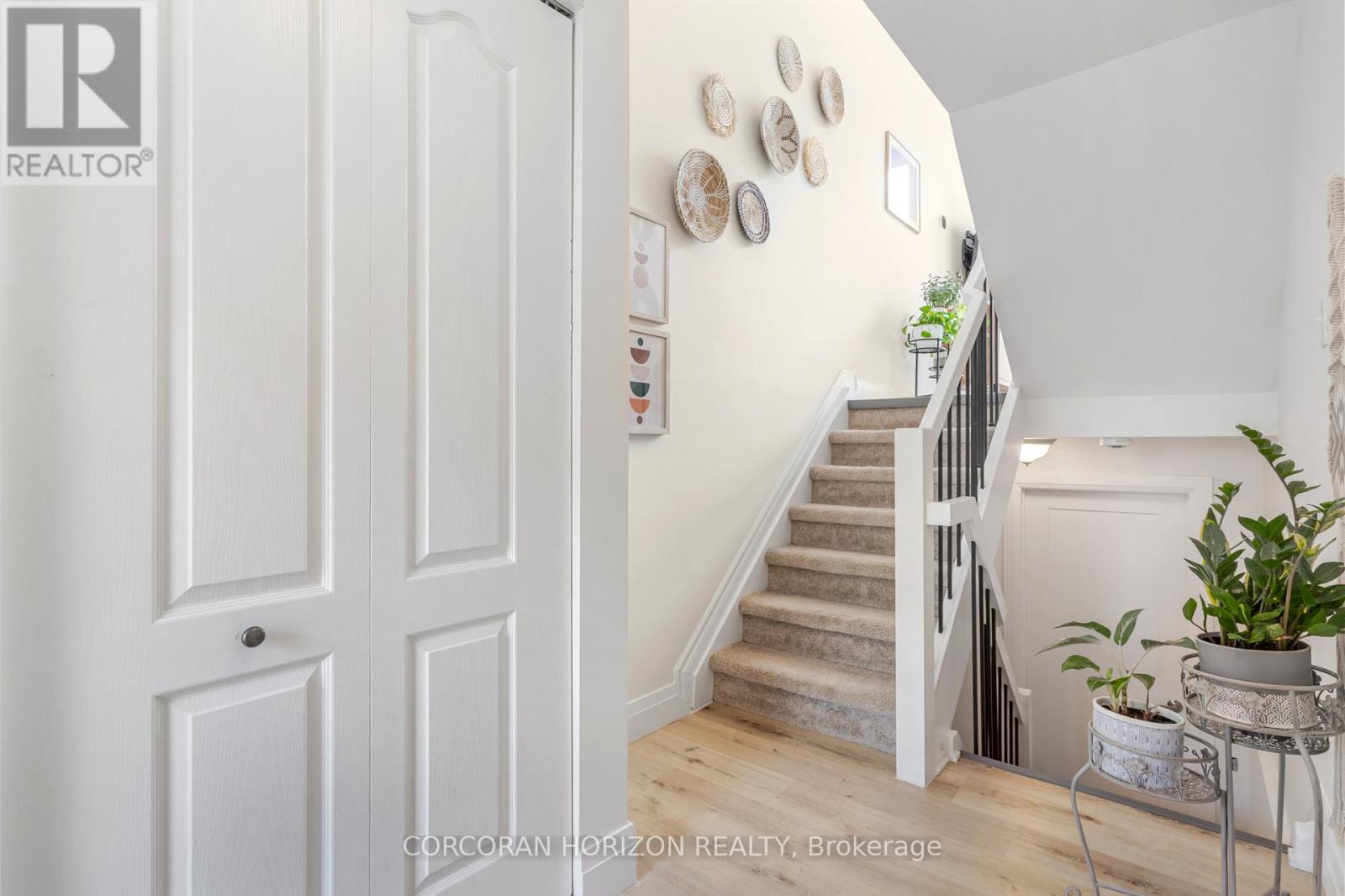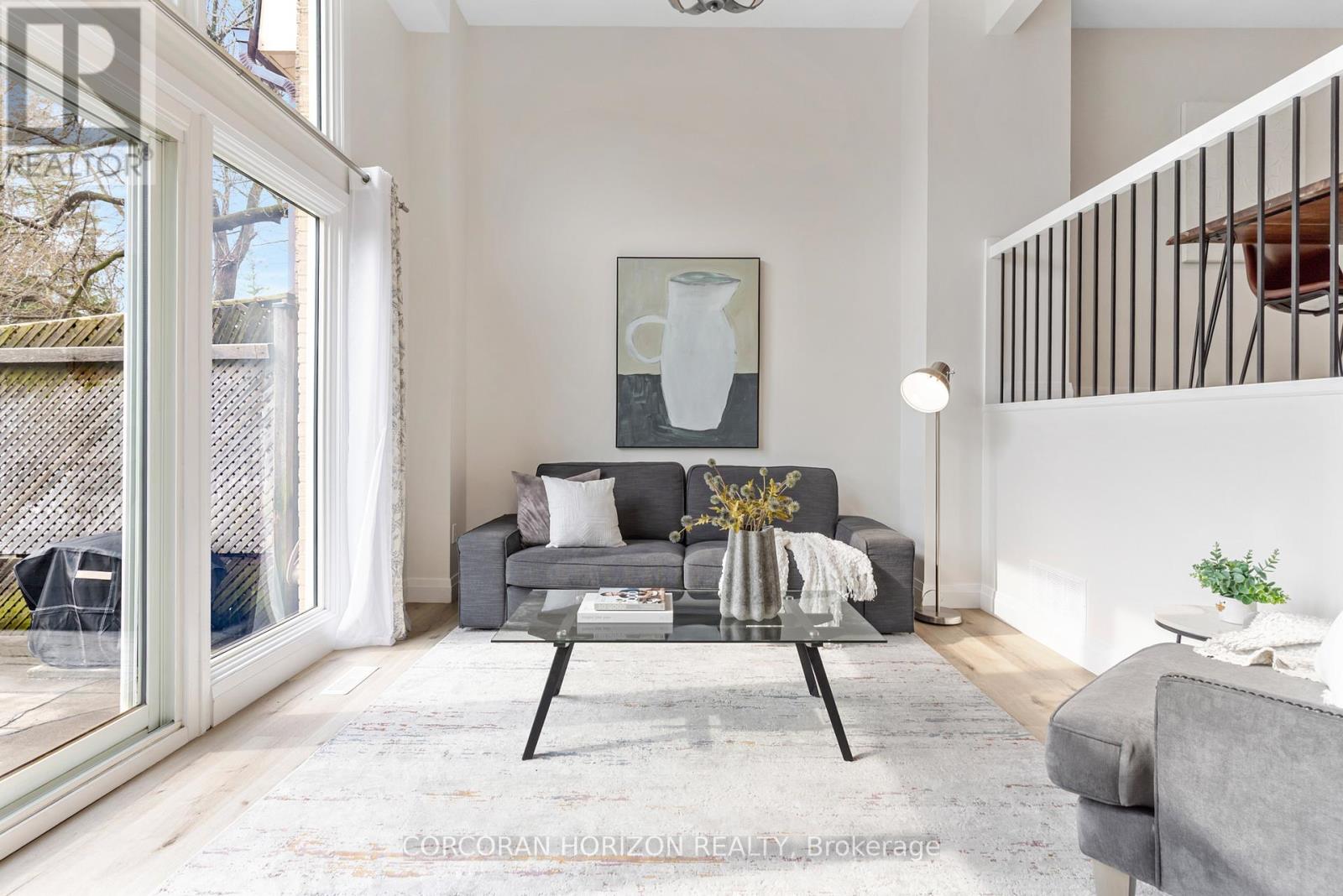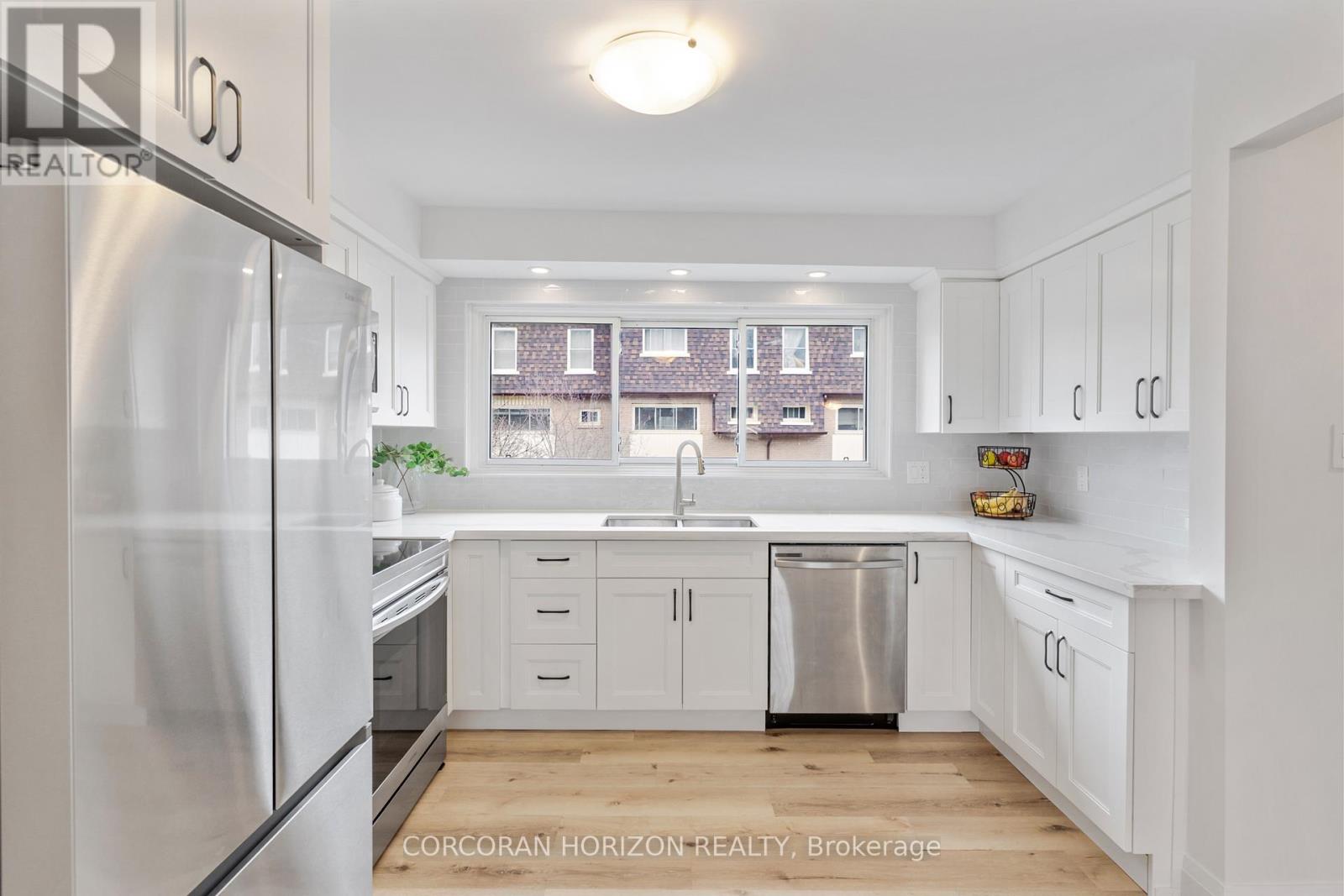 Welcome to 230 Blair Road, a beautifully updated townhome in the sought-after West Galt community offering a low-maintenance lifestyle.From the moment you enter, you're greeted by a bright, open-concept layout with updated vinyl flooring throughout and elegant black wrought iron railings that create a cohesive, modern feel. The impressive 20-foot cathedral ceilings in the living room, combined with floor-to-ceiling windows and sliding glass doors, fill the space with natural light and create a warm, inviting atmosphere.Step outside to your private patio, perfect for relaxing or entertaining, with convenient access to the shared green space.The second level overlooks the living area and features a dedicated dining space and a stylish, updated kitchen complete with stainless steel appliances, quartz countertops, solid wood cabinetry with soft-close drawers, crown moulding, and a contemporary backsplash.A convenient 2-piece powder room completes the main level.Upstairs, you'll find three spacious bedrooms and a well-appointed 4-piece bathroom, offering comfortable living for families, guests, or a home office setup.The partially finished basement provides additional living potential, along with a laundry area and ample storage space.Ideally located close to parks, scenic river trails, public transit, Highway 401 access, schools, and Conestoga College, this home offers both convenience and lifestyle in a well-established neighbourhood. (id:64974)