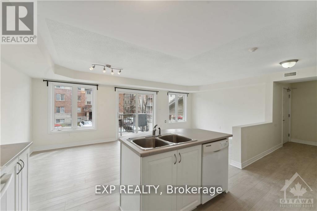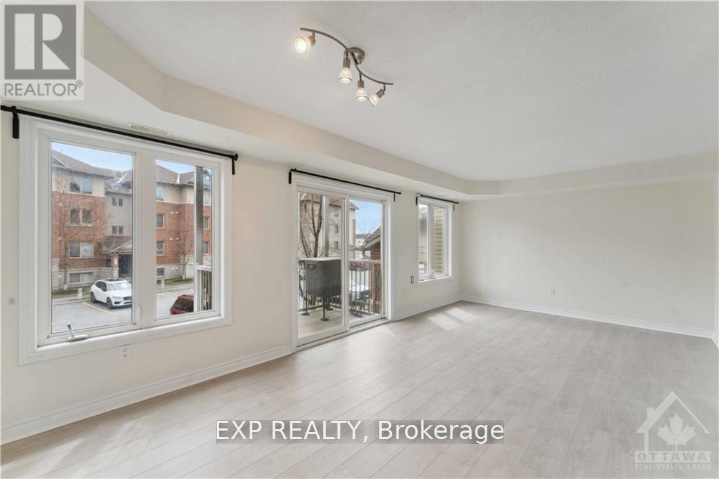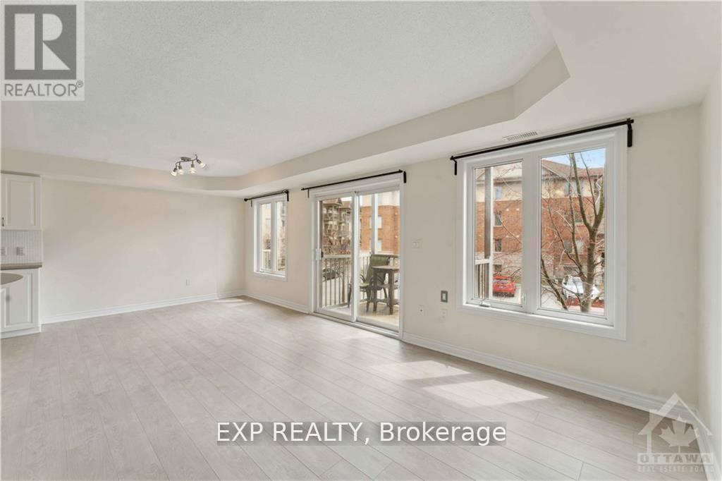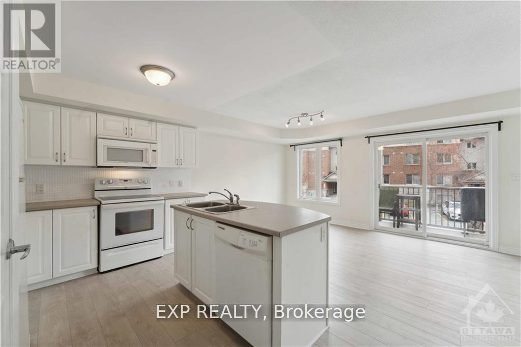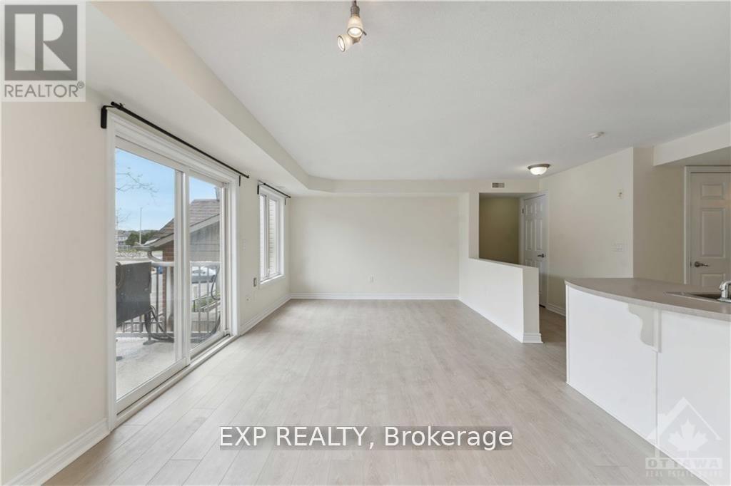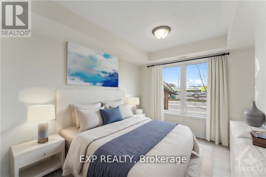 Bright and spacious 2-bedroom condo in the heart of Barrhaven, conveniently located near Vimy Memorial Bridge, Riverside South, public transit, and everyday essentials like grocery stores, Tim Hortons, and restaurants just across the street. This carpet-free, open-concept unit features large windows that fill the space with natural light, a private balcony, and modern luxury vinyl flooring throughout. The bright kitchen includes an island with extra seating and flows seamlessly into the dining and living area, perfect for comfortable living and entertaining. The unit offers two spacious bedrooms, in-suite laundry, an oversized utility room, two linen closets, and ample storage to keep everything organized. Accessibility is made easy with a ramp and stairlift leading directly to the unit. The parking spot is conveniently located right in front, with visitor parking also available. Rent includes exterior maintenance, snow removal, and lawn care. Tenants are responsible for utilities, hot water tank rental, and tenant insurance. No smoking and no large pets. A rental application, Equifax credit check, proof of income, recent pay stubs and photo ID are required. Available March 1. (id:64974)