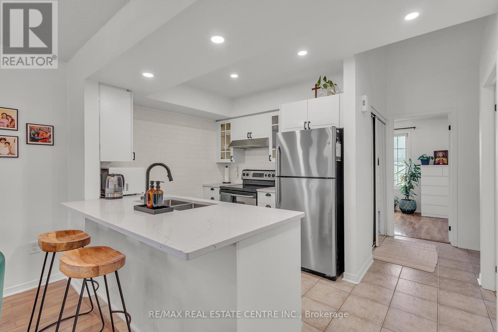 Rarely offered end-unit townhouse on Petra Way in Whitby. This bright and spacious home offers approximately 1,516 sq ft of living space with an abundance of natural light from multiple windows and views of the landscaped courtyard.The main level features three well-sized bedrooms and an updated kitchen with quartz countertops (2022), pot lights, and a custom pantry with coffee bar (2022). The open-concept living and dining area provides a functional layout for everyday living and entertaining, along with ensuite laundry and additional storage. The pantry area offers potential for alternative use, including possible future conversion.The upper-level loft offers flexible use as an additional bedroom, home office, or recreation space.Includes owned hot water tank (2021), one underground parking space, and a locker. Maintenance fee includes water, roof and window maintenance, snow removal, and garbage pick-up.Conveniently located close to shopping, restaurants, parks, schools, public transit, and major highways (401, 407), with easy access to GO Transit. Nearby amenities include Thermea Spa Village, Downtown Whitby, and several schools, parks, including Teddington Parkette, Fallingbrook Park, and Robinson Park. (id:64974)
