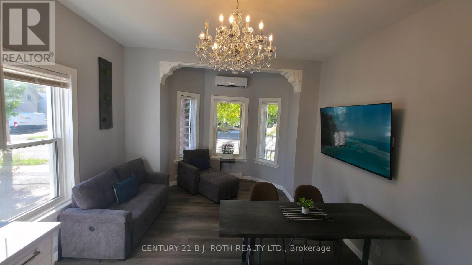Never lived in, new everything, bright, fully furnished, modern 1-bedrrom apartment (no bed door) with high end luxury finishes. 3GB Fiber Wifi included. Stainless steel appliances including Dishwasher and Washer/Dryer Combo. The bathroom and entrance have in-floor heating for your comfort. Air Conditioner. Huge, fully equipped kitchen with all dishes and cookware, including a kettle, toaster, etc. Elegant Quartz countertops & backsplash with undermount sink. Queen bed with never used sheets/linens and huge under bed storage drawers. The couch pulls out to a double size bed. Wall mounted 4k smart TV with Netflix & Prime included, HDMI in your devices. Parking available if required. Located north of Coldwater in a beautiful family friendly neighbourhood. Perfect location, just steps from downtown, 600 metres from Memorial Hospital, walking distance to Couchiching Beach. Main transit line on Coldwater makes getting around quick & easy. Why fully furnish an apartment yourself when you can move in here and save 10s of thousands. If you're looking for simplicity, high end comfort in a great location, this could be the place for you. Host / owner has vast experience working with Professional, Corporate, and senior clients. The building has 6 apartments in total which could be packaged together for a client looking for multiple units. Please note appliances will be maintained for the entire tenancy. All other furnishings will not be replaced as they age out of their useful life. Please ask for specific details. Rent plus electric plus parking if needed. (id:64974)