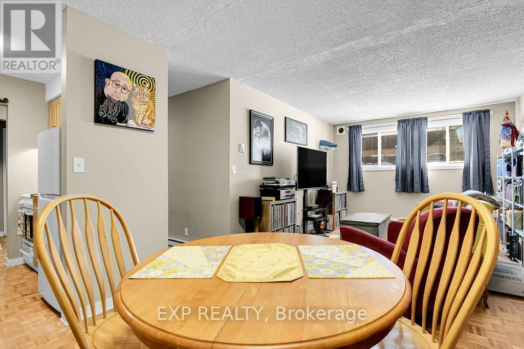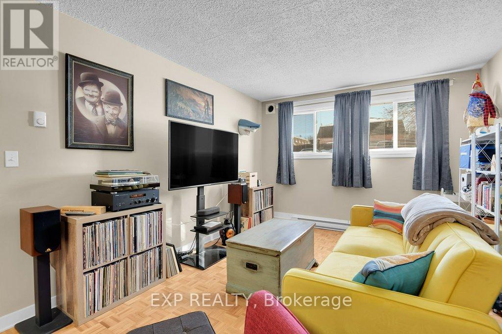 Welcome to this bright and beautifully maintained 2 bedroom, 1 bathroom condominium offering comfort, convenience, and true move-in ready living. Perfect for first-time buyers, downsizers, or investors. This well-appointed unit features a functional layout with principal rooms having plenty of natural light. The kitchen offers ample cabinetry and workspace, flowing seamlessly into the open living and dining area, ideal for everyday living. Both bedrooms are of a decent size with closet space. Enjoy the added convenience of laundry facilities located on the same floor, making daily tasks simple and accessible. This unit also includes exclusive use of a dedicated parking space and a private storage locker, providing extra room for seasonal items and peace of mind. Located in a well-maintained building in the north end of Brockville, this condo offers affordable, low-maintenance living in a desirable location. Reach out for further details. Possession date is flexible. (id:64974)