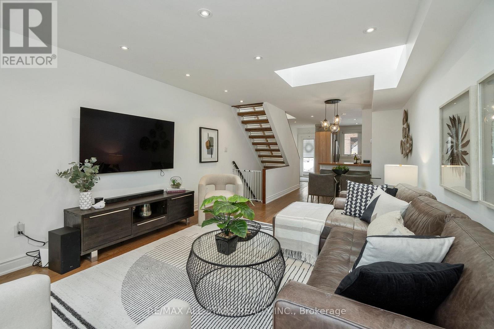 A true END-UNIT townhouse that actually lives like a house - a rare find in the city and standout value in the heart of Leslieville! They simply don't build them like this anymore: larger than many semis in the neighbourhood with an impressive 1,360 sq ft above grade PLUS a basement. Step into a proper foyer before the bright, open kitchen, living and dining spaces unfold - all on one level - head upstairs to two genuinely spacious bedrooms & a renovated bath. And yes, there's a full basement too! Ready for whatever you need: rec room, gym, home office or all three, plus a powder room, laundry and serious storage. Stylish kitchen features butcher block counters, loads of cabinetry, updated appl incl Induction stove w air fryer, & plenty of room to cook and entertain, while the oversized living/dining area offers hardwood floors, a cozy electric fireplace and a walk-out to your own private backyard oasis - perfect for summer dinners, drinks with friends and late nights under twinkling patio lights. Upstairs, the primary bedroom easily fits a king-size suite and boasts wall-to-wall built-ins plus a second closet, hardwood floors and updated lighting, while the second bedroom comfortably fits a queen bed with a full closet. The renovated main bath features a walk-in multi-head shower, and a skylight floods both levels with natural light for a bright, airy feel throughout. A friendly complex tucked away from it all. Unbeatable Queen & Pape location puts you steps from Leslieville and Riverdale's best cafés, restaurants, nightlife, boutique shopping, parks and the lake, with transit at your door, quick DVP access and the future Ontario Line nearby. 1 Parking included. Big space, real outdoor living and low maintenance fees - in a secluded complex seconds from everything you could ever want - this is city homeownership without compromise! Maintenance fees include: Rogers Ignite cable, internet, water, building insurance, most exterior maintenance, snow removal. (id:64974)