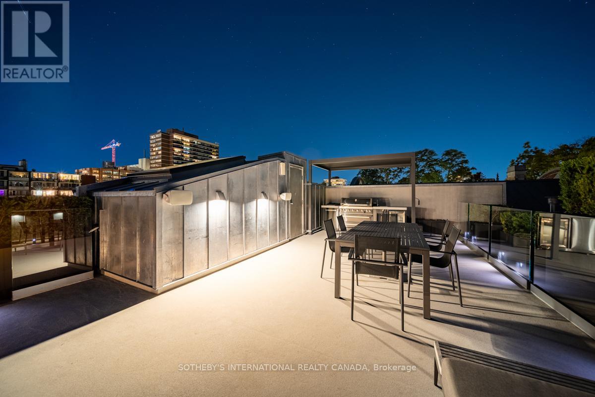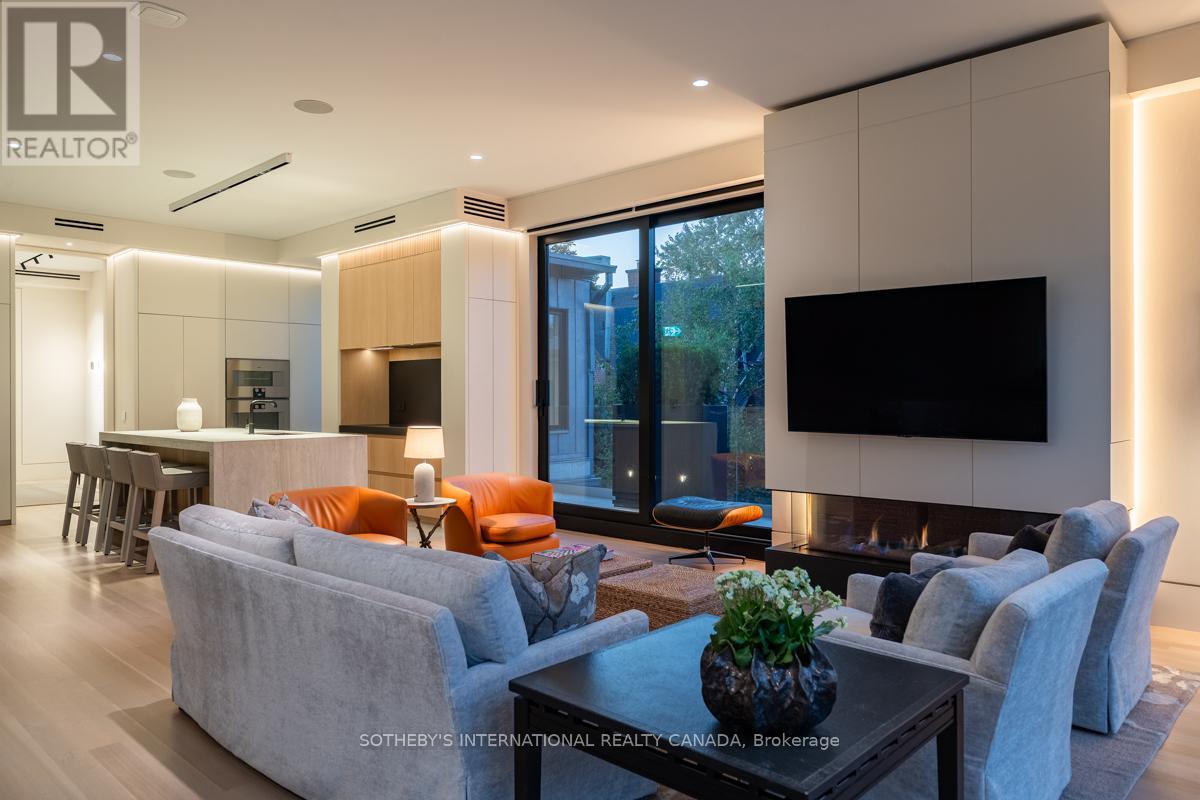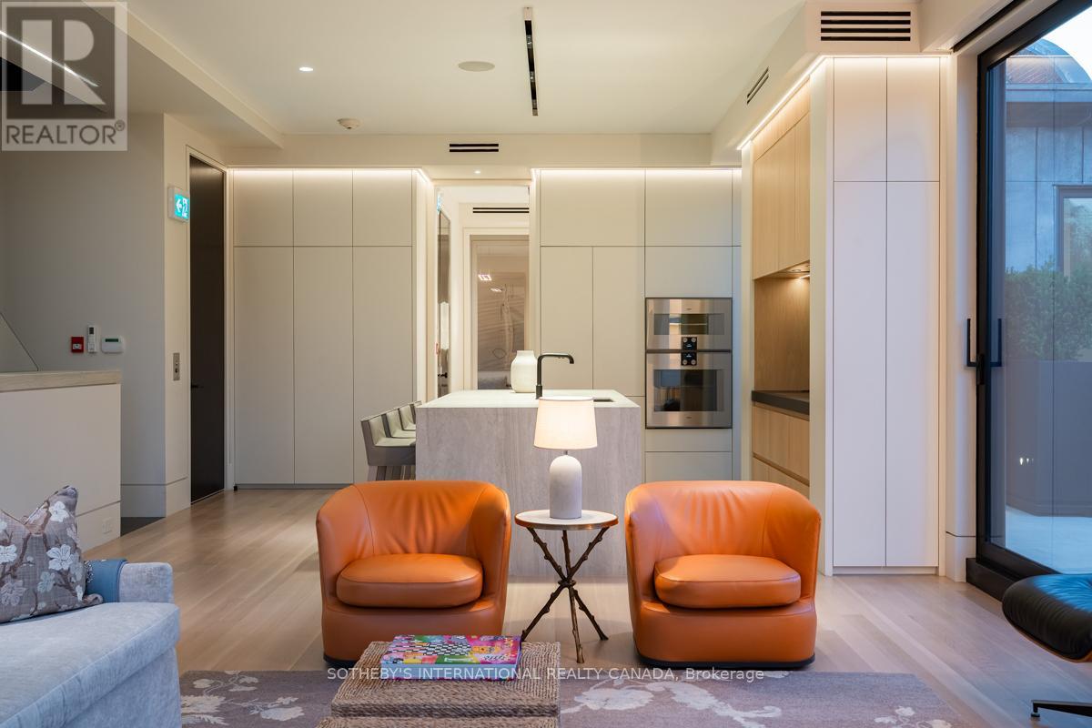 A rare fusion of Edwardian heritage and contemporary design by Taylor Hannah Architects, this 2,700 sq. ft. residence at 85 Bedford Road offers house-like scale with condominium ease. Private elevator access opens directly from the underground garage into your own vestibule -no lobby, no corridor delivering unmatched privacy and security. Inside, 10-foot ceilings, radiant heated floors, and a full-span steel frame create expansive, column-free living. The great room flows seamlessly into a dining gallery and chefs kitchen, designed for both intimate evenings and grand entertaining. A dedicated media room provides a second living core, while three full-scale bedrooms offer flexibility for family, guests, or office use. The primary suite is a true retreat, with spa-inspired ensuite and generous proportions that rival a free standing home. A sculptural metal stair and custom chandelier by THA and Zack Ridgely anchor the historic shell, marrying heritage with artistry. Above, a 480 sq. ft. private rooftop terrace rises above the Annex rooflines, with heated exterior floors extending the season for dining and entertaining. The underground garage - exceptionally rare in Yorkville and the Annex - accommodates 2-3 cars per unit, each with EV charging and water. From your stall, the elevator opens directly into your suite. A full-time property manager, regular maintenance, and daily cleaning of common areas ensure effortless living. Originally an Edwardian Mansion tied to the University of Toronto the structure was rebuilt from triple brick with a full steel frame, lowered four feet to achieve ceiling height and garage access. The result is a boutique residence of only three homes, positioned between two of Yorkville's most prestigious streets. Walkable yet private, historic yet modern, this is a rare opportunity to own a piece of Toronto's architectural legacy reimagined for today. PUBLIC OPEN HOUSE SUNDAY MARCH 8th 2-4 pm (id:64974)