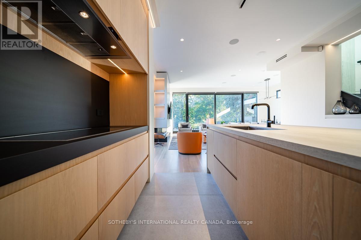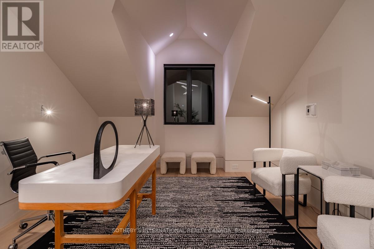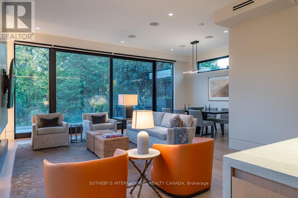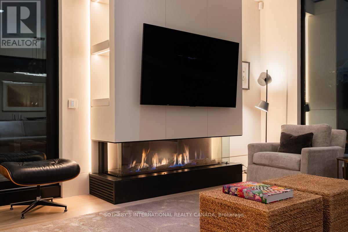 A rare fusion of Edwardian heritage and contemporary design by Taylor Hannah Architects, this 2,700 sq. ft. residence at 85 Bedford Road offers house-like scale with condominium ease. Private elevator access opens directly from the underground garage into your own vestibule -no lobby, no corridor delivering unmatched privacy and security. Inside, 10-foot ceilings, radiant heated floors, and a full-span steel frame create expansive, column-free living. The great room flows seamlessly into a dining gallery and chefs kitchen, designed for both intimate evenings and grand entertaining. A dedicated media room provides a second living core, while three full-scale bedrooms offer flexibility for family, guests, or office use. The primary suite is a true retreat, with spa-inspired ensuite and generous proportions that rival a free standing home. A sculptural metal stair and custom chandelier by THA and Zack Ridgely anchor the historic shell, marrying heritage with artistry. Above, a 480 sq. ft. private rooftop terrace rises above the Annex rooflines, with heated exterior floors extending the season for dining and entertaining. The underground garage - exceptionally rare in Yorkville and the Annex - accommodates 2-3 cars per unit, each with EV charging and water. From your stall, the elevator opens directly into your suite. A full-time property manager, regular maintenance, and daily cleaning of common areas ensure effortless living. Originally an Edwardian Mansion tied to the University of Toronto the structure was rebuilt from triple brick with a full steel frame, lowered four feet to achieve ceiling height and garage access. The result is a boutique residence of only three homes, positioned between two of Yorkville's most prestigious streets. Walkable yet private, historic yet modern, this is a rare opportunity to own a piece of Toronto's architectural legacy reimagined for today. PUBLIC OPEN HOUSE SUNDAY MARCH 8th 2-4 pm (id:64974)