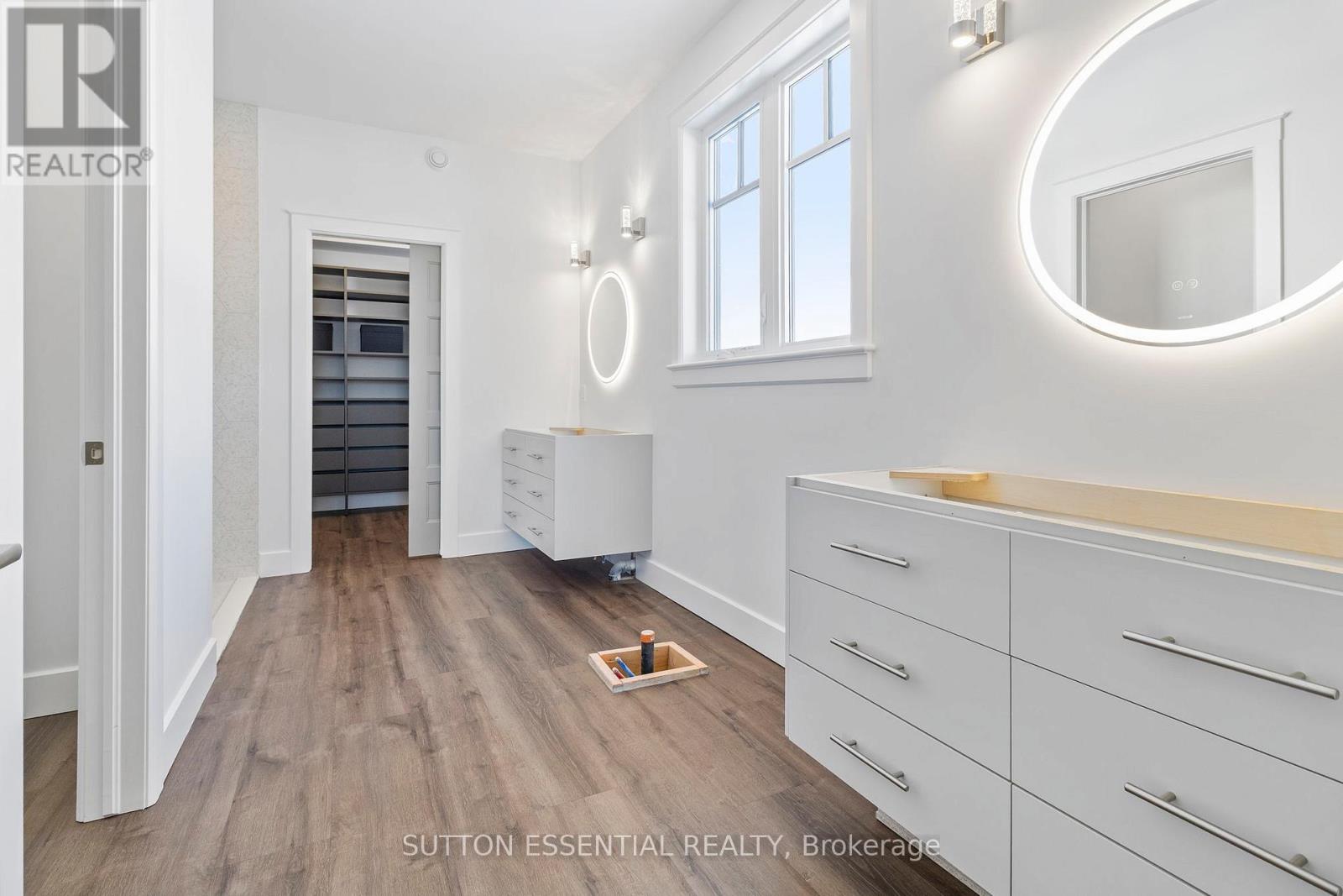 Nearing Completion! Brand-new, custom-built bungalow by Nostalgic Homes, offering refined country living with over $60,000 in value-added standard features. This thoughtfully designed 3-bedroom + office, single-storey home provides over 1,920 sf of low-maintenance, high-comfort living on a peaceful one-acre cul-de-sac lot, backed by a full Tarion Warranty. This basement-free, low-threshold home is built on a fully insulated, heated slab with radiant in-floor heating beneath luxury vinyl flooring and central air conditioning for year-round comfort. Enjoy worry-free living with no sump pumps, sewage pumps, or damp basements. The exterior showcases timeless curb appeal with dark grey board-and-batten siding, black vinyl windows, a fibreglass Craftsman door, stained custom entry trellis, and two covered porches. Inside, soaring vaulted ceilings, quartz countertops throughout, and an open-concept layout elevate the living space. The kitchen is designed for both function and style, featuring a large island and custom cabinetry, ideal for everyday living and entertaining. The vaulted great room offers a cozy fireplace and a custom wet bar, perfect for hosting happy hour or relaxing with guests. The primary suite is a private rear of the home retreat, highlighted by a tray ceiling and decorative feature wall. The spa-inspired ensuite includes dual floating vanities, LED mirrors, soaker tub, a custom low-threshold tile shower, and a private water closet. Additional features include a covered rear porch and an oversized 2.5-car attached garage that is fully insulated, drywalled and painted, providing excellent storage and convenience. Located just minutes from Brockville and the 1000 Islands, with nearby parkland, athletic fields, and a quaint new general store and café. This exceptional home offers the perfect blend of modern luxury, thoughtful craftsmanship, and serene country living. Dare to compare this exceptional level of quality, design, and value. (id:64974)