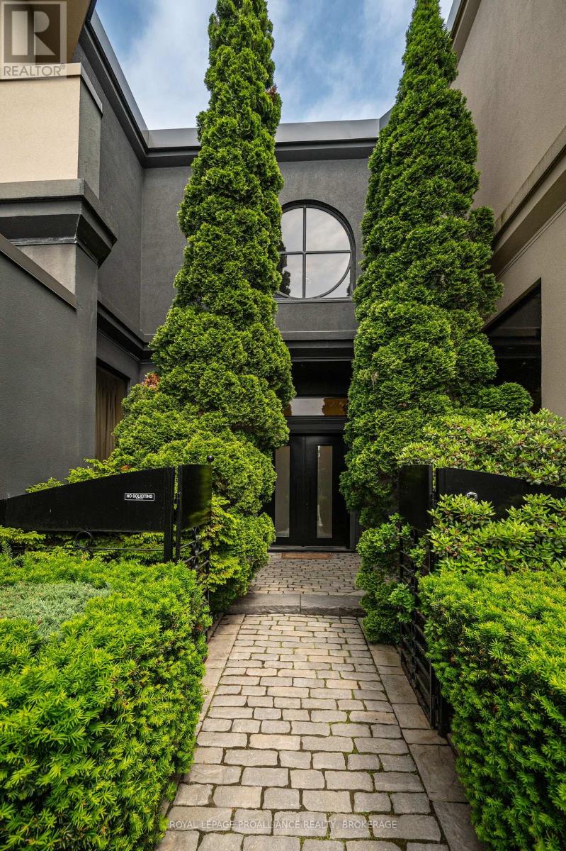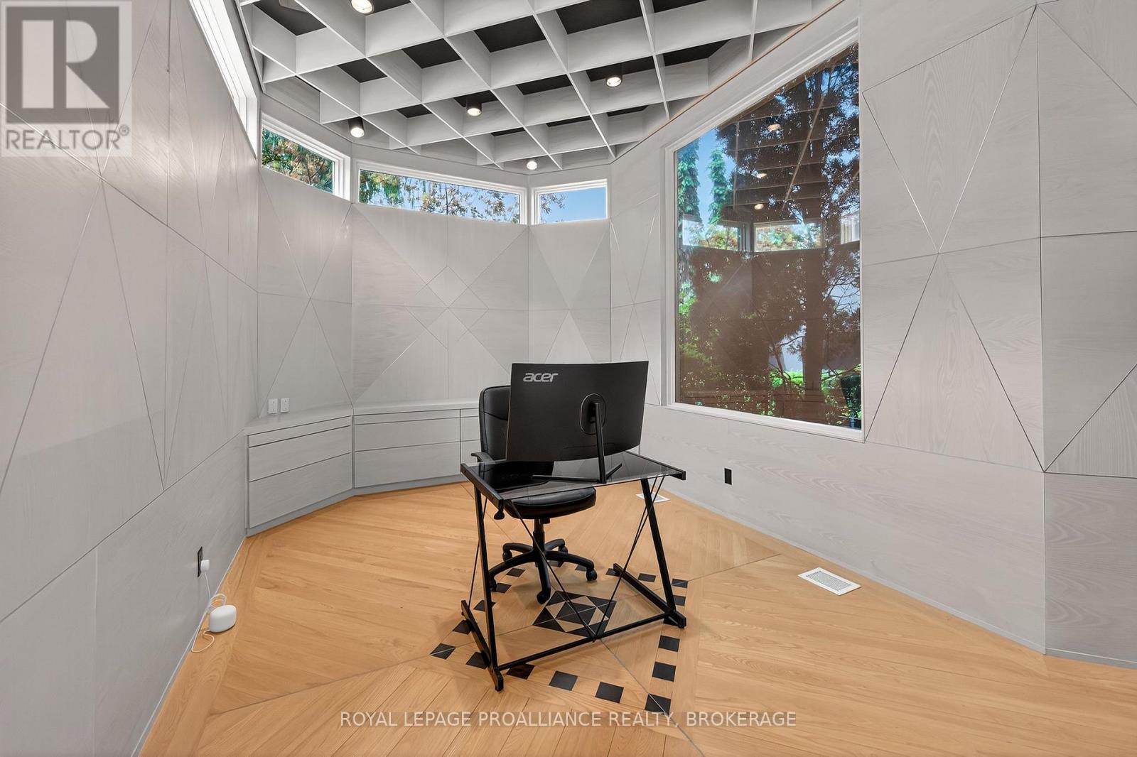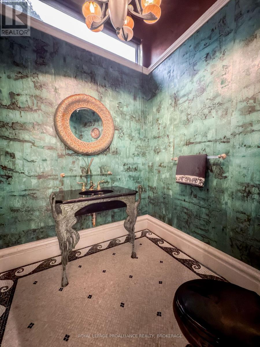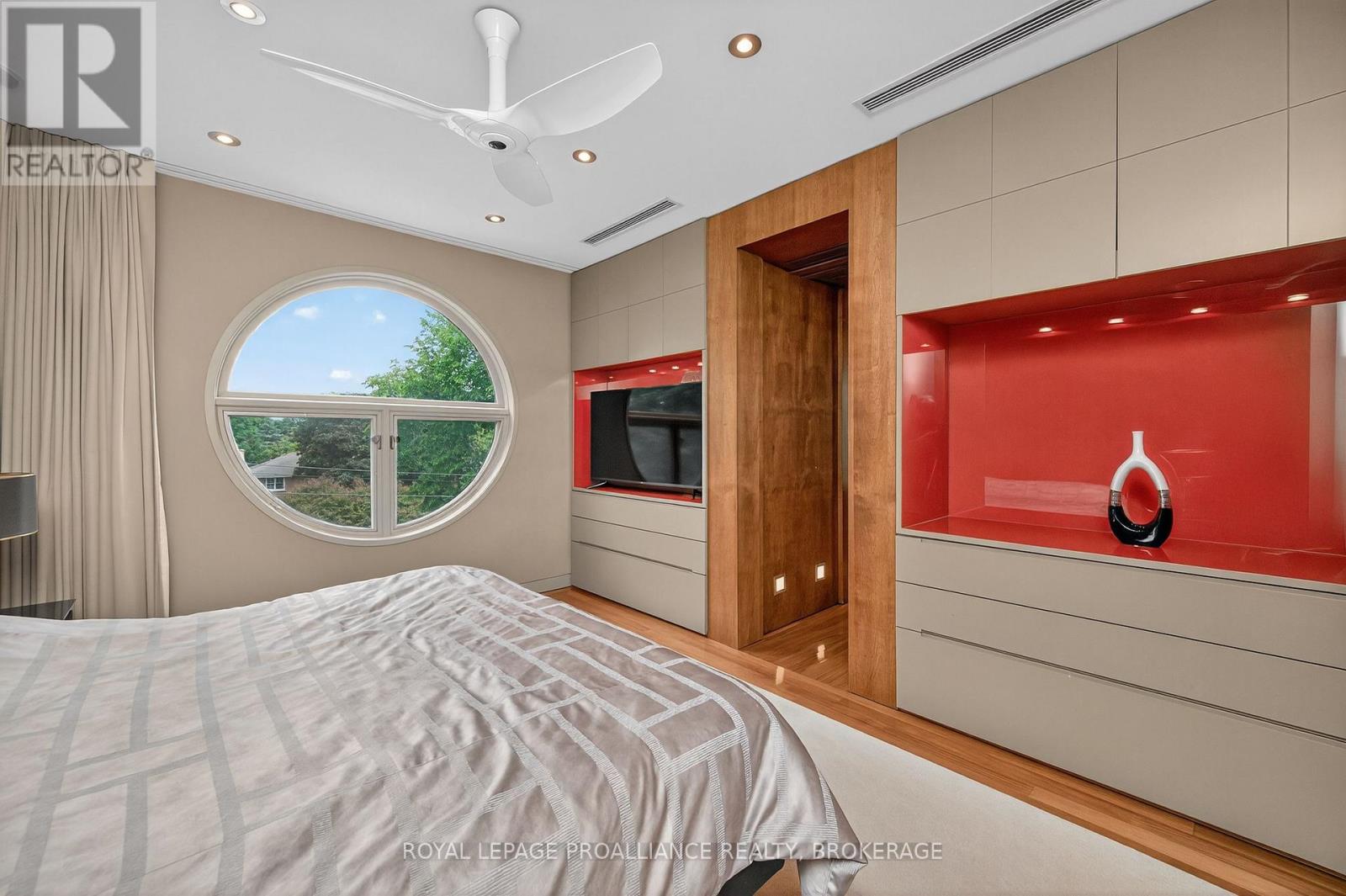 A rare blend of luxury, comfort, and family-focused design-this custom-built masterpiece in Kingston's Calvin Park has it all. Located on a quiet cul-de-sac just minutes from Lake Ontario's waterfront trails, this 4+1 bedroom, 6-bath home offers over 6,000 square feet of sophisticated living, tailor-made for modern families. The striking two-tone exterior is elevated by newly refreshed stucco (2024), while the interior showcases expert craftsmanship with rich custom mouldings, elegant panel work, and impeccable finishes. The 2-car garage has been fully drywalled and painted for a clean, polished look. On the lower level you will find flexibility meets function: it features a spacious bedroom, full bath, family room, wet bar, and a comfortable area for children to play-ideal for families who need adaptable space that grows with them. Upstairs, the primary suite is a true retreat with a walk-in closet and a luxurious ensuite featuring a professionally restored marble countertop (2024). Step outside into a private backyard oasis where an inground pool with cascading waterfalls is framed by stone walls and a new safety fence. A stone patio and backyard handrail create an ideal setting for outdoor entertaining and relaxed family time. This home has been extensively updated inside and out: new pool pump and irrigation controller (2024), outdoor AC unit (2023, with warranty), dual furnace heat exchanger replacements, and a new hot water tank (2024). Smart Nest thermostats and an upgraded security system add everyday ease and peace of mind. Close to Queen's University, KGH, and vibrant downtown Kingston, this home balances thoughtful luxury with family-first comfort-an exceptional space to grow, gather, and thrive. (id:64974)