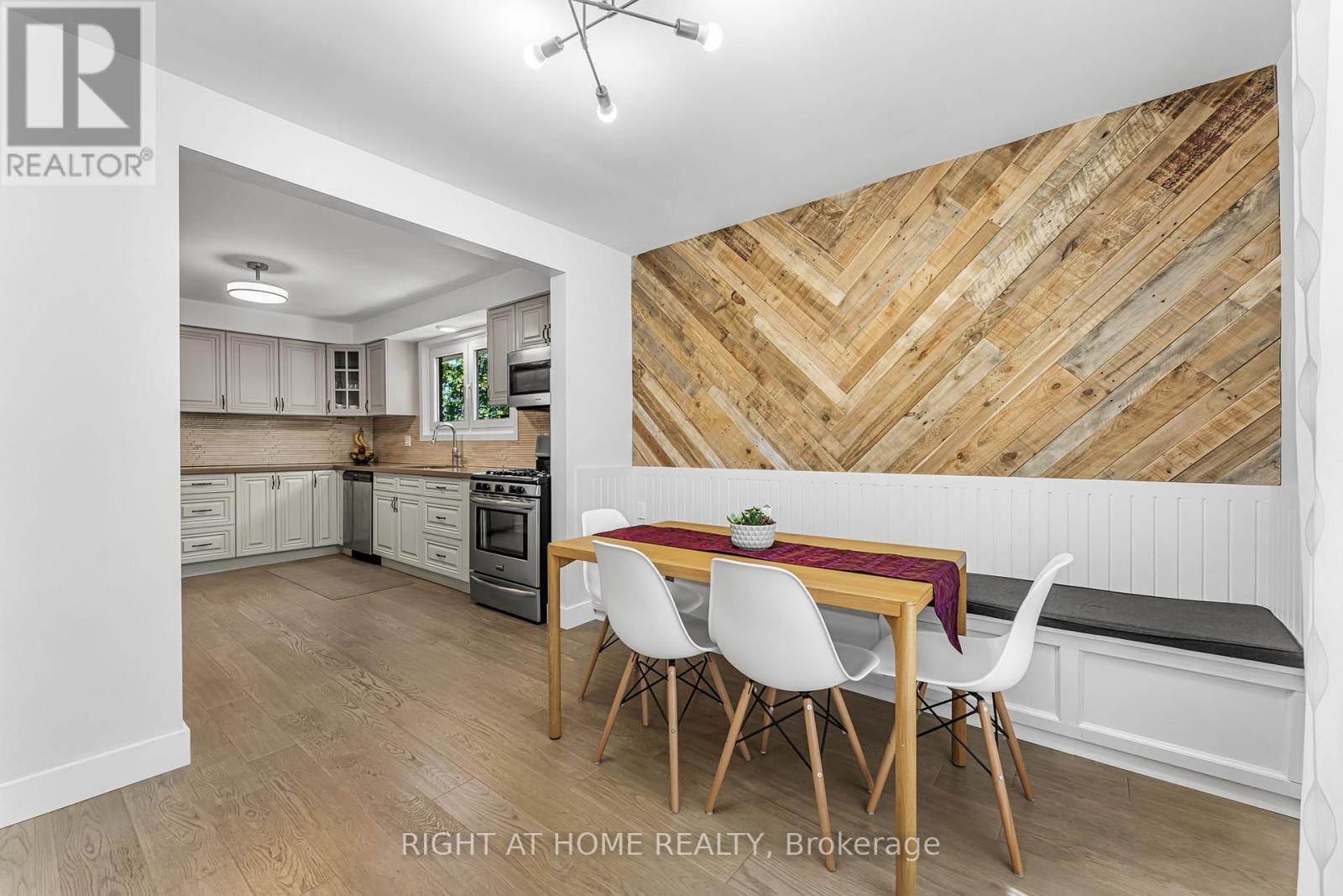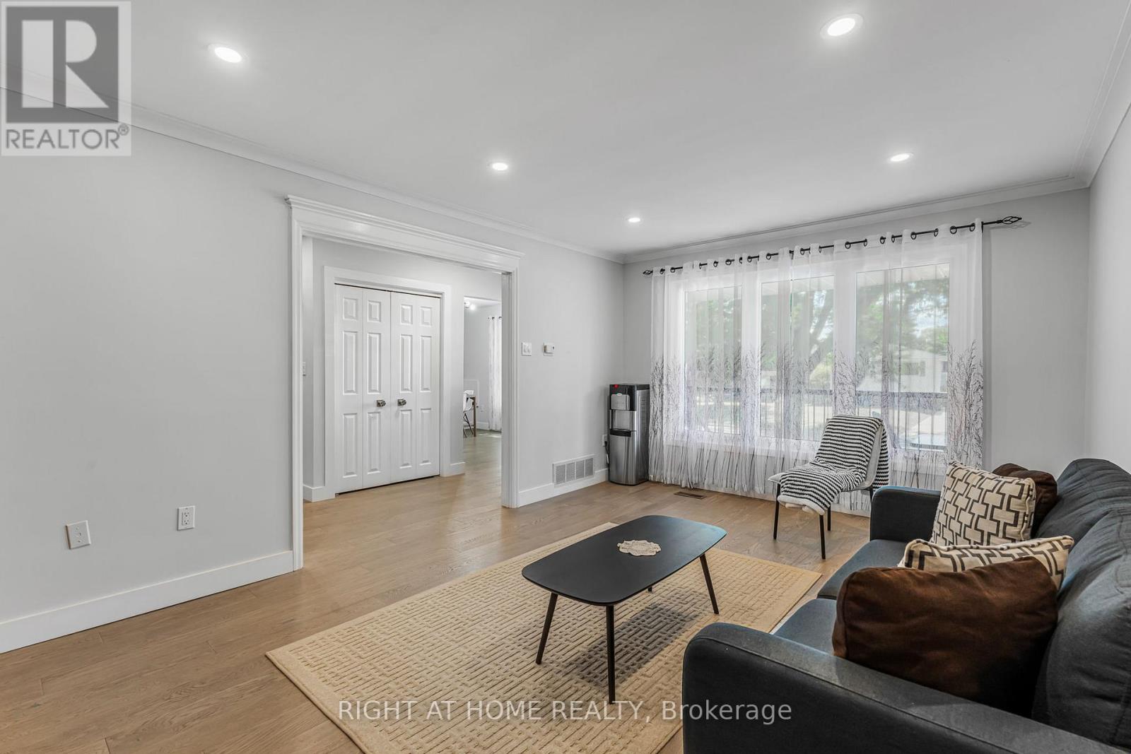 Mature tree lined street in most desirable North End location known for it's fantastic schools and great Neighbors. Immediately you are drawn in by the stunning curb appeal of this 4 level back split that is nestled in a quiet neighborhood right across from Linlake Park. This must see home is close to shopping malls, restaurants, great schools, QEW as well as Lake Ontario. This newly renovated top to bottom and well maintained home is offering over 1700 sq ft. of above grade living space, plus 554 sq ft. finished basement with very high ceilings and large windows. The home consists of 3+1 Bedrooms, 2 Full Bathrooms, 2 Kitchens, Dining room, Living room, Family room, Sunroom, Finished Basement and additional 620 sq ft. of storage space, garage with overhead storage and a driveway with 6 parking spots. The covered front porch is the perfect spot to sit and enjoy your morning coffee or tea and take in the sounds of nature. The main floor features Bright Living room, Dining room, Kitchen and a walk in closet. The upper level offers 3 large size bedrooms, a 3 piece bathroom and a linen closet in the hallway. The lower level features a large family room with wood fireplace and custom built-in shelves and cabinets, 4th bedroom, 3 piece bathroom and access to the patio and backyard from the family room. From the lower level there is also an access to the garage and Sunroom. Expanding the living space is the high ceilings finished basement with a rec room, second kitchen with eat in dining and a laundry area, plus a storage space. Right beside the laundry area there is a very large storage space that is a little over 5 ft. tall and stretches through the width of the house (approx. 620 sq ft.). All updates and upgrades have been completed within the last few years. Roof was replaced in 2025. Don't miss your chance to own this move-in ready home in a family-friendly neighborhood close to great schools, Linlake Park, Shopping malls, and transit. Book your private showing today! (id:64974)