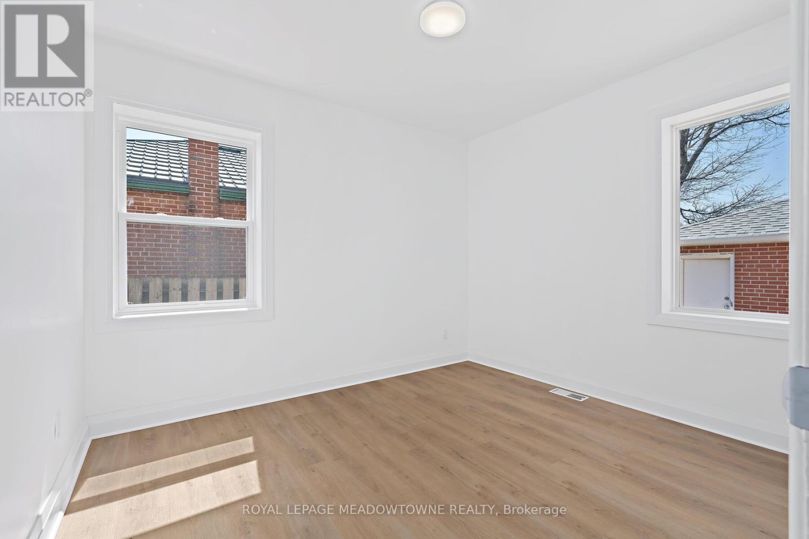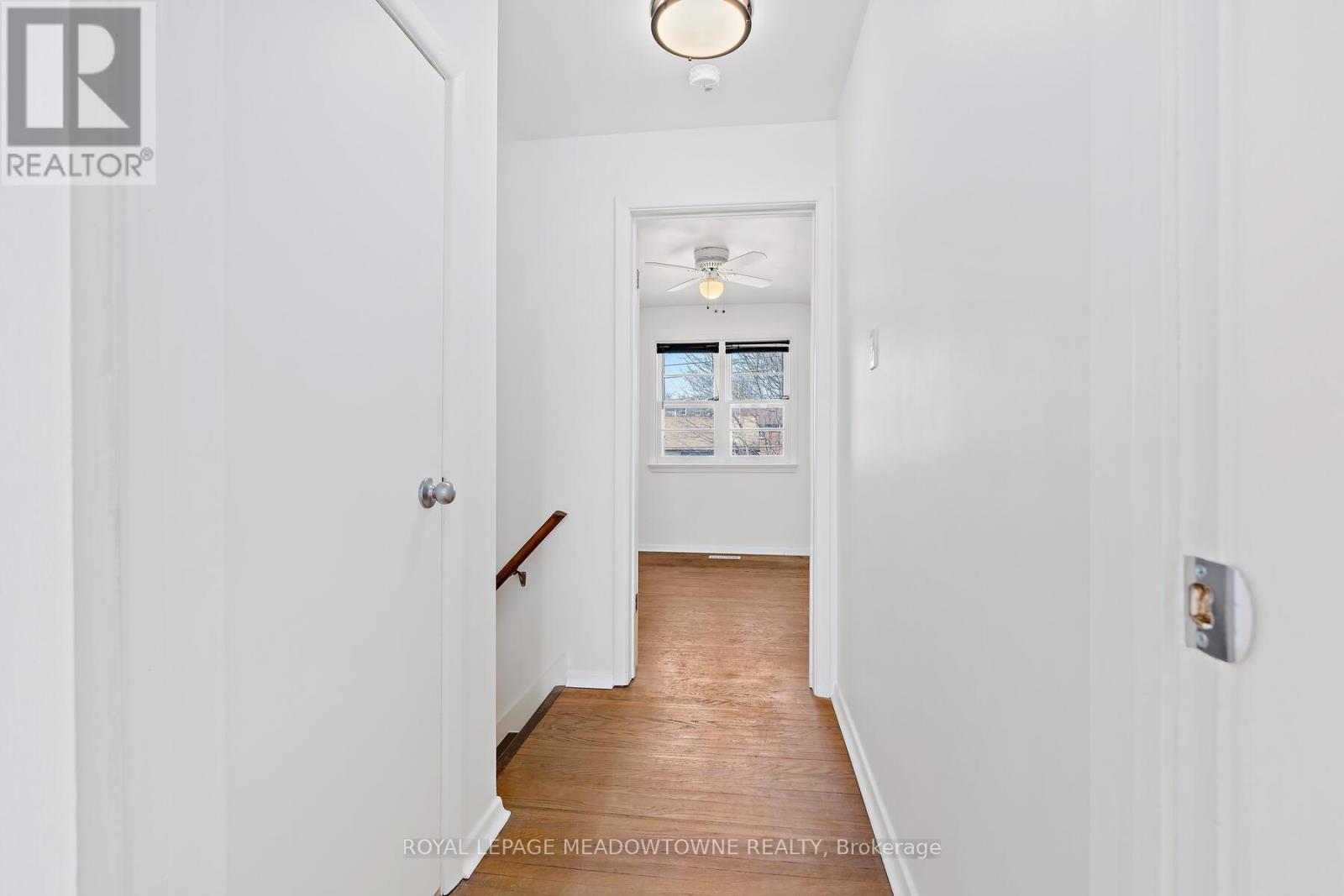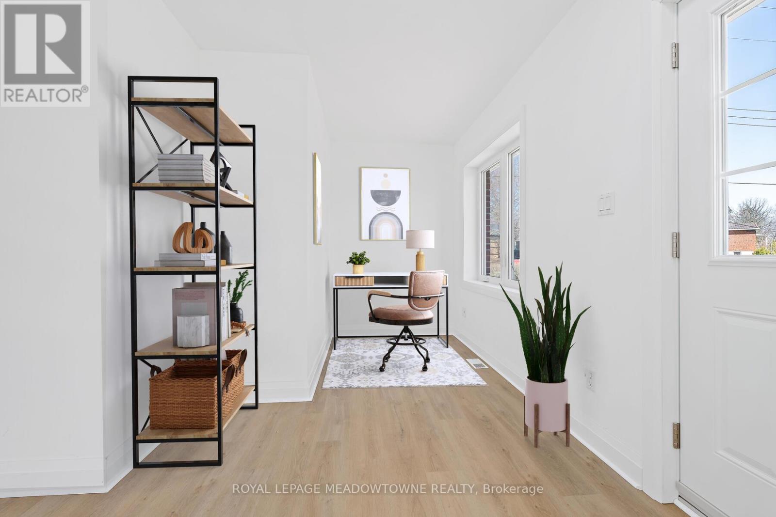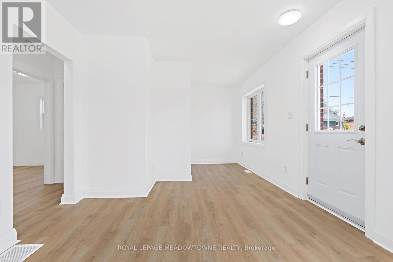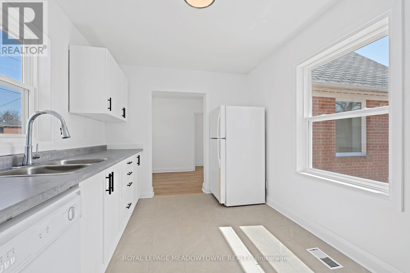 Welcome to this cozy and charming 1 1/2-storey home nestled in the desirable Park District.Featuring 3 bedrooms and 2 bathrooms, this move-in ready property is perfect for first-time buyers or those looking to downsize without compromising on comfort or convenience.Ideally located within walking distance to historic downtown Georgetown, you'll enjoy easy access to parks, schools, transit, churches, the library, shopping, restaurants, summer farmers market and the hospital-all while living in a quiet, family-friendly neighbourhood.This home has been freshly painted throughout and boasts a beautifully upgraded bathroom. The main level has been completely refreshed in 2026 with a brand-new kitchen, luxury vinyl flooring, updated trim, new windows, a modern front entrance door, and stylish lighting.The finished basement offers additional living space along with ample storage, and a convenient side entrance adds flexibility and potential. Step outside to a private backyard-perfect for relaxing or entertaining.Additional features include a detached single-car garage with a wood-burning stove, 60 amp panel and parking for up to three vehicles.Don't miss this fantastic opportunity to own a thoughtfully updated home in a prime location! (id:64974)