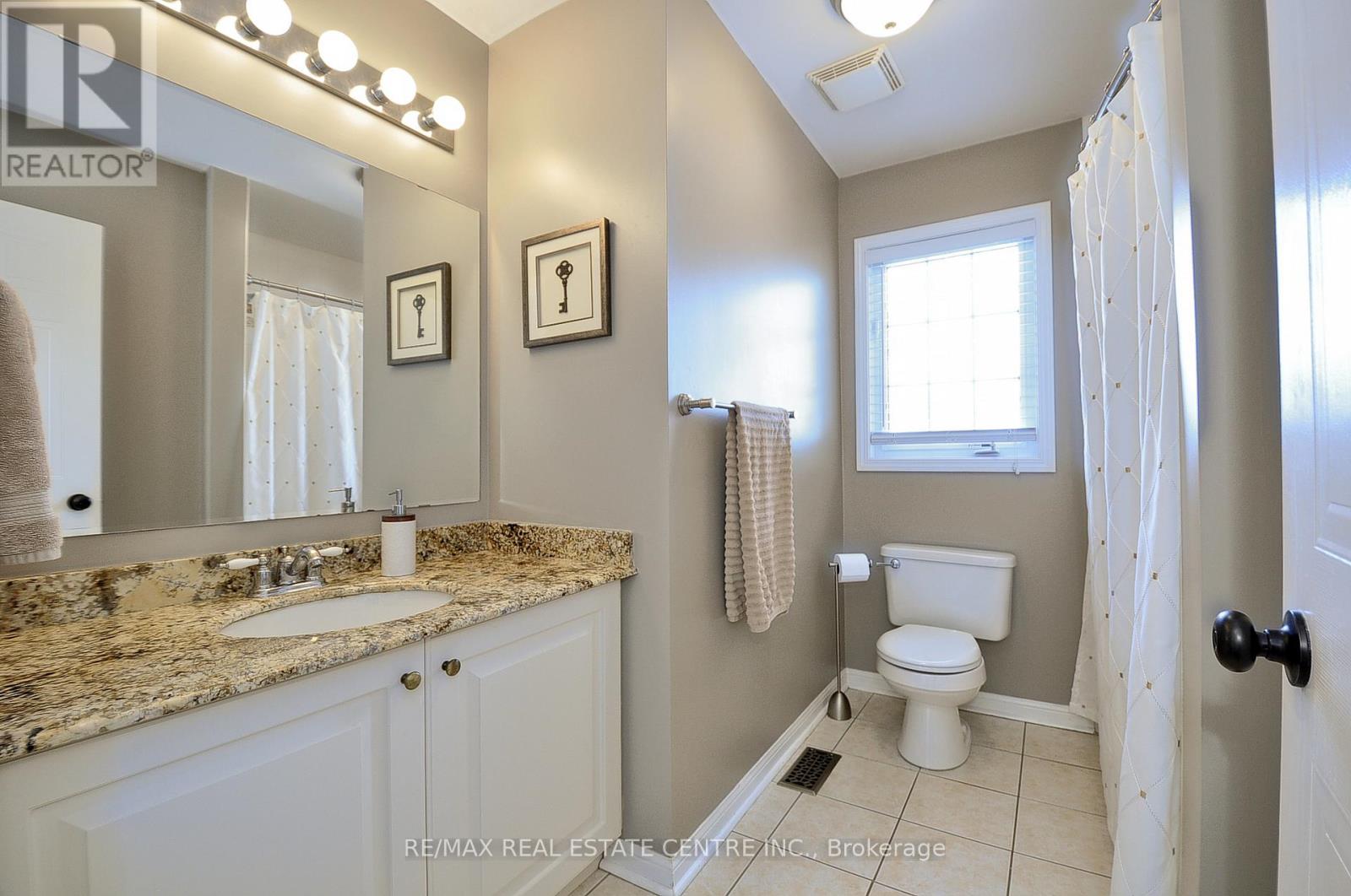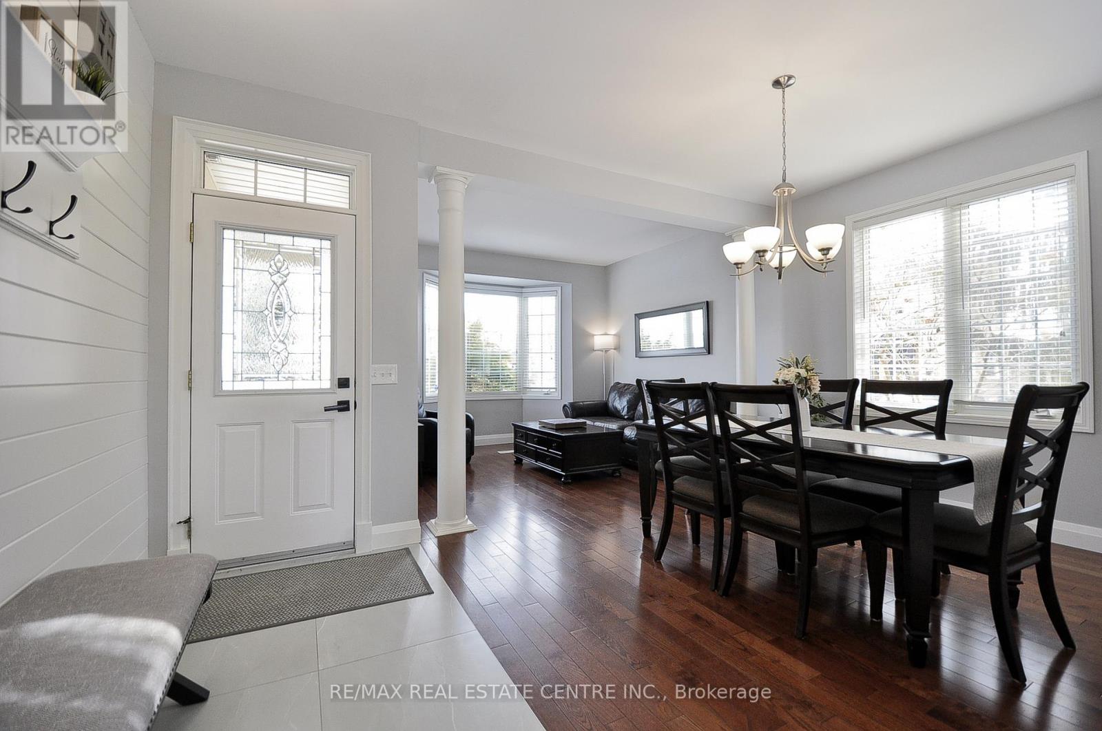 Prime Commuter location, this beautifully updated 5-bedroom, 4-bathroom two-storey home has been meticulously maintained, updated and upgraded. Completely move-in ready. Features include real hardwood flooring, not laminate and a bright, open-concept layout designed for both everyday living and effortless entertaining. The kitchen is the heart of the home, featuring granite counters & updated appliances (2024), with a view to the family room with an updated gas fireplace (new fan, sensors, and line), creating a cozy gathering space The main floor updates include a redesigned powder room, new tile, shiplap accents, updated casing and baseboards, and professionally painted - delivering a clean, contemporary aesthetic while maintaining warmth and character. Upstairs, the spacious primary retreat offers a charming bay window, glass shower ensuite, and granite countertops - a true private escape. In addition to 4 bedrooms, the upstairs has a versatile office space at the top of the stairs (complete with closet) provides flexibility for work-from-home, reading nook or craft area. Convenient second-floor laundry includes updated washer and dryer (2024). And there's a double linen closet. In addition to a 5th bedroom, the finished basement continues the home's quality finishes with real hardwood flooring, pot lights, heated bathroom floor, hobby/storage space, two oversized storage closets, and large windows that invite natural light. Out back, enjoy a private backyard with easy to maintain landscaping and large concrete patio which has been meticulously maintained - stained and resealed annually - Top to bottom there is pride of ownership you can see. Additional features include: New carpet runner (2024) New glass inserts in rear sliding door Tankless water heater Owned water softener CAT5 wiring throughout Every detail reflects care, maintenance, and thoughtful upgrading. This is more than a house - it's a home designed to grow with you. (id:64974)