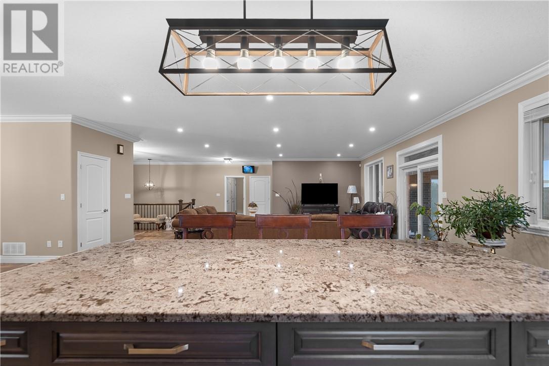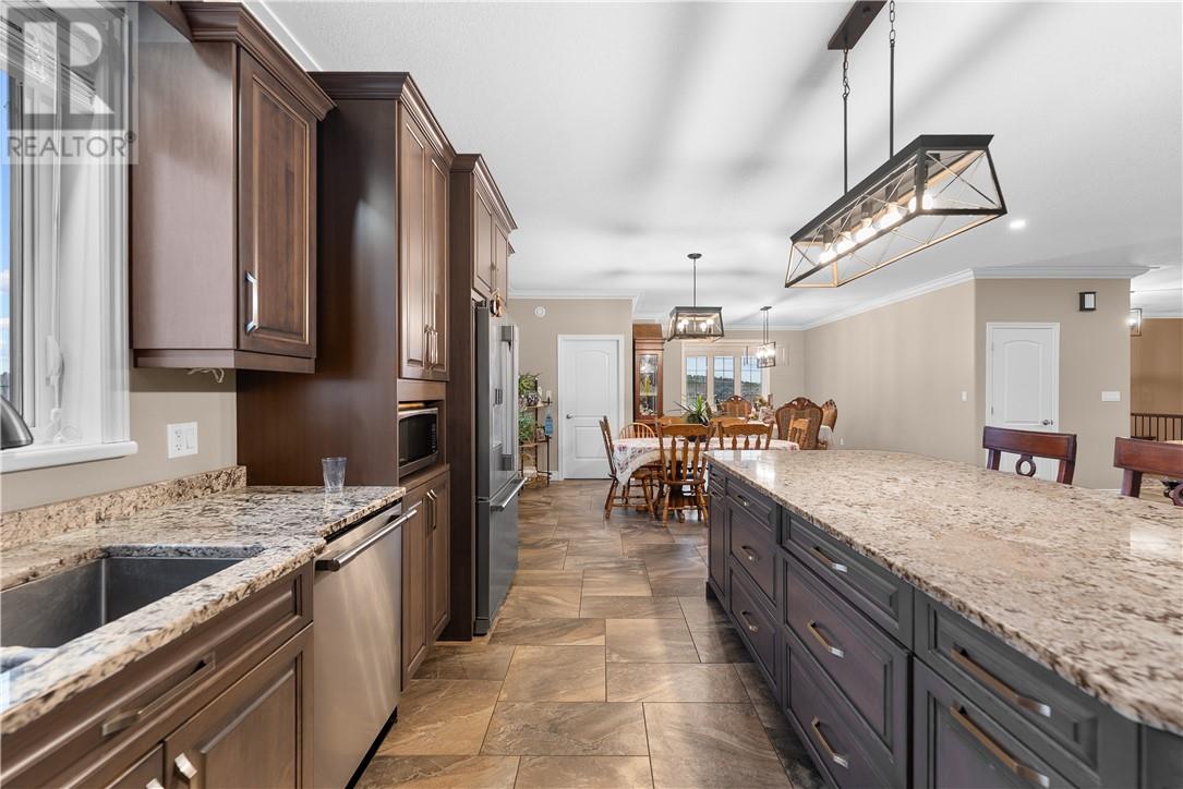 Welcome to 3 Columba Terrace, an exceptional 8-year-old executive bungalow offering an impressive blend of luxury, space, and functionality on a quiet, cul-de-sac with stunning views of St. Charles Lake. This expansive home features nearly 2,500 sq. ft. on the main level and an additional 2,650 sq. ft. on the lower level—including the bonus space beneath the garage—all enhanced by soaring 9-foot ceilings on both levels. The heart of the home is the great room, showcasing a gourmet kitchen with granite countertops, a massive island perfect for gathering, and a walk-in pantry. The adjoining living area flows seamlessly to a covered, enclosed porch—ideal for enjoying peaceful mornings or hosting summer gatherings. The main floor offers a luxurious primary suite complete with a walk-in closet and spa-inspired ensuite. A second bedroom includes its own private bathroom. Additional conveniences include a mudroom off the garage and a powder room at the main entrance. A covered front porch creates a warm and welcoming first impression. The lower level is truly a standout feature, offering a walkout to a massive, private backyard—ready to be transformed into your dream outdoor oasis. This level also includes a full second kitchen, ideal for an in-law suite or entertaining, along with two additional bedrooms and a spacious bathroom featuring both a shower and soaker tub. A third kitchen (cantina) provides the perfect space for preparing and storing homemade goods. Storage is abundant throughout the home, including the large room beneath the garage, ensuring space for everything. The exterior is equally impressive, with landscaping to be completed—featuring an interlocked driveway, retaining wall, and a finished backyard sitting area. Homes like this rarely come to market. The combination of expansive square footage, 9-foot ceilings on both levels, premium finishes, quiet cul-de-sac location, lake views, and a massive private yard makes this a truly one-of-a-kind opportunity. (id:64974)