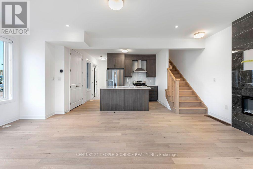 Premium luxury living with over 4,000 sq. ft. of beautifully finished space, available for immediate occupancy! This new built corner two-storey townhome offers 9-ft ceilings on both levels and a modern open-concept layout with upgraded finishes throughout, including an elegant electric fireplace in the living area. The contemporary kitchen features quartz countertops, a spacious breakfast bar, and a large pantry providing ample storage. The finished basement includes one bedroom and one full bathroom - ideal for guests or extended family. The second floor offers a versatile Media /entertainment area with walk-out to a large private balcony, easily convertible into a second oversized bedroom. The stunning primary suite boasts a luxurious ensuite bath and walk-in closet. Conveniently located just minutes from schools, parks, shopping, Trafalgar retail amenities, transit, and more. Quick access to QEW, Hwy 403, and 407 makes commuting effortless. (id:64974)