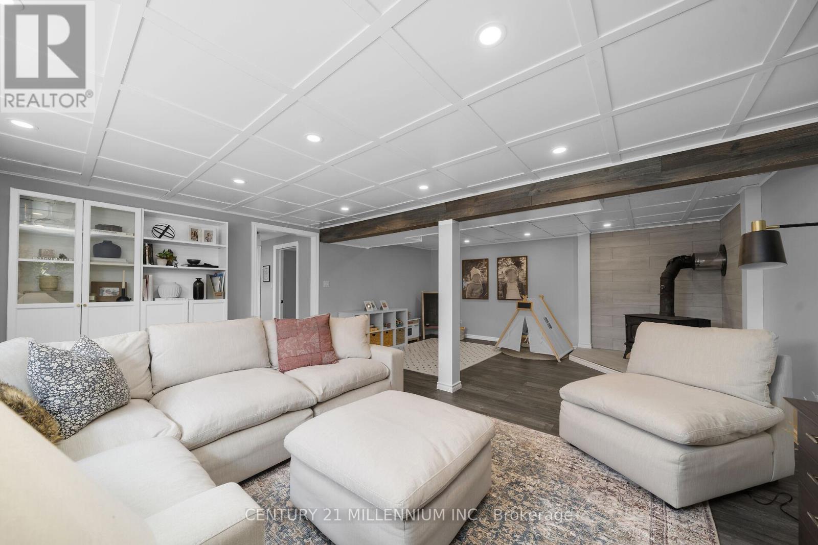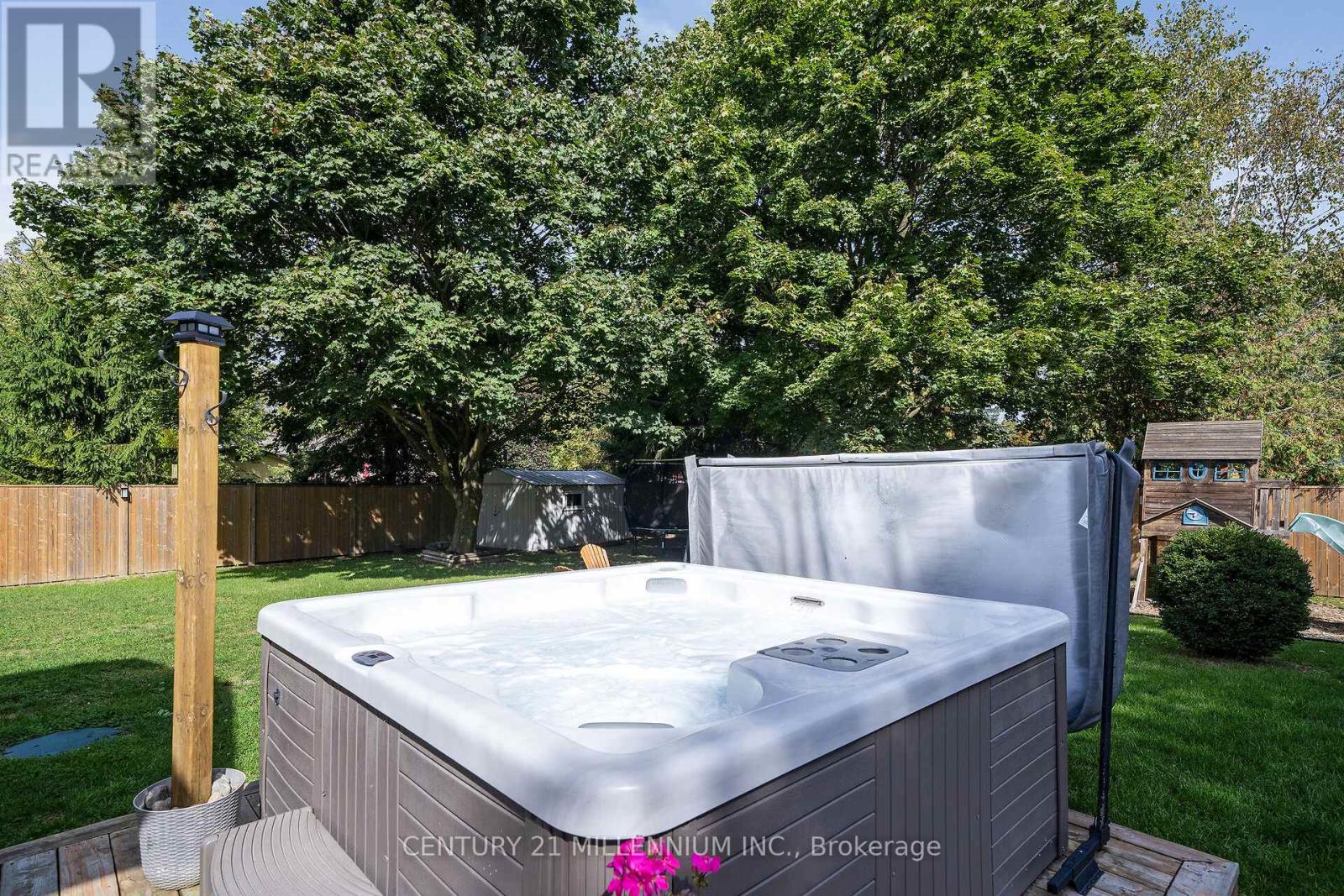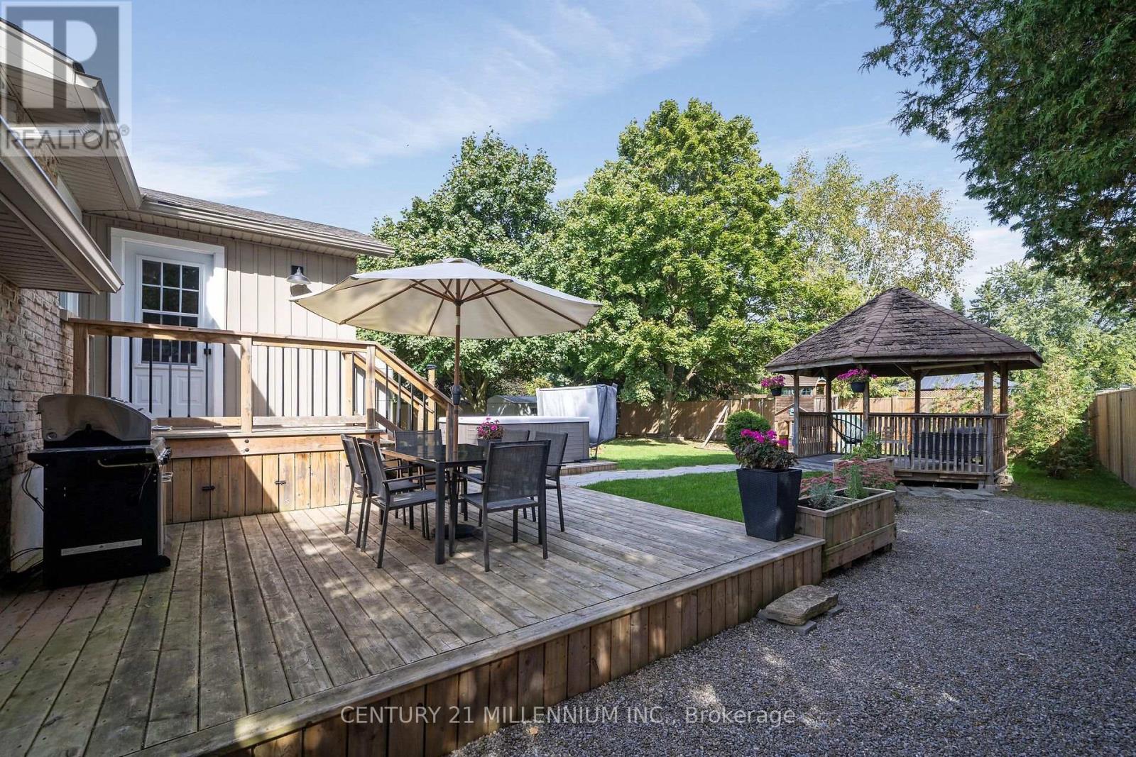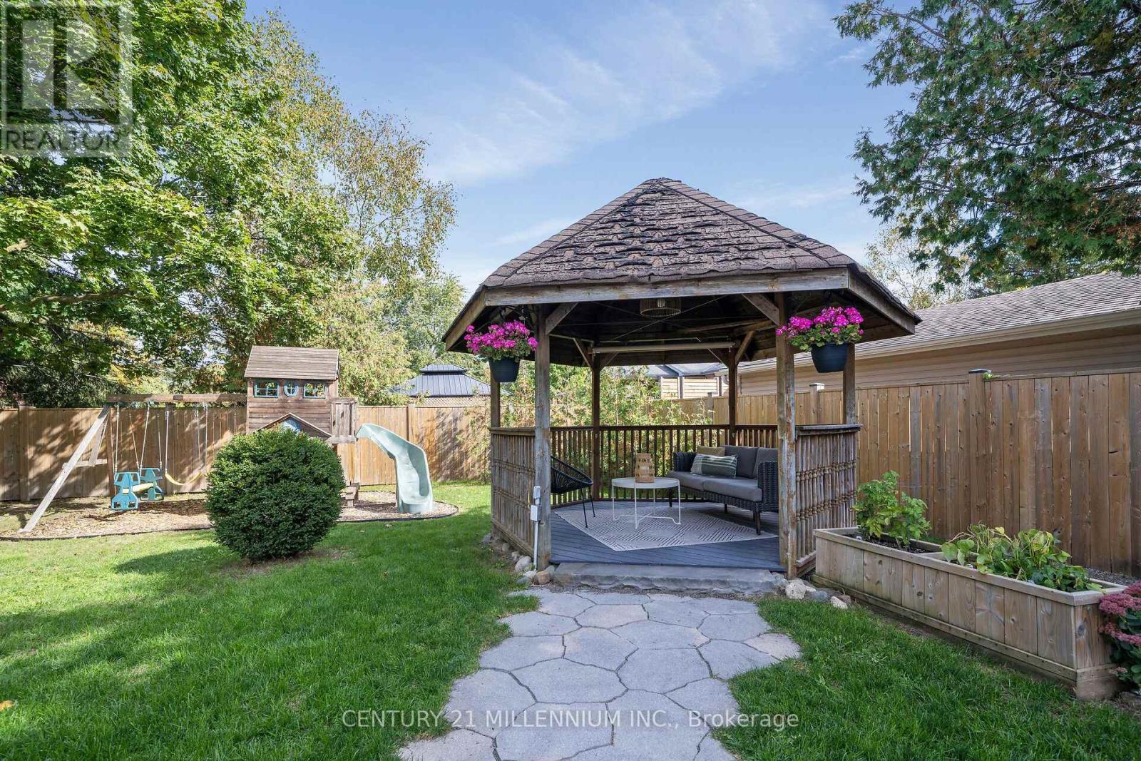 Your wait is over! This turnkey, 3 +1 bedroom home has been updated and styled from top to bottom. A lovely, raised bungalow with stunning decor and natural light pouring in through the windows. New flooring and a kitchen that blends beauty with functionality, complete with a coffee bar that will take your breath away. Main floor laundry room and mudroom are crisp and clean with access to the backyard. The lower level features a cozy family room with wood burning stove, the fourth bedroom, a three-piece bath, and a bonus wood shop. The fully fenced backyard will not disappoint; it includes a spacious deck, gazebo, hot tub, and playhouse. Located on a quiet street, walking distance to shopping, school, the arena, and library. An easy commute to the GTA or the Acton GO station. Enjoy small town charm with lots of families and friendly neighbors. (id:64974)