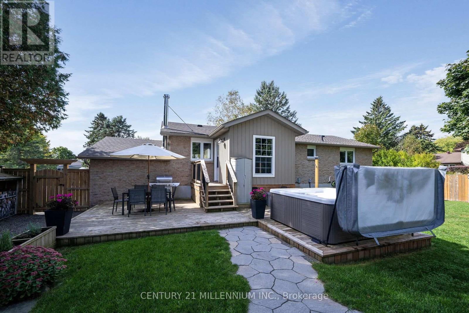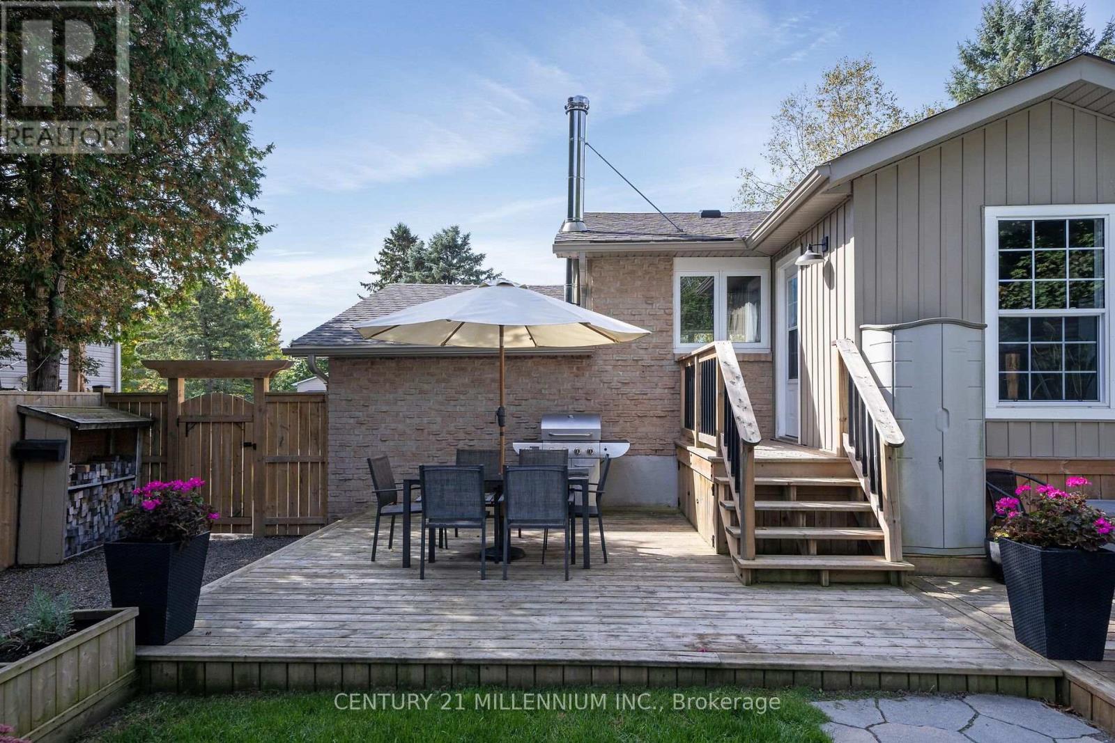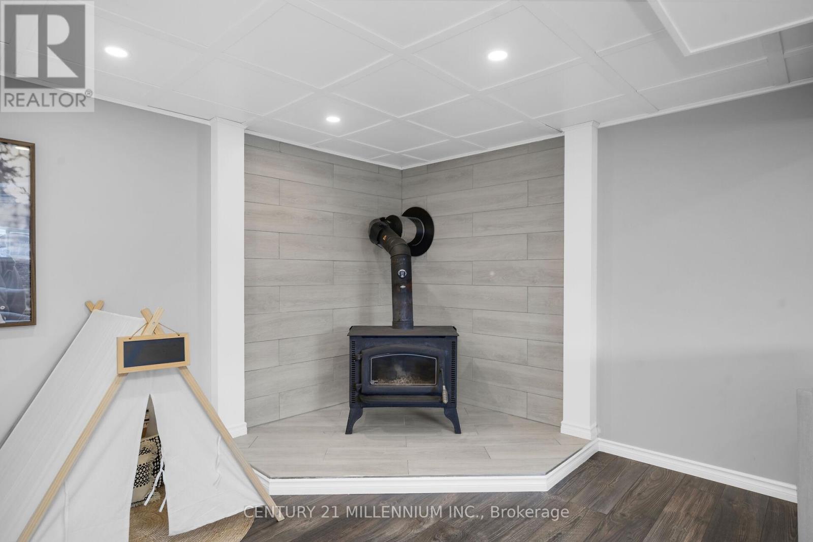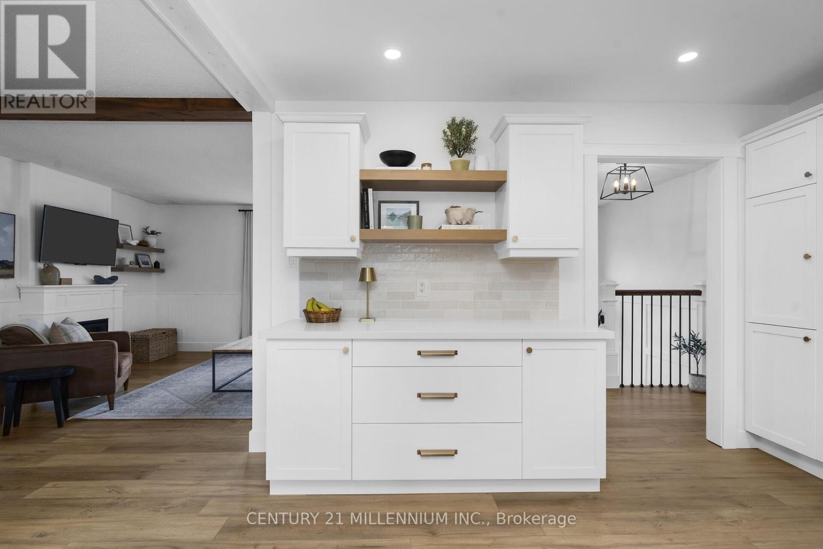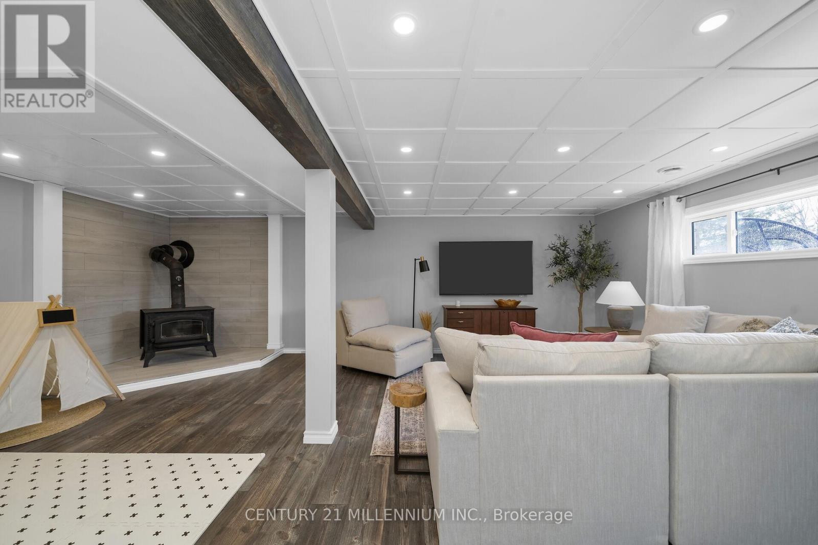 Your wait is over! This turnkey, 3 +1 bedroom home has been updated and styled from top to bottom. A lovely, raised bungalow with stunning decor and natural light pouring in through the windows. New flooring and a kitchen that blends beauty with functionality, complete with a coffee bar that will take your breath away. Main floor laundry room and mudroom are crisp and clean with access to the backyard. The lower level features a cozy family room with wood burning stove, the fourth bedroom, a three-piece bath, and a bonus wood shop. The fully fenced backyard will not disappoint; it includes a spacious deck, gazebo, hot tub, and playhouse. Located on a quiet street, walking distance to shopping, school, the arena, and library. An easy commute to the GTA or the Acton GO station. Enjoy small town charm with lots of families and friendly neighbors. (id:64974)