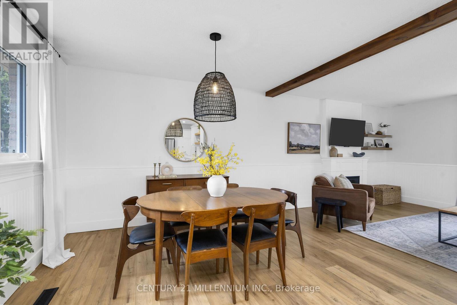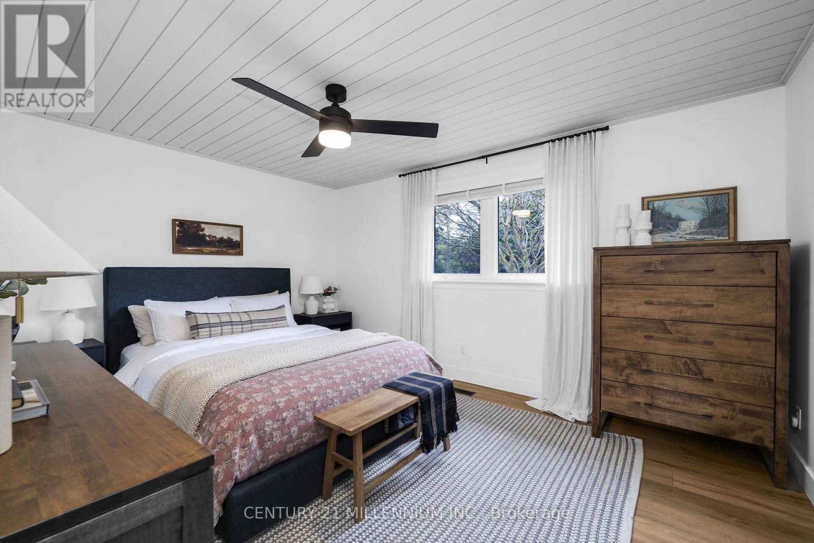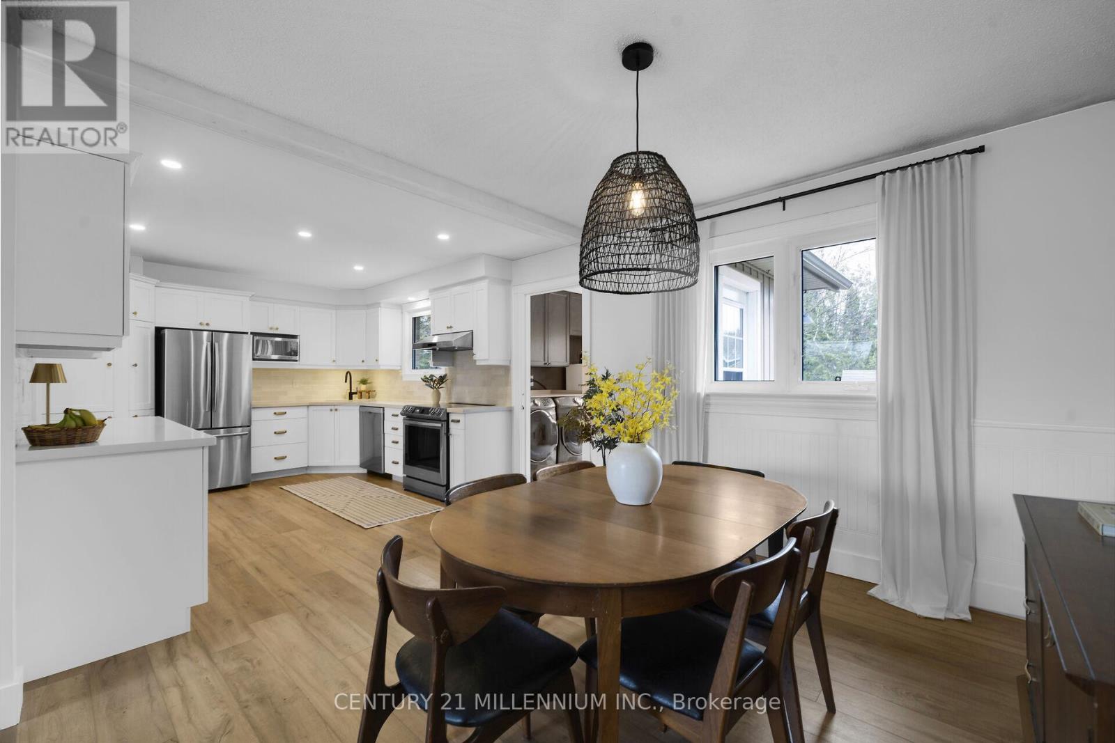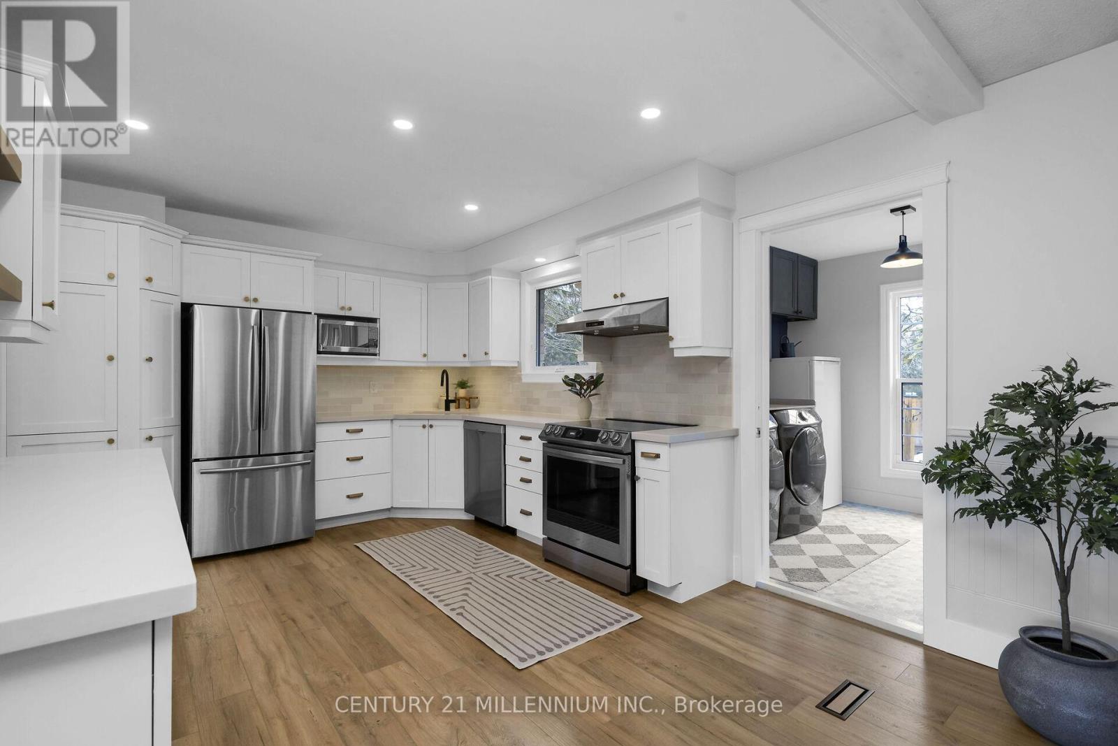 Your wait is over! This turnkey, 3 +1 bedroom home has been updated and styled from top to bottom. A lovely, raised bungalow with stunning decor and natural light pouring in through the windows. New flooring and a kitchen that blends beauty with functionality, complete with a coffee bar that will take your breath away. Main floor laundry room and mudroom are crisp and clean with access to the backyard. The lower level features a cozy family room with wood burning stove, the fourth bedroom, a three-piece bath, and a bonus wood shop. The fully fenced backyard will not disappoint; it includes a spacious deck, gazebo, hot tub, and playhouse. Located on a quiet street, walking distance to shopping, school, the arena, and library. An easy commute to the GTA or the Acton GO station. Enjoy small town charm with lots of families and friendly neighbors. (id:64974)