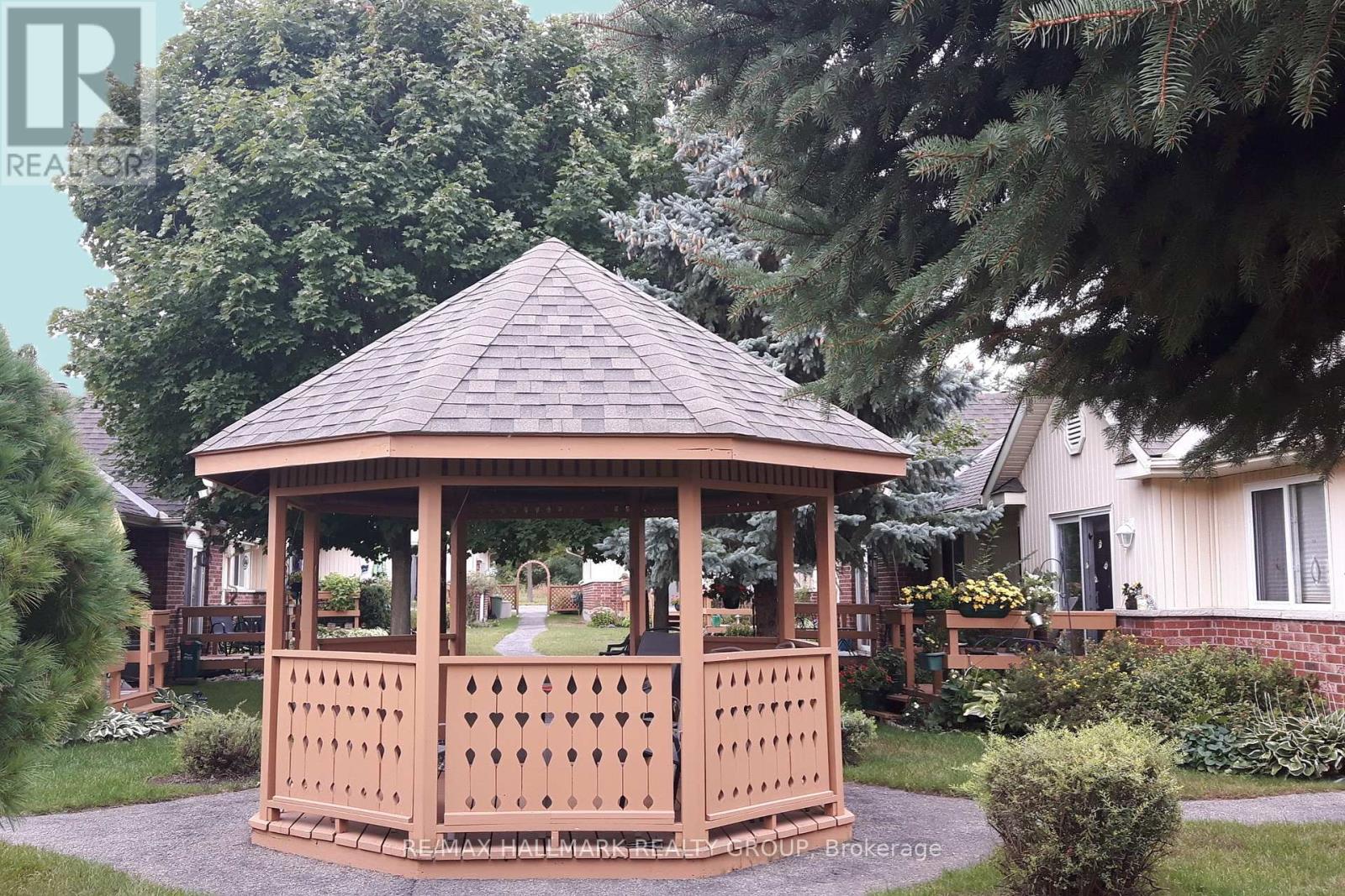 Welcome to a rare gem in the heart of Stittsville! This corner-unit bungalow row offers a simplified lifestyle without sacrificing space or style. Situated in a well-managed 55+ adult community - this life lease is not a condo, it's even better - with low monthly fees that INCLUDE low property taxes, bldg insurance, groundskeeping, lawn, fence & walkway care, landscaping, snow removal, pkg, ext. bldg upkeep, and more. AND there's no land transfer tax to pay! Enjoy the freedom of a private entry and your own deck. Inside, the bright, open-concept main level shines with granite countertops in the kitchen and bathroom, a walk-in pantry, and a sunny dining area open to the light-filled living room with patio slider to your deck with perennial gardens, overlooking a landscaped courtyard parkette with a gazebo and mature trees. The spacious primary bedroom boasts a triple-wide closet, while the sizable second bedroom is bright with ample storage. Laundry is conveniently located on the main level. The finished basement adds incredible value with a large recreation room and a den - perfect for a movie room, a home gym, or a hobby room - as well as a massive unfinished storage space. One dedicated parking spot is right at your door, with visitor parking to the right and left just steps away. Step outside to enjoy the heritage charm of Stittsville Village, within walking distance to shops, cafes, pharmacies, the library, and wooded trails. Downsizing doesn't have to mean renting, nor (high-rise) apartment living - you can enjoy affordable, low-maintenance living in this vibrant community. 6 appliances, window blinds and rods included. Available attachments: floor plans, feature sheet, Village Court Life Lease info sheet, pet policy by-law, exterior common grounds standards, transfer procedure, registrant's disclosure, maintenance fee and property tax breakdown, deposit instructions, and Schedules B and C. The seller kindly requests a minimum 12 hour irrevocable on your offer. (id:64974)