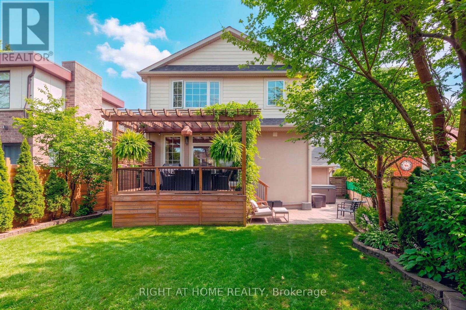 Rarely offered fully renovated family home on a quiet street in a prime, highly desirable location. This bright, open-concept layout features a chef-inspired kitchen and dining area with walk-out to a private, fenced garden oasis complete with outdoor hot tub-perfect for entertaining or relaxing. Showcasing custom high-quality millwork and built-in cabinetry throughout, the home blends function with refined design. The expansive primary retreat offers a spa-like ensuite with soaker tub, double vanity, and a generous walk-in closet.All bathrooms have been tastefully renovated, complemented by a purpose-built laundry room and thoughtfully designed living spaces. Enjoy professionally landscaped grounds and exceptional curb appeal.Ideally located just steps to top-rated schools, parks, trails, and convenient transit/highways. (id:64974)