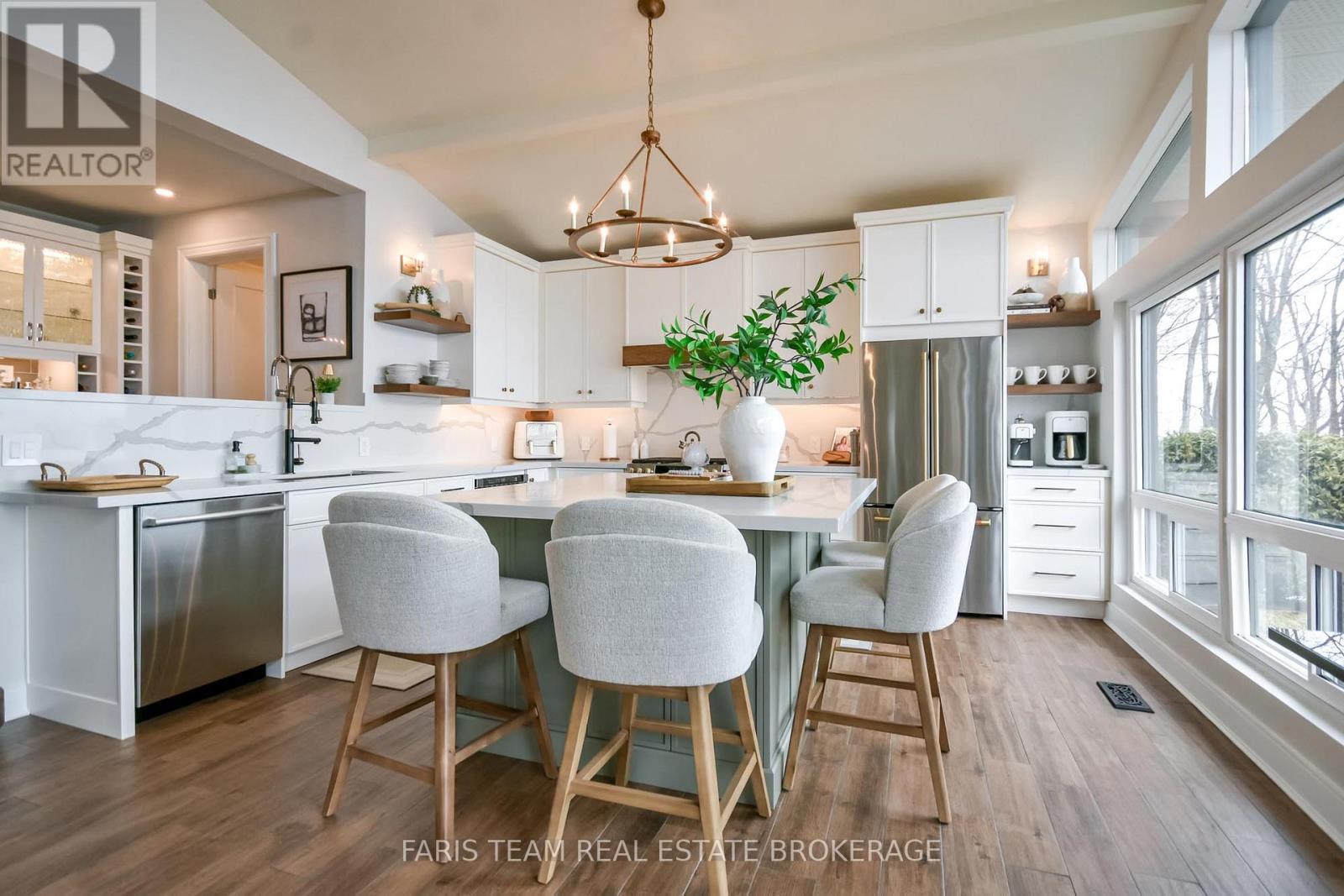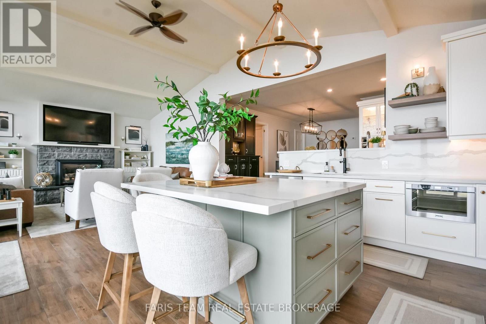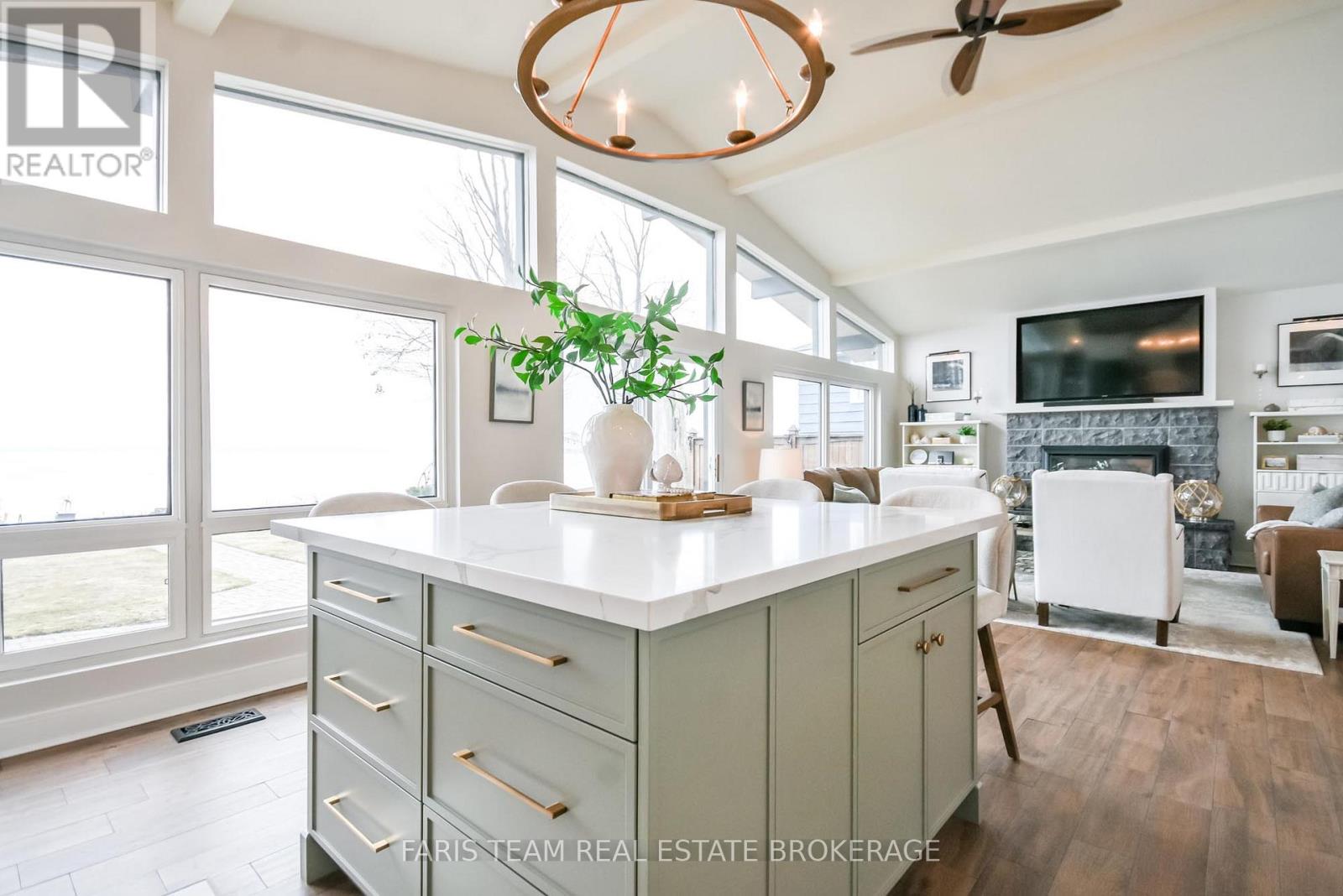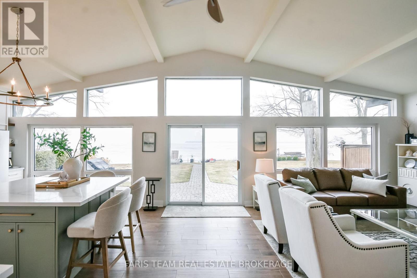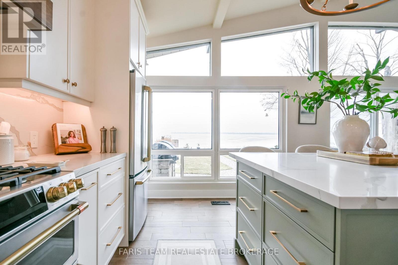Top 5 Reasons You Will Love This Home: 1) Welcome to a rare waterfront retreat on coveted Greenwood Forest Road in Oro-Medonte, where peaceful tree-lined surroundings meet sweeping, unobstructed views of Lake Simcoe, offering a truly special setting to wake up to breathtaking sunrises right from your own backyard 2) Set on an impressive lot, this beautifully updated bungalow offers 2,697 square feet of finished living space, plus a custom heated three-bay garage with a loft, perfect for hobbies, storage, or creating your own lakeside studioor retreat 3) The heart of the home is a bright, show-stopping kitchen with a vaulted ceiling, quartz counters and backsplash, a generous island, and premium appliances, seamlessly flowing into an open-concept living space designed for effortless entertaining and everyday enjoyment with the lake always in view 4) Designed for comfort and flexibility, the home features three inviting main level bedrooms, plus a fully finished lower level with a bedroom, a cozy family room with a gas fireplace, and a dedicated home office with an ensuite that is ideal for modern living and working from home 5) Step outside to your own private waterfront oasis complete with a concrete pier and cantilever dock, an outdoor kitchen with dual barbeques, beautifully landscaped patios, and a lakeside firepit, along with added peace of mind with key upgrades including a Lennox furnace and air conditioner (2022), Generac generator (2023), septic system (2018), water softener with iron filter (2022), and 200-amp electrical service. 1,580 above grade sq.ft. plus a finished lower level. (id:64974)