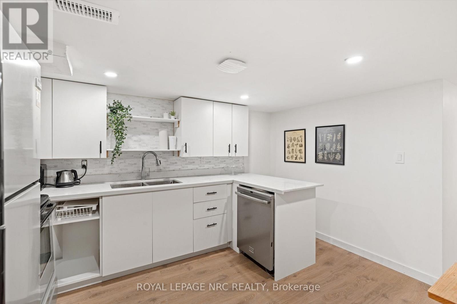 On a tree lined street in the heart of the north end sits this charming 1400sq ft ranch-style bungalow with an impressive backyard. Step inside to an inviting open-concept layout that immediately feels welcoming. The stylishly renovated kitchen ('23) features timeless shaker cabinetry, smart under-cabinet lighting, and a thoughtfully designed peninsula with seating that overlooks the bright great room. Natural light shines through the all-new windows (also '23). You'll appreciate the trendy main bathroom, three generously sized bedrooms, and a cozy family room at the rear with a gas fireplace-ideal for movie nights. The lower level is versatile and can be used as an in-law suite, growing family, or much more with 2 additional bedrooms, a second kitchen, and a spacious social area perfect as a third bedroom, workout space, or home office. Yet the backyard is where all the fun happens. A deep private lot, generous size deck (updated in '25), bonfire nights and a covered patio that doubles as an extended bar (fun!) through the rollup garage door for hosting happy hours. With the oversized garage having a separate furnace, you'll enjoy year around comfort.Recent updates give you peace of mind: shingles (2018), windows and heat pump (2023), plus electrical fully to code. This home shows with confidence and is ready for its next chapter. (id:64974)