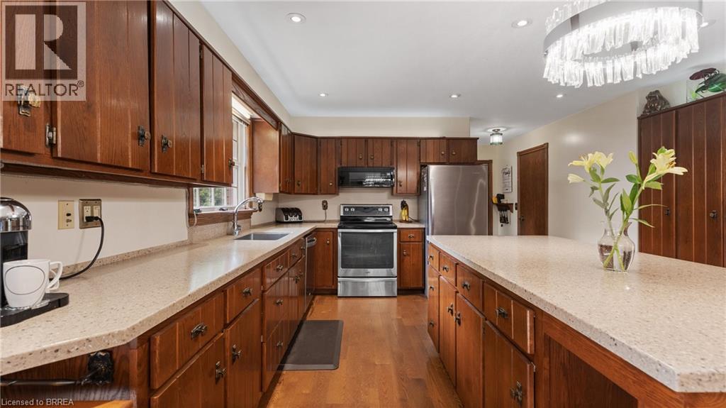 Imagine relaxing out back, watching the sun melt below the treetops as the sky ignites in soft oranges and pinks—pausing only to think, this is all mine. Welcome HOME to 3 Huffman Court. Nestled on a peaceful 2-acre cul-de-sac in the country, this property is the definition of tranquility, offering breathtaking views and a sense of calm that greets you every time you arrive. Step inside to a bright, inviting space filled with natural light and timeless character. The heart of the home is an updated farmhouse-style kitchen featuring stone countertops, an oversized island, walk-in pantry, and thoughtful finishes throughout. Solid hardwood floors with tile on the carpet free main level, oak baseboards, doors, and trim, combined with beamed ceilings and crown mouldings create a perfect blend of rustic charm and refined elegance. Cozy up by the wood-burning fireplace on chilly nights and enjoy that unmistakable feeling of HOME. The main level offers three well-sized bedrooms, two full bathrooms, with jetted tubs, a living room, family room, and walkout to the rear deck and main level laundry. Every bedroom features cedar-lined closets, adding both warmth and function. Downstairs, you’ll find a large finished rec room with a stone-topped wet bar, another wood-burning fireplace, and a spacious unfinished area ideal for bedrooms, offices, or storage. With private garage access, this level is perfect for extended family or secondary living space. And for those who say, “I need a bigger garage”... you're welcome. Along with an attached double garage and 16x24 detached garage, this property boasts a 35 x 75 MONSTER GARAGE with heat, water, electrical, 16’ ceilings, a 14’ bay door, and room for a transport truck inside and out. With two private driveway entrances, showcasing an interlocking main driveway, two detached shops, and over 2,000 sq ft, and a full attic/loft just waiting for whatever you can dream up, this is a property you must experience to believe. Welcome HOME. (id:64974)