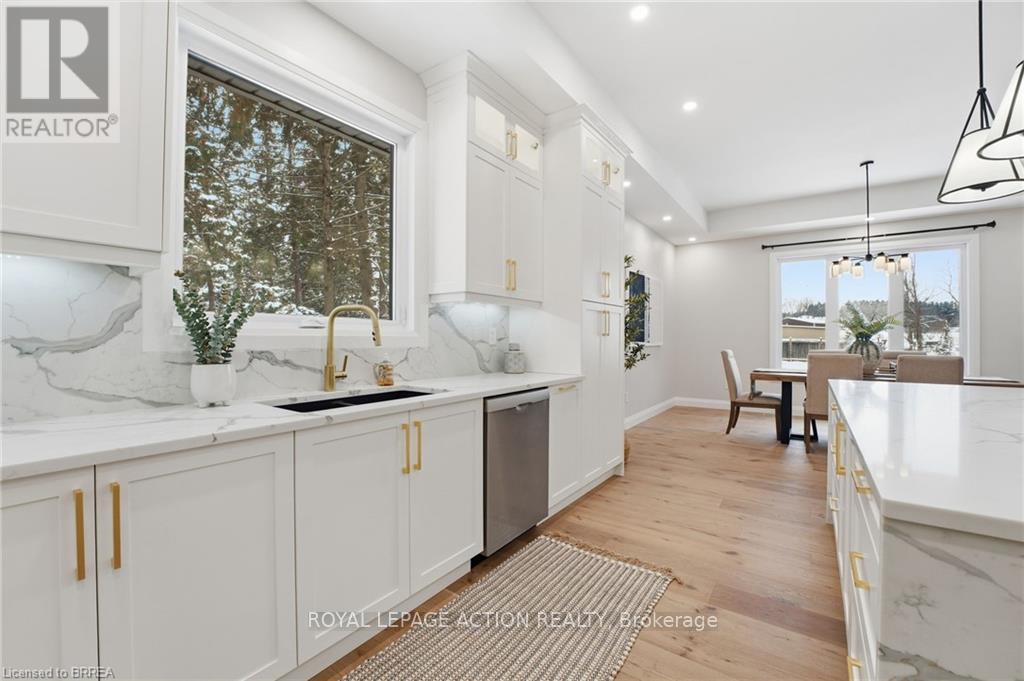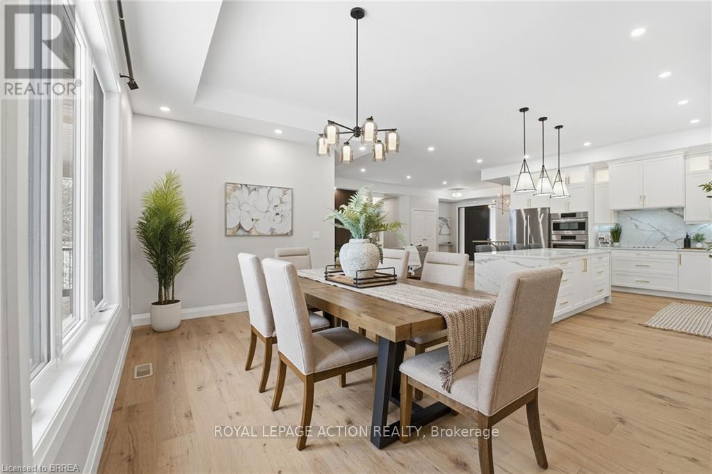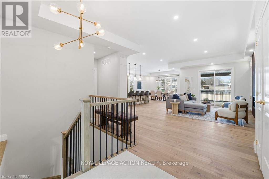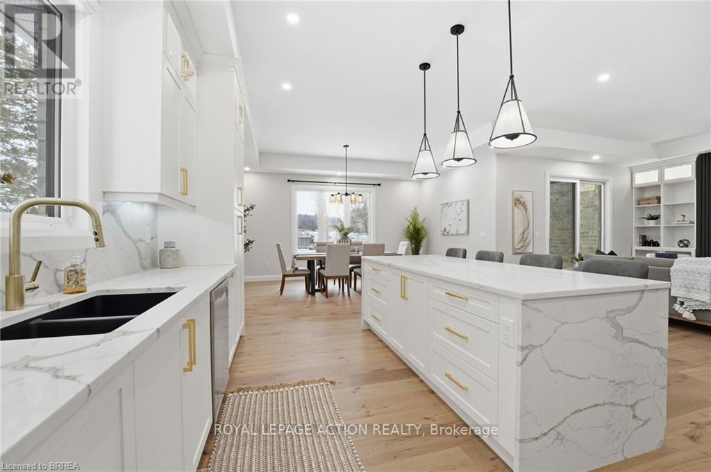 This stunning 2,119 sq ft executive bungalow delivers the perfect balance of luxury finishes, thoughtful design, and peaceful country living minutes from the city! Set on a 0.63-acre lot, this home offers exceptional curb appeal with a 3 car garage and ample parking for vehicles, toys, or trailers. A standout feature is the pull-through door on the back of the garage, perfect for hobbyists, car enthusiasts, or anyone needing extra storage and functionality. Step inside to a bright, sophisticated interior featuring 10ft ceilings, 7ft doors, and engineered hardwood flooring throughout. The stunning chef's kitchen is thoughtfully designed with high-end appliances, premium cabinetry, and elegant quartz countertops & backsplash. With generous prep space & a layout ideal for entertaining, the kitchen flows effortlessly into the spacious dining area & bright living room. You will find a custom gas fireplace with built-in cabinetry, creating a warm and elevated gathering space. Step onto the covered back porch and take in the peaceful views of your scenic backyard. The home offers 3 bedrooms, including a luxurious primary suite with walk-in closet and spa-like ensuite with double vanity & glass shower. Two additional bedrooms & a 4pc main bathroom provide comfort for family or guests. For everyday convenience, enjoy a large mudroom/laundry room off the garage and a 2pc powder room to complete the main level. The basement offers exceptional future potential with 9ft ceilings, large windows, and garage access, making it ideal for a future in-law suite, additional living space, or custom development. Located in the charming Town of Scotland, this home offers the tranquility of country living with the convenience of being close to the HWY and amenities. A true modern executive bungalow, built with quality, attention to detail, and craftsmanship throughout. This is an amazing opportunity to own a newly built luxury home on a premium lot! (id:64974)