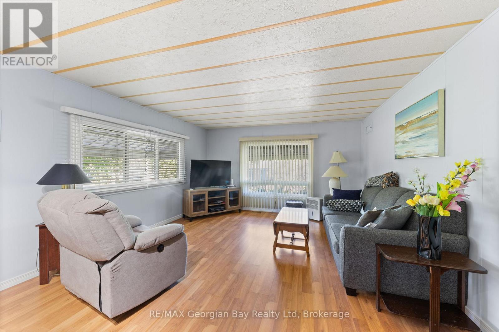 Check this out! Time to sit back and relax. Lovely 2-Bedroom mobile home in sought after Smiths Camp. This mobile home features open concept living, dining and kitchen areas. Ceramic floors, 3-Piece bathroom, main floor laundry, covered porch area great for entertaining family and friends. Community pool residents. Walking distance to all amenities. Little Lake Park, and beautiful Georgian Bay. Tip top shape, Pride of ownership. What are you waiting for? (id:64974)