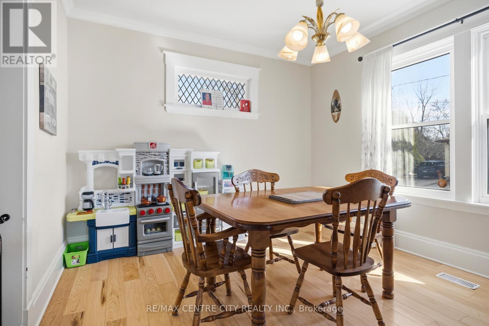 Location, Location! This beautiful 2.5 storey century home is located in the sought after courthouse district and ready to be enjoyed by the whole family. With ravine views from the covered front porch as you enter the home you are welcomed by hardwood floors throughout the generous sized living room complete with gas fireplace leading to the formal dining room and updated GCW kitchen as well as heated mudroom. The second floor is home to 4 bedrooms and a 4 pc bathroom and leads to the 5th bedroom on the third floor feeling more like a private suite with its own heat pump installed proving heat and air conditioning. The basement is unfinished with laundry and storage space. (id:64974)