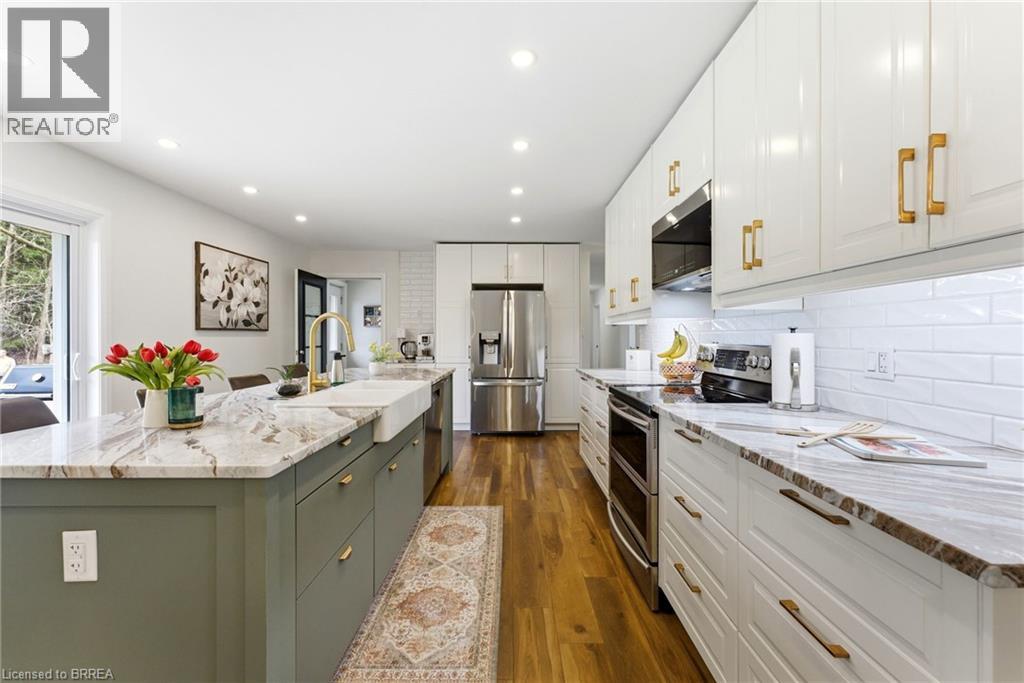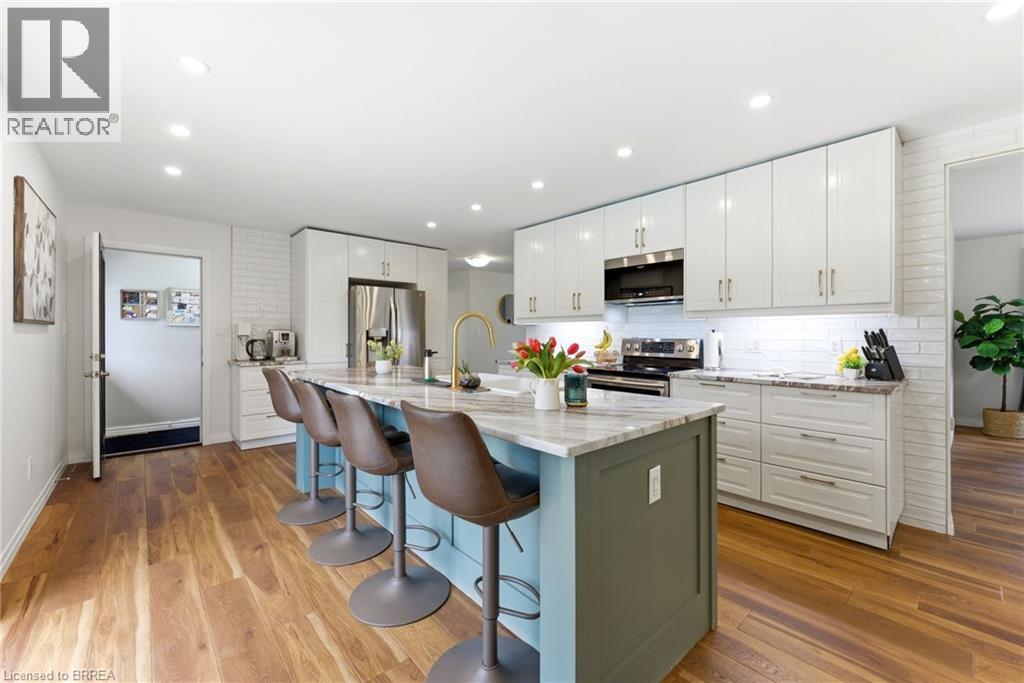 Welcome home to 3 Mill St a charming solid brick bungalow packed with features you’ll love. Set on a scenic, oversized lot, offering approximately 1,750 sq/ft above grade with a total of 4 bedrooms, 3.5 bathrooms and 2 kitchens! A dream setup for car lovers and hobbyists is the 1,000 sq/ft attached three-car garage with heated floors and 9' high doors. Inside you'll find that this home provides spacious rooms, thoughtful updates, and flexible living options. The main level features three generous bedrooms and two full bathrooms, along with updated flooring throughout and fresh paint, creating a bright and welcoming feel. The updated kitchen showcases granite countertops and offers plenty of space for everyday living and entertaining. The lower level offers excellent versatility. A fully self-contained in-law suite hosts one bedroom, a full bathroom, functional kitchen and it's own laundry, making it ideal for extended family or guests. This space doesn't use the entire basement, there's another portion off the main living area featuring an office, recreation area, storage space, and a convenient two-piece bathroom, providing plenty of functional additional living space. Outside, enjoy backing onto green space, offering privacy and peaceful views and sounds of nature. The above ground pool (2025) is perfect for relaxing on those hot days. Theres endless additional possibilities with the large lot; simply storing your RV is simple here, maybe you'll build add a detached shop or stunning Greenhouse! Additional updates include aluminum fascia, eavestroughs and downspouts (2012), garage, mudroom, metal roof, windows (2013)new siding patio door (2021), updated kitchen (2021), fresh interior paint (2026) and a new basement railing (2026). A rare opportunity to enjoy space, privacy, and a sought-after location near Highland Estates. (id:64974)