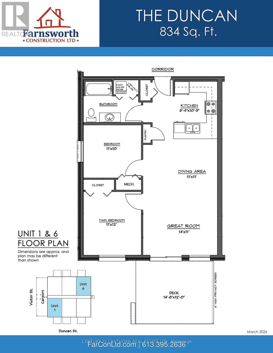 Is it time to simplify things? This brand new 6 plex in Madoc is under construction and looking for tenants. Get your application in now and have your pick of the one you like best. These 2 bedroom units are offering 840 sq ft, 4 pc bath, private deck and inside entry from covered carport parking. $1700 per month plus all utilities. A heat pump gives you efficient heat and air conditoning. Open concept dining /living room area, bright modern finishes and private decks for each unit. Located in an area of newer homes on a quiet side street. Minimum 1 yr lease, rental application and references required. Intended move-in date July 1 2026. (id:65010)