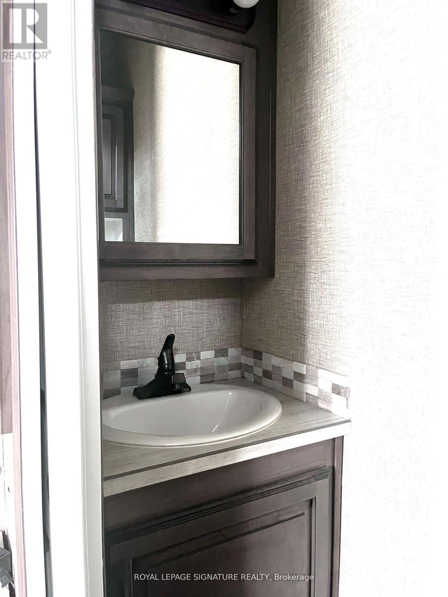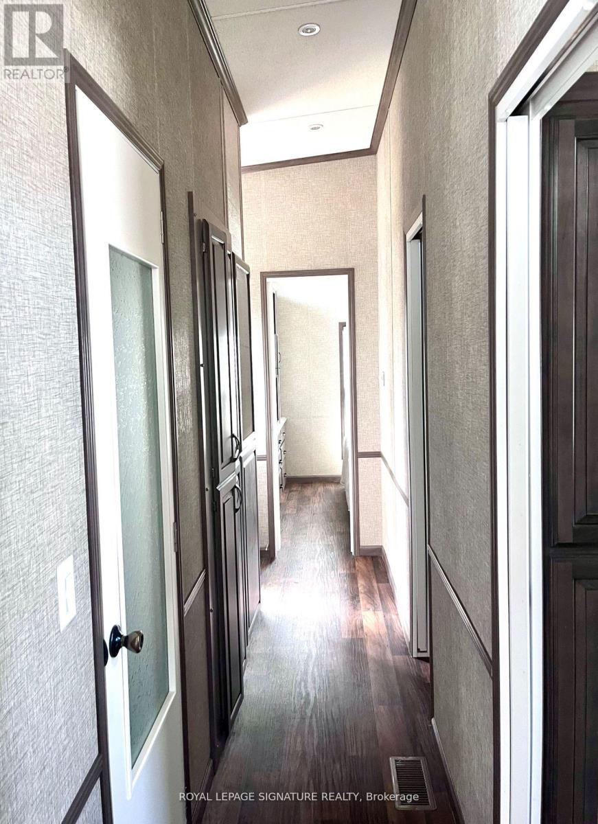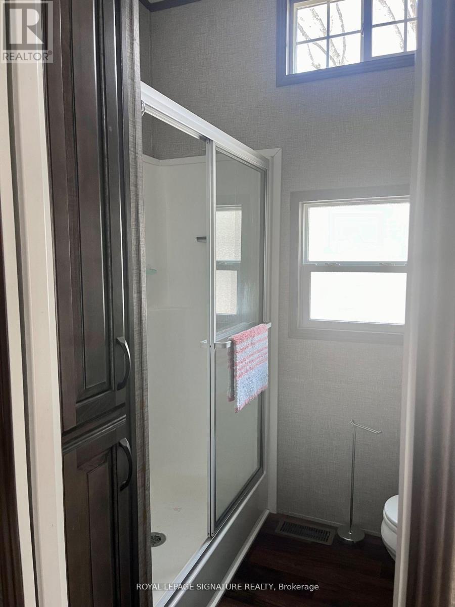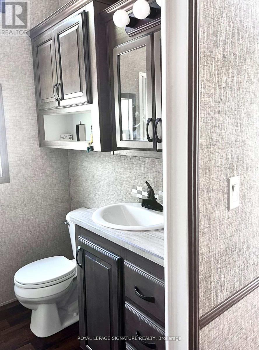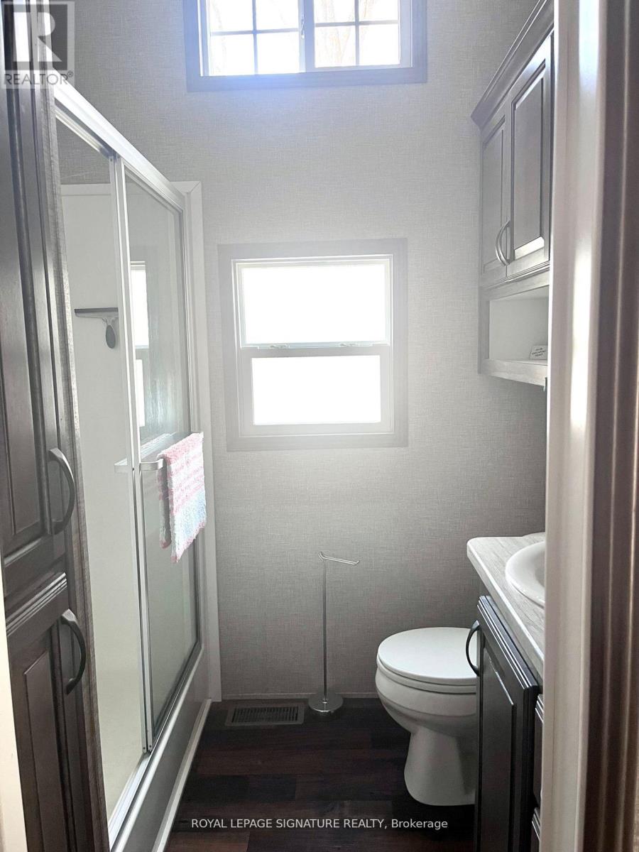 KICK-BACK & RELAX AT AMENITY -RICH "NESTLE IN" RESORT ALONG EMILY CREEK- Discover an affordable way to enjoy the Summer Season with this 2018 Frontier modular unit by General coach gives you 540 sq ft of open concept living featuring vaulted ceilings. This unit comes fully furnished & is bright & spacious, modern & inviting for May-Oct season. The kitchen is massive & features a peninsula with bar stools for casual eating. By any measure, this is one of the best kitchens you can have with full appliances, double sink, windows & a built-in microwave for all your needs. There are 2 bedrooms & 1 3-piece bath that all have tons of storage, clean vinyl plank flooring. Bedroom 2 has a custom bunk bed with easy to access stairs with storage for safety & functionality. Outside the huge deck coverage partially by sizable. (id:64974)