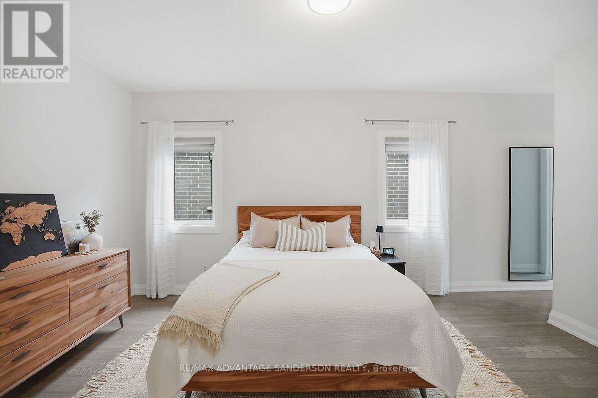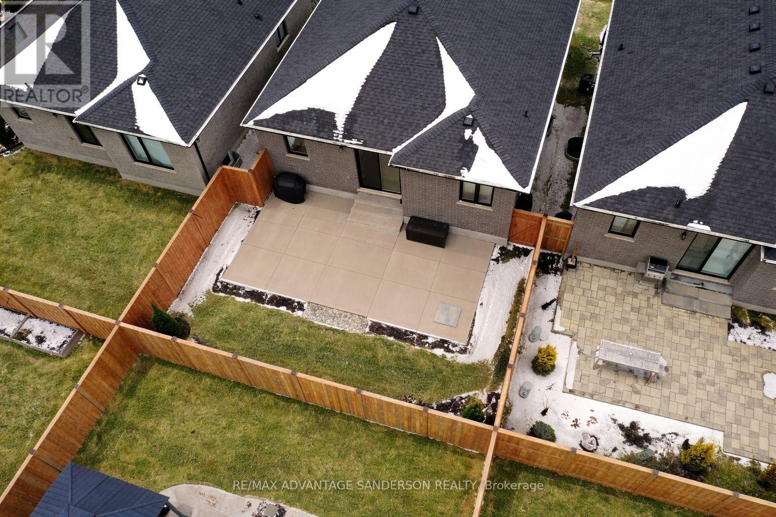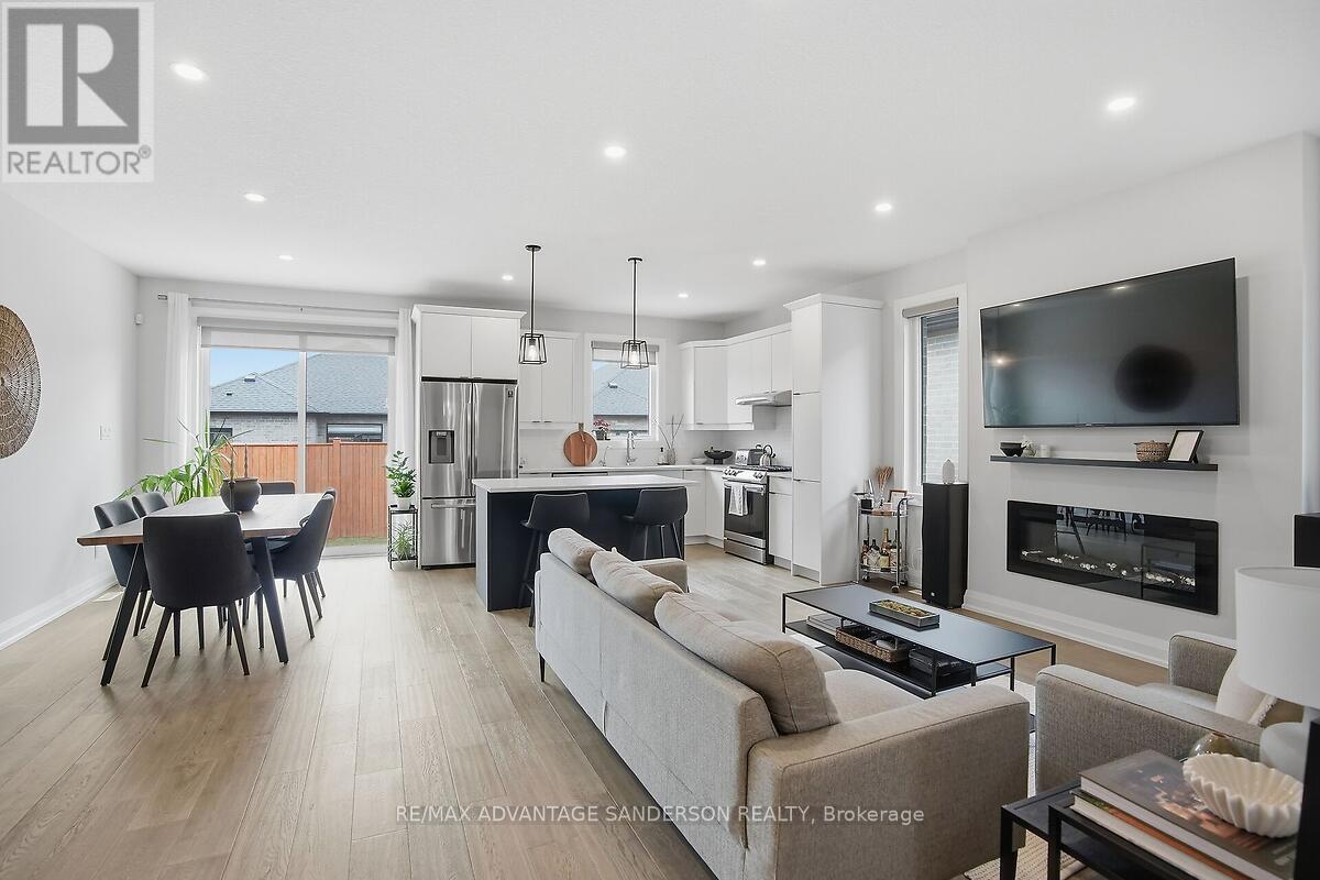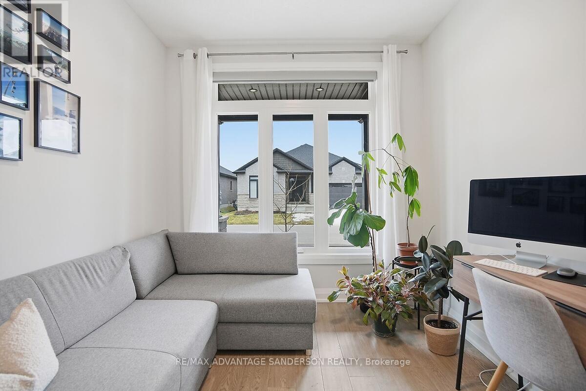 Welcome to Kilworth Heights! Enjoy hiking trails and nature in Komoka Provincial Park and a short walk to the future Crestview Crossings amenities and the upcoming Catholic elementary school. This location is truly ideal and close to all amenities! Perfectly positioned within the community at 383 Daventry Way, this vacant land condo offers luxurious living from top to bottom. Clean, bright, and meticulously maintained, this home features hardwood flooring, 8-foot doors, and an open concept layout filled with natural light. With 2+1 bedrooms, 3 full bathrooms and a spacious mudroom attached to the double car garage, the thoughtful floor plan is designed for comfort. The spacious primary suite includes a walk-in closet and a stunning 5-piece spa-inspired ensuite complete with a double vanity, glass shower, and a relaxing soaker tub. The kitchen is a standout with custom cabinetry, stainless steel appliances, quartz countertops, under-cabinet lighting, gas stove, and a dedicated drinking faucet equipped with a two-stage filtration system. The bright, fully finished basement adds impressive living space, featuring luxury vinyl plank flooring, an oversized family room with a wet bar and bar fridge, a spotless laundry room with tiled floors, a generous bedroom with an egress window, and a third full bathroom with a double vanity. The lower level storage room offers ample space, a tankless hot water heater and a recirculating pump that provides instant hot water throughout the home. The beautifully landscaped, fully fenced backyard offers privacy and a huge concrete patio - perfect for relaxing or entertaining. Full of upgrades, ideally located, and cared for with exceptional pride, this home is truly the crown jewel of the community. Come see it for yourself! (id:64974)