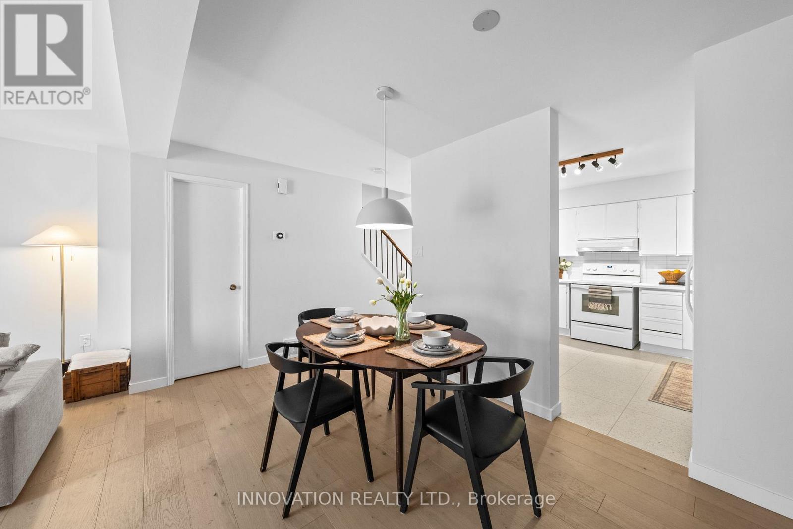 Welcome home to this beautifully updated 3-bedroom, 3-bath townhome in a well-run condo community in Greenboro South. Thoughtfully renovated from top to bottom with approximately $80,000 in owner updates, this home is truly move-in ready and designed for everyday living. The main floor offers a welcoming entry with custom closet, bench, and tile leading into bright, open living and dining spaces with updated flooring and a refreshed kitchen. It's a space that feels comfortable, functional, and easy to enjoy. Upstairs, you'll find a modern main bathroom, and three generous bedrooms, including a primary suite with a renovated ensuite. Fresh finishes throughout keep the home feeling clean and cohesive. The finished basement adds valuable living space with upgraded flooring, perfect for a family room, home office, or workout area. Step outside to a beautiful backyard retreat with a large deck, landscaped gardens, fruit trees, and a mature shade tree. Best of all, the yard backs directly onto a walking trail, ideal for morning strolls or evening unwinding. The front yard and entry have also been upgraded with interlock, adding great curb appeal. Water is included in the condo fees, and the community is known for being well managed and proactive with repairs and updates, making this an easy place to settle in and feel at home. A wonderful opportunity in a quiet, connected neighbourhood close to parks, transit, and everyday amenities. (id:64974)