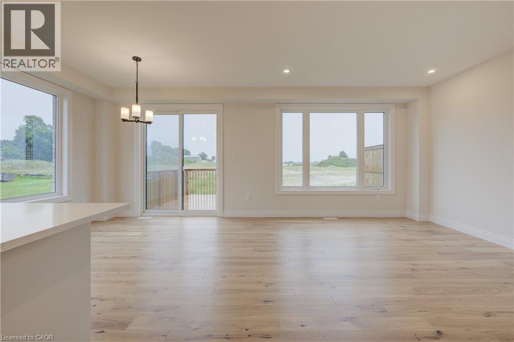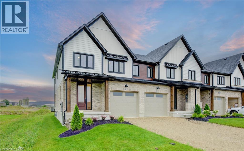 Welcome to The Town Collection at Maitland Meadows - The Homestead model is where modern farmhouse charm meets calm, connected living. This bright end unit offers 1,810 sq ft of thoughtfully designed space, filled with natural light and upscale finishes. With 9' ceilings and an open concept layout, the main floor feels airy and inviting - from the flexible front room (perfect for a home office or playroom) to the kitchen's quartz island that anchors the dining and living areas. Upstairs, the spacious primary suite features a walk-in closet and private ensuite, while two additional bedrooms and second floor laundry make family life effortless. Energy efficient construction helps keep costs low and comfort high, and the full basement offers room to grow. Complete with a deck and stylish finishes, this home is move-in ready, and if you're looking for that attached garage feature, it's here too! Designed for those who love the modern conveniences of new construction and the peaceful rhythm of small town life. For a full list of features and inclusions visit our Model Home located at 122 Bean Street in Harriston. (id:64974)