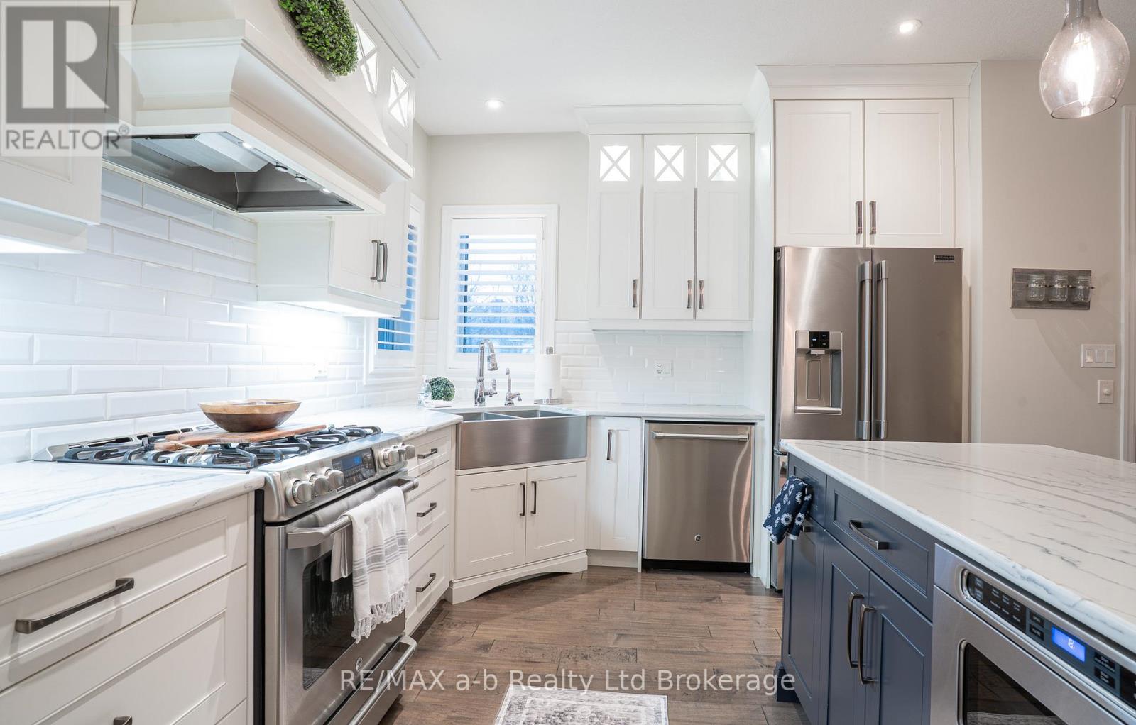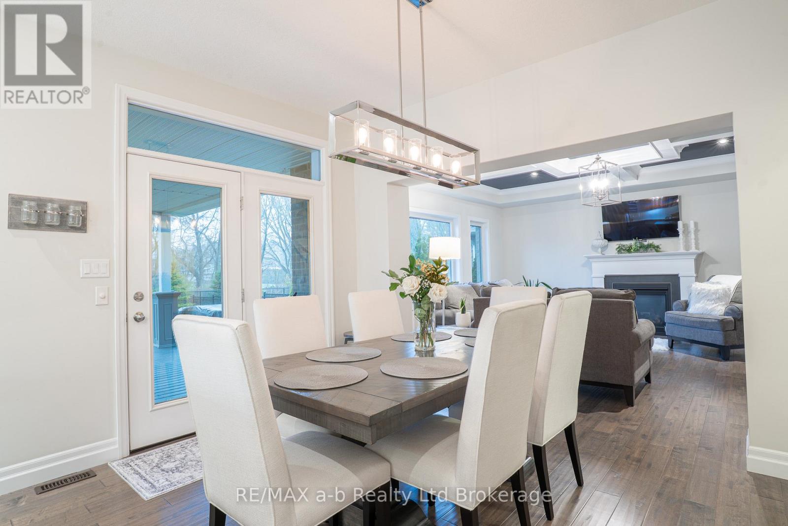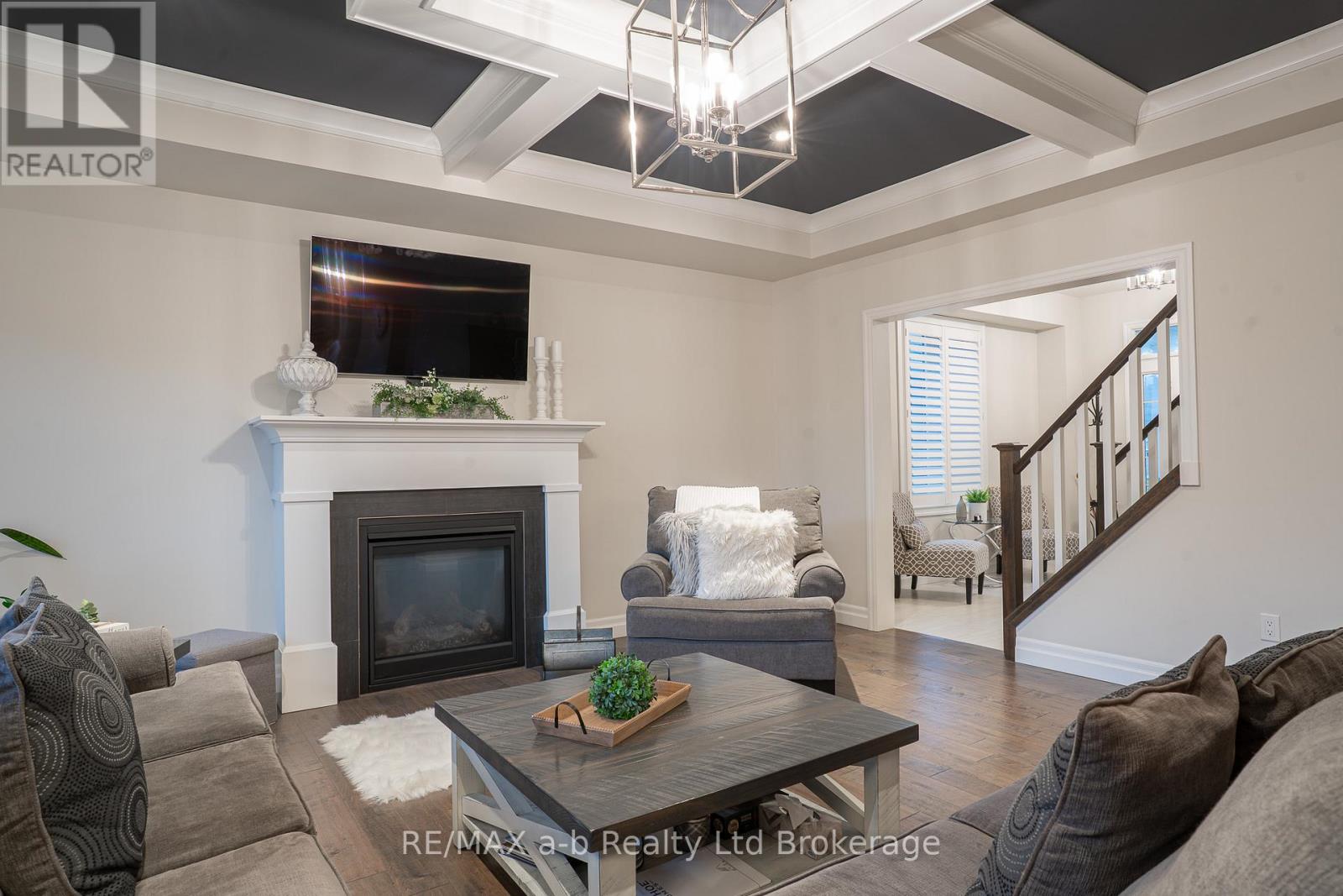 Offered for the first time, this custom-built home is ideally located backing onto green space and the Trans Canada Trail. Featuring an extra-wide driveway, oversized garage, covered rear porch, and a large shed, the property offers both functionality and outdoor enjoyment. The main floor showcases coffered ceilings, custom cabinetry, hardwood flooring, and a dedicated office space. Bright windows provide an abundance of natural light and create a seamless connection to the backyard. Upstairs, the home offers a spacious primary bedroom with ensuite, along with three additional bedrooms, a full bathroom, and convenient second-floor laundry-well-suited for family living. The fully finished basement includes a recreation room, den, additional bedroom, bathroom, and a second laundry area with washer and dryer. A true move-in-ready home, thoughtfully finished throughout and ready to enjoy. (id:64974)