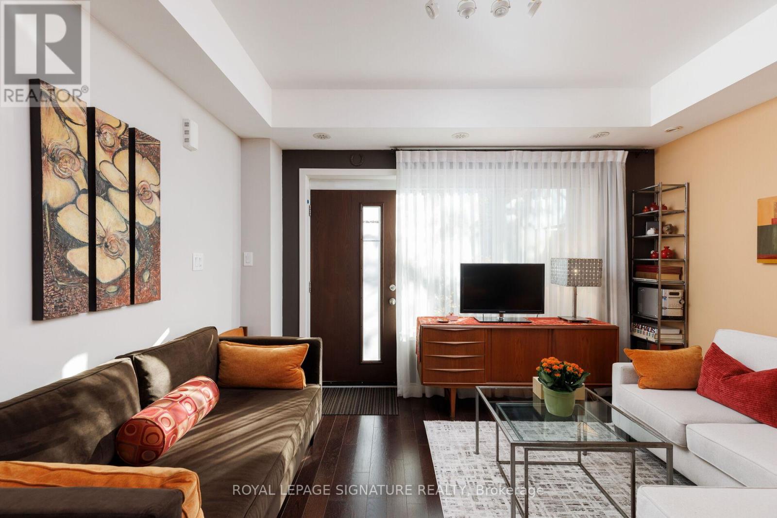 Rarely Offered Modern And Spacious 1-Bedroom TownHome On Cole Street Featuring Two South-Facing Terraces (BBQs Allowed). Enjoy An Open-Concept Layout With Hardwood Floors Throughout And Tasteful, Quality Finishes. The Unit Is Freshly Painted And Features A Renovated Bathroom With Floor-to-Ceiling Designer Ceramic Tiled Shower. The Master Suite Includes A Large Walk-In Closet And A Walkout To The 2nd Terrace. Plenty Of Storage Is Available Inside And Outside (two lockers). This Is The Perfect Alternative To A High-Rise Condo. The Location Offers Unmatched Convenience With Freshco, Tim Hortons, TTC And Much More Just Steps Away. You Are Down The Street From The Aquatic Centre, The New Arts and Cultural Centre, And A 6-Acre Park And Community Centre With A Gym And Indoor Track. Includes An Oversized Built-In Garage With Direct Entry To The Unit. Benefit From Low Maintenance Fees, A 100 Bike Score, 99 Walk Score, and 94 Transit Score. Fantastic Central Location Close To Everything - Just Move In And Enjoy! All Appointments Mon-Sun From 11am-6pm Daily. (id:64974)