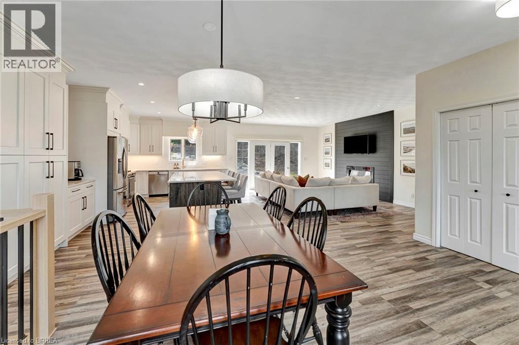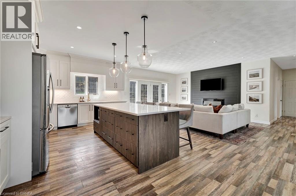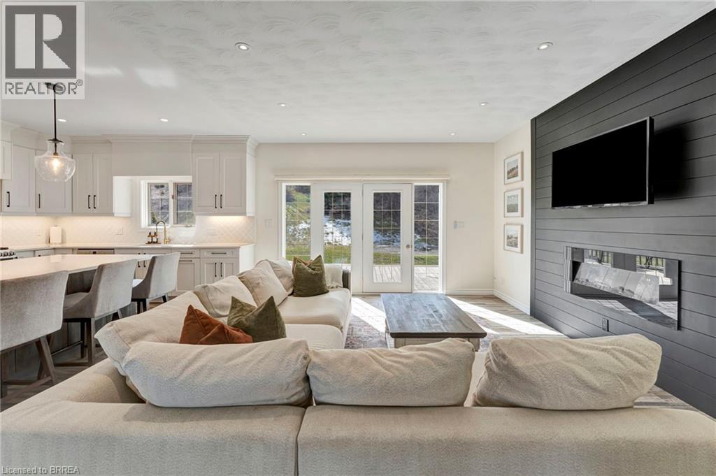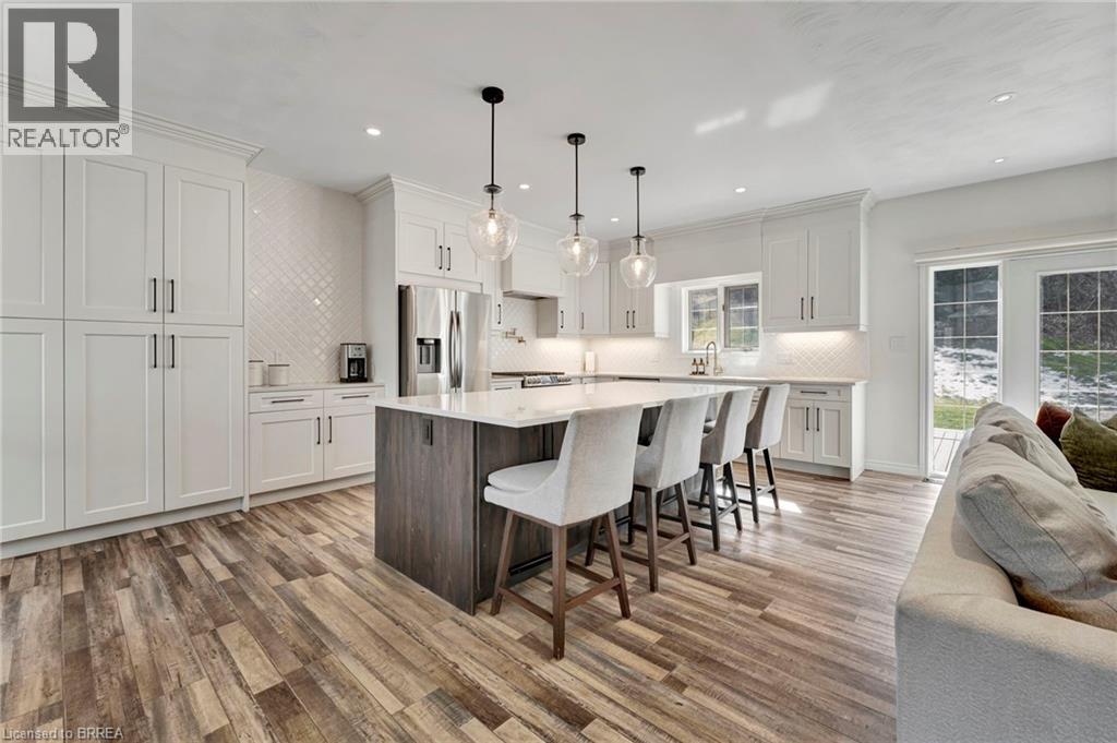 Finally—space to live the way you’ve been wanting. Set on a quiet dead-end road, this fully updated all-brick bungalow sits on 1.61 acres of privacy, space, and breathing room—something that’s getting harder to find. Step inside and the main floor immediately feels like home. Bright, airy, and designed for everyday living, it’s perfect for effortless entertaining and family life. The kitchen is a standout in all the right ways: floor-to-ceiling soft-close cabinetry, quartz countertops, a pot filler, and a large island that becomes the hub of the home. Busy school mornings, weekend gatherings, or late-night conversations—everything naturally comes together here. The living space is warm and inviting with its fireplace and custom shiplap detail, while patio doors lead straight out to the back deck—perfect for summer nights or morning coffee overlooking your property. Three spacious bedrooms complete the main level, including a primary suite that truly feels like an escape, with walk-in closet, spa-style bath, and your own private walkout to the deck. Downstairs, there’s even more room to spread out. The fully finished lower level features a fourth bedroom, full bathroom, and a versatile space that adapts to your life—home office, gym, or the ultimate hangout spot. A cozy gas fireplace and built-in dry bar make this a space everyone naturally gravitates to. Outside, the story continues. Picture nights under the stars around a bonfire, kids exploring the wooded retreat, or simply enjoying the quiet of country living. There’s room to play, relax, and make memories—exactly what a home like this was made for. Peace of mind comes standard. Major updates include a new septic tank and A/C (2025), water filtration system, and all interior upgrades—so you can move in and simply enjoy. All this, just minutes to Burford, a short drive to Brantford, and quick access to Highway 403—privacy without sacrificing convenience. This isn’t just a move—it’s a change in how you live. (id:64974)