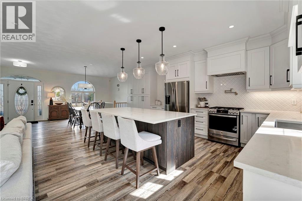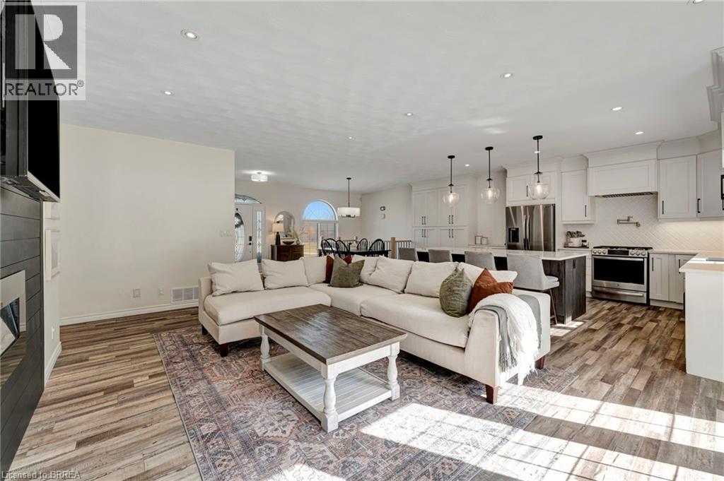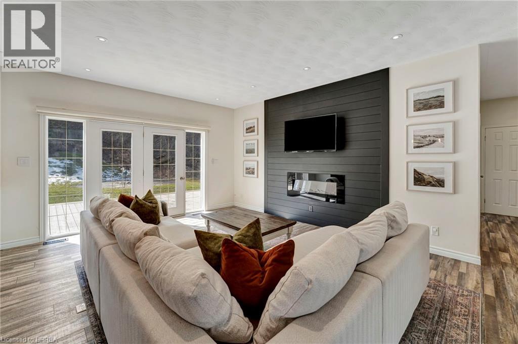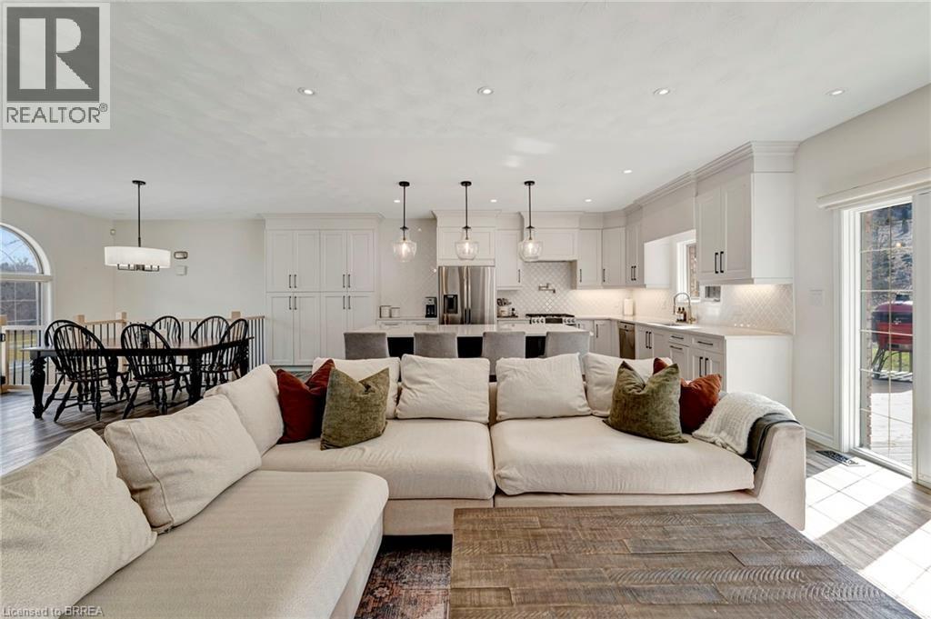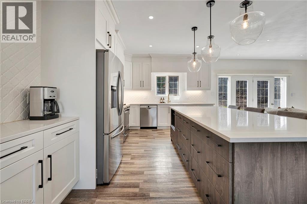 Finally—space to live the way you’ve been wanting. Set on a quiet dead-end road, this fully updated all-brick bungalow sits on 1.61 acres of privacy, space, and breathing room—something that’s getting harder to find. Step inside and the main floor immediately feels like home. Bright, airy, and designed for everyday living, it’s perfect for effortless entertaining and family life. The kitchen is a standout in all the right ways: floor-to-ceiling soft-close cabinetry, quartz countertops, a pot filler, and a large island that becomes the hub of the home. Busy school mornings, weekend gatherings, or late-night conversations—everything naturally comes together here. The living space is warm and inviting with its fireplace and custom shiplap detail, while patio doors lead straight out to the back deck—perfect for summer nights or morning coffee overlooking your property. Three spacious bedrooms complete the main level, including a primary suite that truly feels like an escape, with walk-in closet, spa-style bath, and your own private walkout to the deck. Downstairs, there’s even more room to spread out. The fully finished lower level features a fourth bedroom, full bathroom, and a versatile space that adapts to your life—home office, gym, or the ultimate hangout spot. A cozy gas fireplace and built-in dry bar make this a space everyone naturally gravitates to. Outside, the story continues. Picture nights under the stars around a bonfire, kids exploring the wooded retreat, or simply enjoying the quiet of country living. There’s room to play, relax, and make memories—exactly what a home like this was made for. Peace of mind comes standard. Major updates include a new septic tank and A/C (2025), water filtration system, and all interior upgrades—so you can move in and simply enjoy. All this, just minutes to Burford, a short drive to Brantford, and quick access to Highway 403—privacy without sacrificing convenience. This isn’t just a move—it’s a change in how you live. (id:64974)