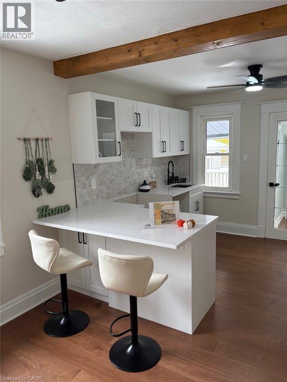 Beautifully Renovated, Move-In Ready, and Packed With Value This stunning updated home delivers the perfect mix of character, comfort, and modern design. Located on a quiet one-way street in a family-friendly area, this 3+1 bedroom, 2 bathroom home has been extensively upgraded and is completely move-in ready. Step inside to an inviting open-concept main floor featuring over 1,500 sq. ft. of finished living space, exposed wood beams, and brand new engineered hardwood flooring. The stylish new kitchen is finished with white quartz countertops, updated fixtures, and a layout that flows beautifully for both everyday life and entertaining. Both full bathrooms have been tastefully renovated with sleek tile work and premium shower panel systems. The main floor offers three bedrooms all on one level, making this an ideal fit for families or downsizers wanting convenience without sacrificing space. The finished basement expands your options with a 4th bedroom, a large rec room, and additional flexible space for work, fitness, or relaxation. Step out back to a spacious deck overlooking the yard—perfect for hosting, unwinding, or enjoying the warmer months. Big-ticket upgrades including a new lifetime roof, exterior improvements, newer windows, upgraded electrical, and modern lighting provide real peace of mind. Priced at $485,000, this is a rare chance to own a fully updated home in a great location close to schools, parks, shopping, and transit. Stylish, functional, and turn-key — this one is ready to impress. (id:64974)