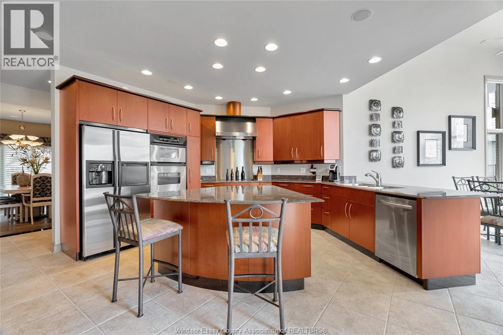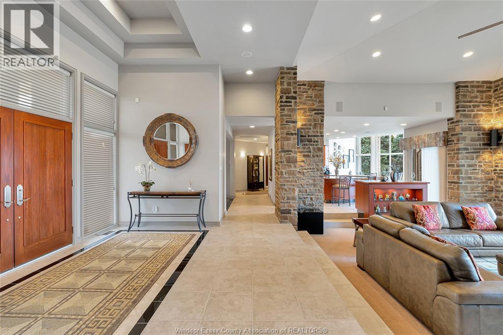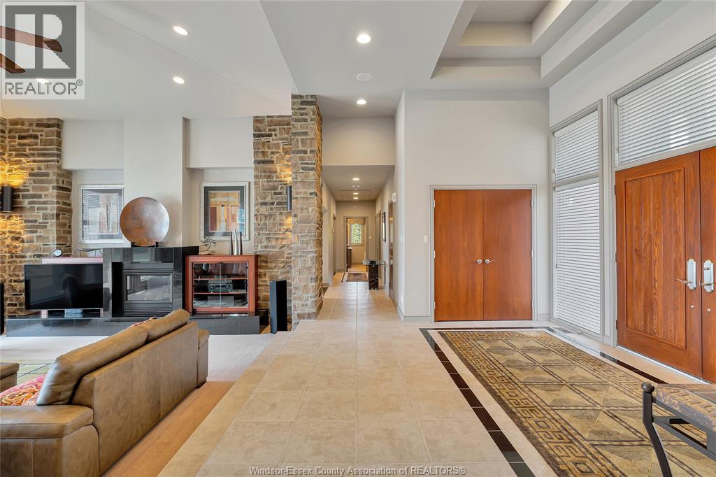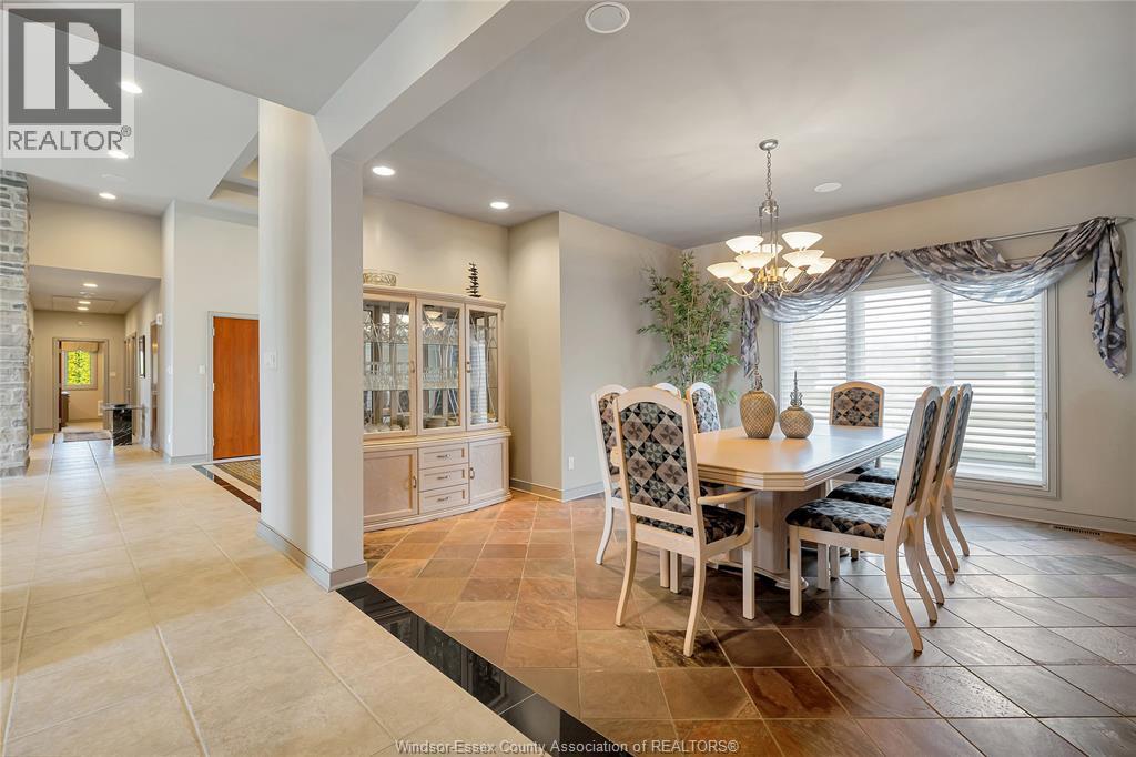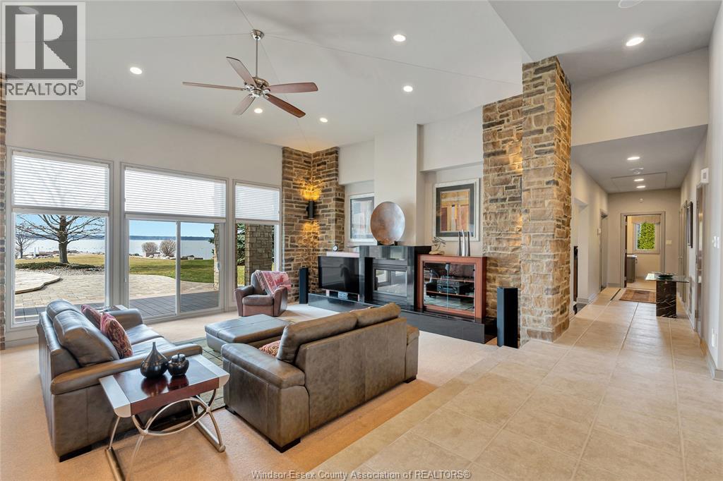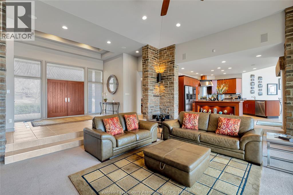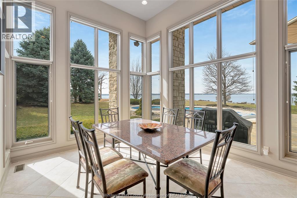 Rare opportunity to own one of Amherstburg's most distinctive waterfront properties. This custom-built executive ranch offers approximately 3,200 sq. ft. of beautifully maintained living space and is perfectly positioned across two expansive building lots with exceptional frontage and depth along a private shoreline. Tucked away on a quiet, one-of-a-kind private waterfront cul-de-sac, this property offers a rare level of privacy and tranquility. Quality craftsmanship is evident throughout with custom cabinetry, spacious principal rooms, and beautiful water views from multiple areas of the home. Professionally engineered shoreline protection provides lasting peace of mind while preserving the natural waterfront setting. Step outside to your own private retreat featuring professionally landscaped grounds and a saltwater inground pool-perfect for relaxing or entertaining. Western exposure captures breathtaking sunsets over the water. ADDITIONAL PHOTOS AVAILABLE UPON REQUEST. SEE DOCUMENTS FOR FEATURE SHEET (id:64974)