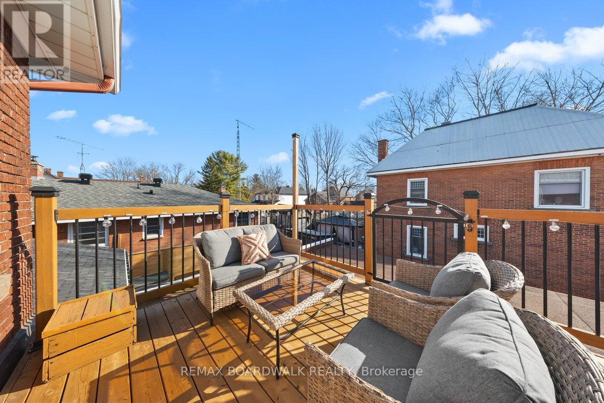 A home with presence, history, and a remarkable sense of permanence. This classic red brick Georgian offers the character and symmetry of a bygone era, thoughtfully paired with modern updates that make everyday living feel effortless. Solidly built and meticulously maintained, this is a home you can feel confident in from the moment you walk through the door. The main level is bright and spacious, anchored by a beautifully updated kitchen featuring quartz countertops, a breakfast bar, and lovely, modern, stainless steel appliances. A bonus family room/sunroom adds flexibility for both quiet evenings and lively gatherings, while the overall flow of the home feels both functional and inviting. Upstairs, the primary suite is a true retreat-generous in scale and finished with care. The ensuite is elegantly appointed with a glass shower, double vanity with granite, and a separate soaker tub, creating a space that feels calm, refined, and quietly indulgent. Three additional bedrooms and a full bath complete the second level. (One of the bedrooms is so large, it could be split back into 2 rooms, bringing the total up to 5 beds if so desired.) Outside, the property continues to impress. A large fenced yard offers space to relax, play, and entertain, complemented by a rebuilt rear deck and rebuilt second-storey deck-perfect for enjoying the seasons. Thoughtful upgrades include interlock landscaping, a newly built RV parking area complete with a 30-amp plug, and a brand new shed (2025). All details have been considered, with updated hot tub steps (2024) and a metal roof in excellent condition. Comfort and efficiency have not been overlooked. A new heat pump in the primary suite comes with a 10-year warranty, offering peace of mind for years to come. From its enduring construction to its long list of improvements, this home has been exceptionally well cared for. There is nothing to do here but move in... and enjoy. (id:64974)