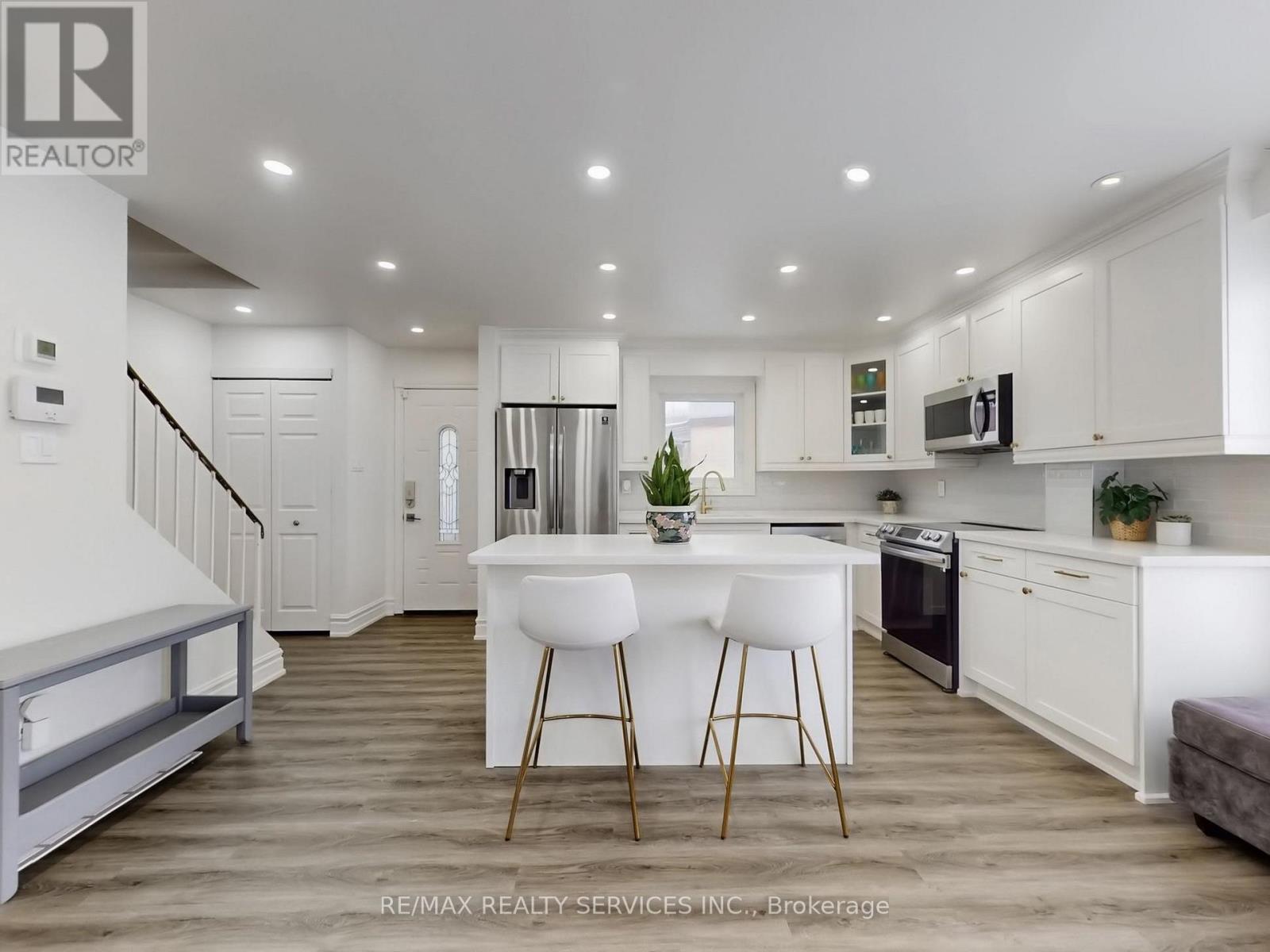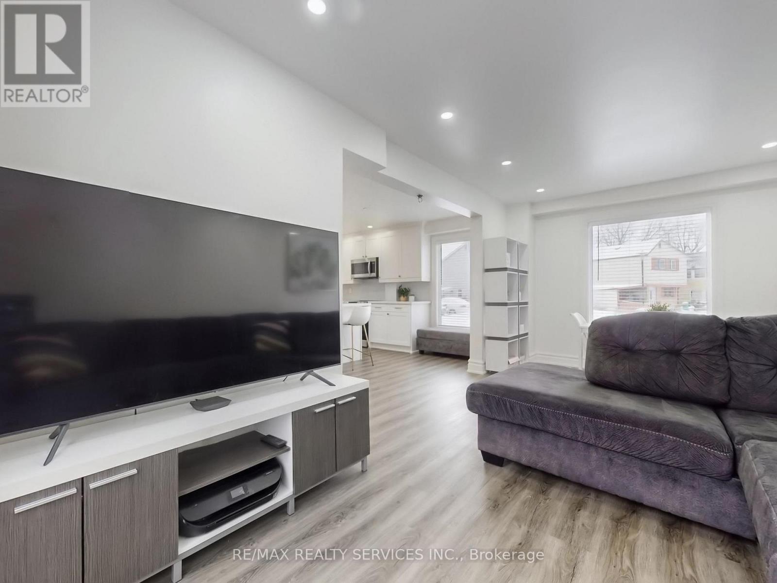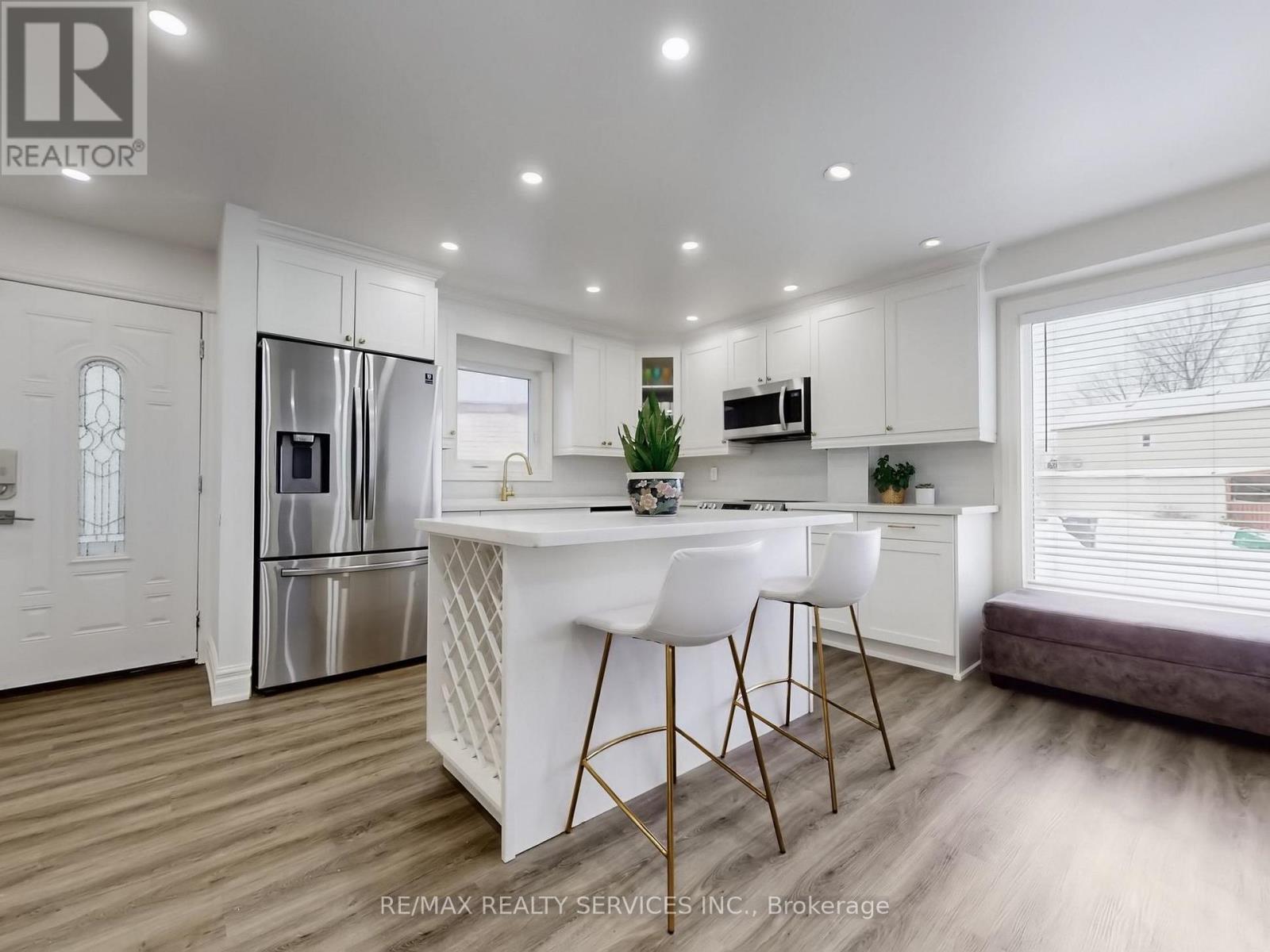 Welcome to 30 Haley Court - a beautifully renovated 3-bedroom detached home situated on a quiet, family-friendly court in Brampton's desirable Central community. The bright open-concept main level features stylish vinyl flooring, pot lights throughout, and large updated windows that fill the home with natural light. The upgraded chef-inspired kitchen offers a centre island, quartz countertops, backsplash, and stainless steel appliances, seamlessly flowing into the open living and dining areas with a walkout to a large deck - perfect for entertaining. Upstairs, you'll find three spacious bedrooms (previously a 4-bedroom layout, converted to maximize room sizes) and an updated 4-piece bathroom. The oversized primary bedroom includes his and her closets, providing ample storage. The finished basement with a separate side entrance adds valuable living space, complete with vinyl flooring, pot lights, and a full 3-piece bathroom - ideal for recreation, extended family, or flexible use. Major updates have already been completed, including furnace, A/C, windows, and appliances, offering peace of mind. The exterior features a large driveway accommodating 4+ vehicles with no sidewalk, along with a pie-shaped backyard complete with a spacious deck and large shed for extra storage. Conveniently located with easy access to highways, transit, shopping, hospitals, schools, Chinguacousy Park, the library, and Bramalea City Centre - this turnkey home offers comfort, space, and an unbeatable location. MUST SEE! (id:64974)