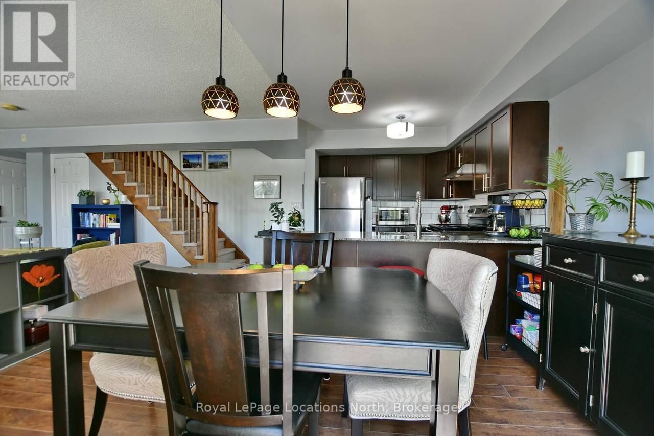 Located in the ever-popular Tanglewood, this beautiful & stylish Collingwood townhouse checks all the boxes for your permanent home or ideal weekend get-away. Generous natural light floods the spacious living, dining and kitchen areas. Primary bedroom has a large ensuite with separate bathtub and shower. Laundry located near the bedrooms for more convenience. Private south facing deck with room for entertaining. Single car garage with an interior entry leads to the stairs. Maintenance free with exteriors and grounds all taken care of. Included in the maintenance fees, garbage removal, snow removal, grounds maintenance, common elements maintenance/repairs, visitor parking. Hot Water Tank Rental - $50.45. Estimated utility costs are, $235 a month. New Air Conditioner 2023. This home is steps to your community inground pool, relax & enjoy the peace and outdoor tranquility this beautiful area has to offer, trails, restaurants, golf courses, shopping, the lakefront and so much more! The furniture is negotiable, making your move that much easier. (id:64974)