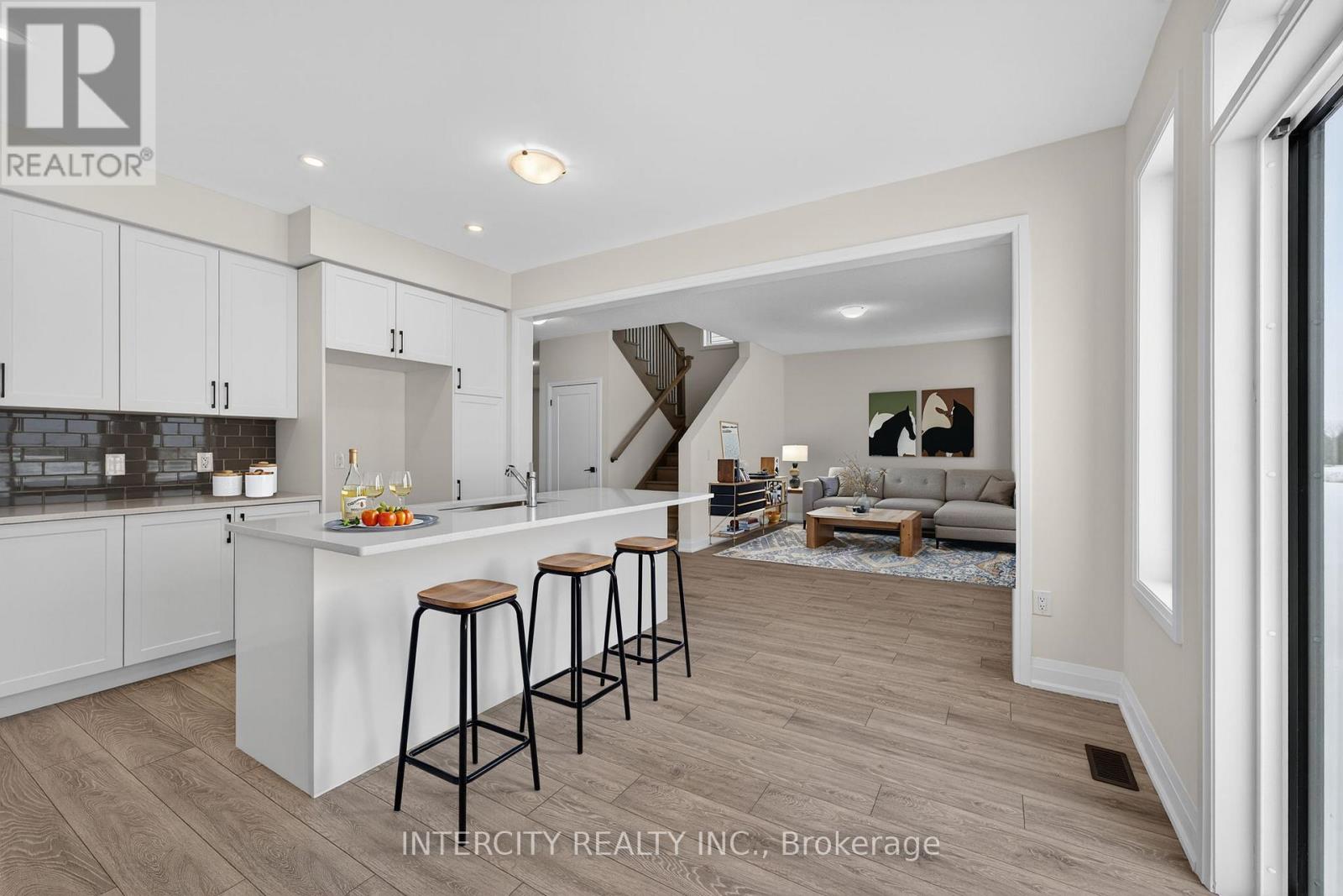 Experience the prestige of a never-lived-in home! This 2,199 sq. ft. (builder's plan) two-storey residence offers 4 bedrooms and 4 bathrooms within a bright, open-concept layout. The space is accented by a stained staircase, pot lights in the kitchen, and upgraded flooring through the kitchen, breakfast area, and upper hallway, along with upgraded tile on both the main and upper levels. Direct access from the garage adds convenience, while black exterior hardware completes the home's modern curb appeal. The kitchen features enhanced cabinetry, a pantry, deep upper cabinets above the fridge, upgraded countertops, a stylish backsplash, upgraded hardware, and an undermount rectangular sink-ideal for everyday living and entertaining. The primary suite offers two walk-in closets and a spa-like ensuite with separate vanities, an upgraded countertop with undermount sinks, a deep soaker tub, and pot lights. The upper bathrooms continue with upgraded cabinetry, hardware, and tile finishes throughout. Nestled in a premier master-planned hub with a school already built, you'll enjoy future amenities including scenic trails, shops, and vibrant parks. Experience the perfect blend of luxury and community, all just minutes from the world-famous beach! With a 2-car garage and pristine curb appeal, this home is ready for its very first owners. Some photos have been virtually staged for illustrative purposes only. (id:64974)