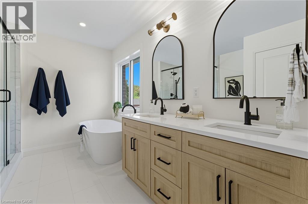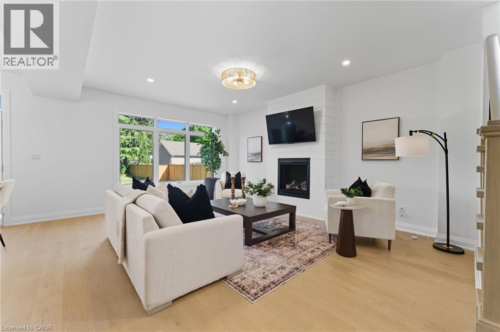 Welcome to 30 Manley Street—a show-stopping luxury residence in the heart of the sought-after village of Ayr, where timeless small-town charm meets modern elegance. This exceptional home offers over 3,600 sq. ft. of finished living space on a private, pool-sized lot on a quiet dead end street—just steps from parks, trails, schools, and everyday amenities. Inside, you’ll find 4+1 bedrooms, 3.5 baths, and upscale finishes throughout, including hardwood floors, quartz counters, and custom cabinetry. The chef’s kitchen is designed to impress with stainless steel appliances, a gas range, double oven, 9-ft island, coffee/wine bar, walk-in pantry, and abundant storage. The open-concept main floor also features a spacious living room with gas fireplace, a versatile bedroom/office, a stylish powder room, and an oversized mudroom with side entry. Upstairs, the custom white oak staircase leads to 3 generous bedrooms, each with its own walk-in closet. The luxurious primary suite showcases a spa-inspired 5-piece ensuite, while a convenient upper-level laundry room and main bath completes the space. The fully finished lower level is perfect for entertaining, offering a large recreation area, a full bathroom, and an additional bedroom. Outdoors, enjoy a large detached 21 x 21 garage, parking for 8 vehicles, and a family-sized yard—ready to bring your backyard dreams to life. Experience the warmth of Ayr’s vibrant community and the convenience of being just minutes from the 401. This home truly has it all—space, style, and location. Call your realtor today as this one won't last long. (id:64974)