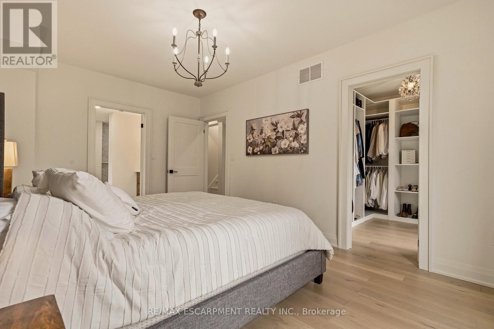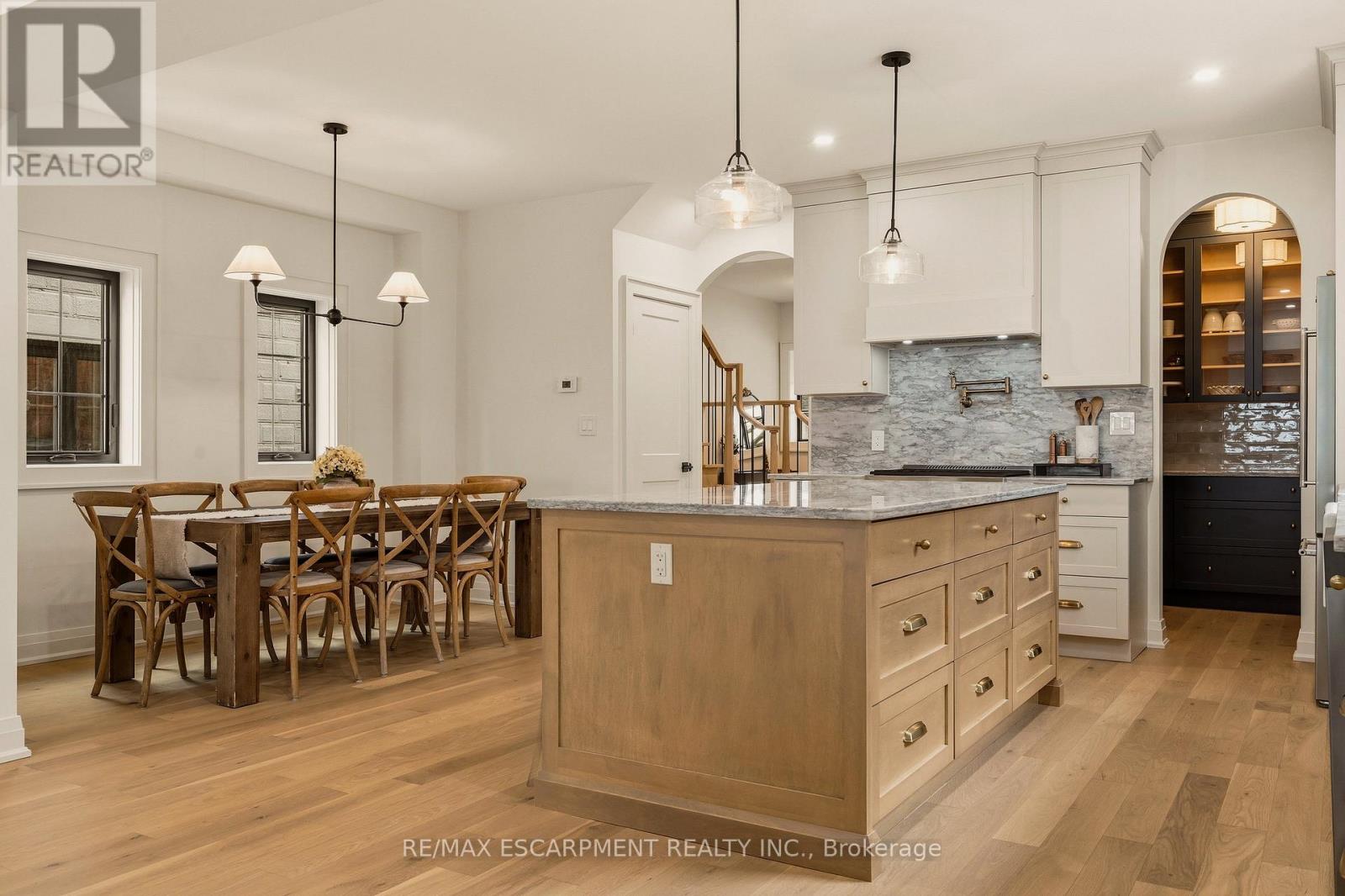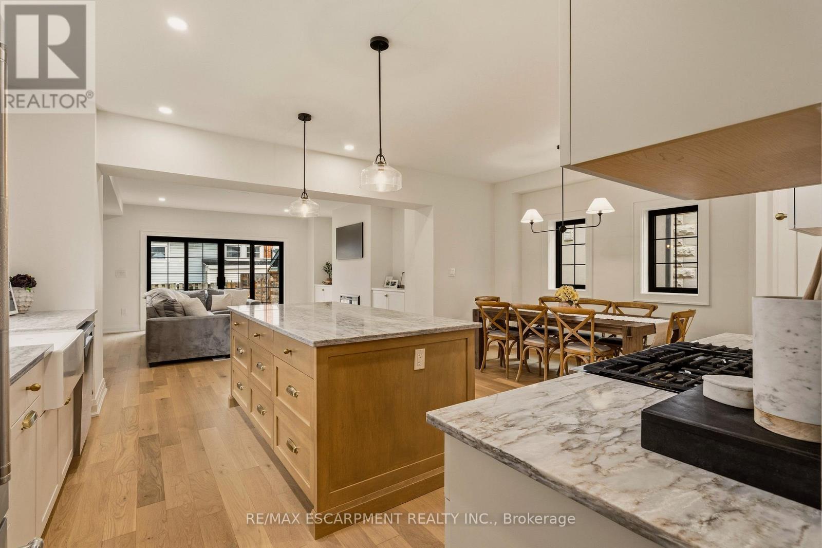 Step into a beautifully reimagined turn-of-the-century 2.5-storey brick home, where extensive renovations and thoughtful additions have transformed it into a stunning blend of historic charm and modern living-all perfectly set in the heart of downtown Dundas. A charming interlock walkway winds through lush perennial gardens to a welcoming covered front porch-an ideal spot to enjoy your morning coffee while taking in the peaceful, highly sought-after neighbourhood. Inside, timeless character blends beauty with thoughtful modern updates. The fully renovated main floor, complete with a seamless addition, showcases a dream kitchen designed to inspire both everyday living and effortless entertaining. Rich hardwood floors, beautiful office space, a warm and inviting living room, and a dedicated dining area create the perfect backdrop for gathering with family and friends, while a convenient mudroom offers easy access to the 3/4 garage. Upstairs, a stunning second-floor addition and renovation elevate the home with a beautifully finished primary retreat, featuring a spacious walk-in closet and a spa-like 5-piece ensuite. Additional bedrooms are generously sized and complemented by a well-appointed main bathroom. The third level offers even more versatility, with two extra bedrooms, perfect for that growing family or as exercise and creative spaces. This move-in ready gem offers the perfect balance of historic charm and modern living-an exceptional opportunity in one of Dundas' most desirable locations. (id:64974)