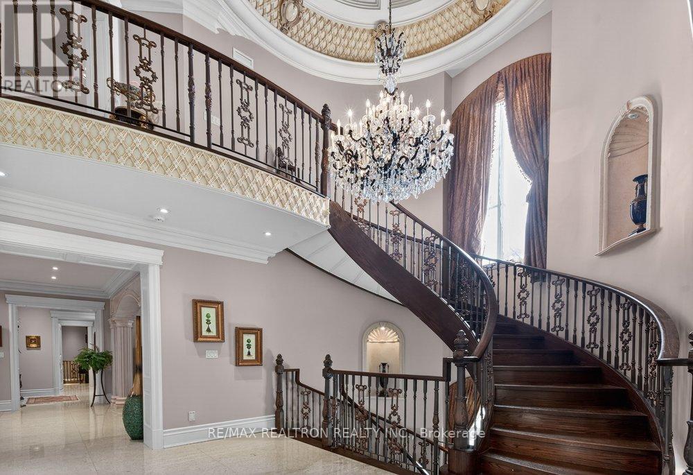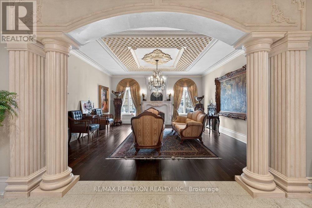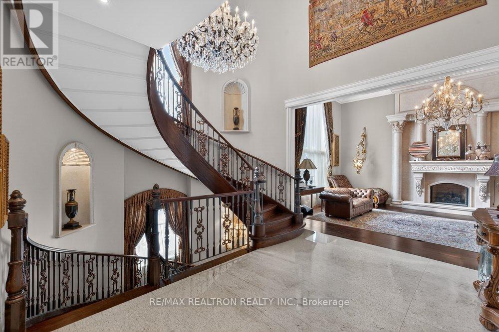 An ultra-rare gated Kleinburg estate set on an extraordinary 4.5 acres of impeccably manicured, conservation-backed grounds within one of Vaughan's most coveted estate courts. This European Castle-inspired residence offers approximately 11,000 square feet of refined living space, showcasing exceptional craftsmanship, soaring ceilings, and rich architectural detail throughout. The grand & highly functional layout is designed for elevated living and entertaining. Features include multiple kitchens, a main-floor butler's preparation kitchen, servant's staircase, private wine room, and a dramatic château-style lower-level wine cellar with tasting area. The professionally finished lower level further enhances the home's true estate caliber. Seamless indoor-outdoor living opens to storybook grounds with fairytale views, expansive terraces, an outdoor kitchen, saltwater pool with indoor cabana, and resort-style amenities. A heated six-car garage, multiple laundry centres, and top-tier finishes complete this world-class offering where privacy, luxury, and tranquility converge. Ideally located just steps to Kleinburg Village, schools, shops, and amenities, with convenient access to downtown Toronto and the airport. A truly irreplaceable residence. (id:64974)