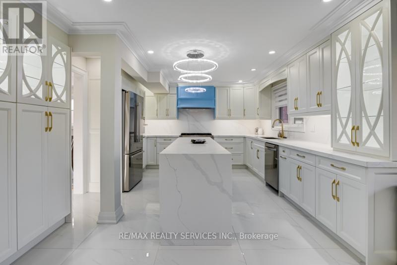 Stunning Detached Offering 4+3 bedrooms, 5 bath residence located in the East Woodbridge neighborhood. This home has undergone extensive renovations, showcasing premium finishes throughout. The custom kitchen, complete w/ a central island & top-of-the-line appliances, combined with family-sized dining room, creating a perfect setting for effortless entertaining. Step out onto the interlocked patio, which overlooks the private yard. The well-designed layout offers a main floor family room with a gas fireplace, main floor laundry area, and convenient access to the 3-car garage. Primary bedroom suite on the 2nd level, featuring his & hers walk-in closets as well as a luxurious 5 pc ensuite bath. Three additional bedrooms and two well-appointed 4 pc baths complete the 2nd floor. The finished basement offers a separate side entrance, living room, a Kitchen, 3 Bedrooms and 3 Pc Bath. (id:65010)