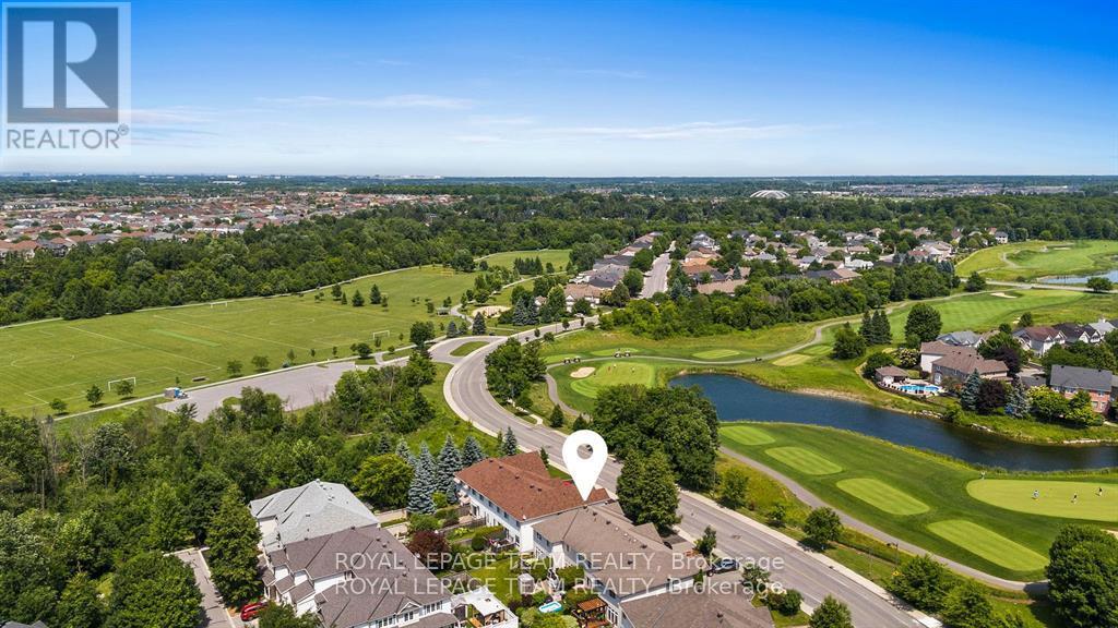 LOCATION! LOCATION! LOCATION! Fronting onto Award Winning Stonebridge Golf Course with views of pond, Monarch National, end unit No Road Fees! Extra long driveway: room for 3 cars! Open concept main floor with new upgraded kitchen, granite, ceramic, induction stove, includes cookware and showcases a large picture window that fills the lower level with natural light. Offering hardwood on main floor and in master, with TWO walk-ins, convenient 2nd floor laundry, finished lower level family room with fireplace. Beautifully landscaped, private deck. This home combines modern upgrades with an excellent location and scenic views. Prime spot! Updates include; Windows 2019 (all but 2 small ones); Furnace 2018; Roof 2016 Average Monthly Costs: Water $45; Gas: $93; Hydro: $63 (id:64974)