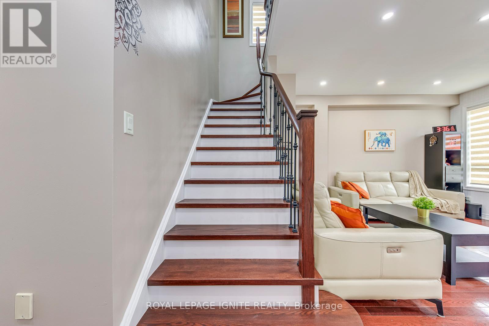 Fully upgraded detached home in the highly desirable Lakeside Village community, offering approximately 2,900 sq. ft. of total living space including a professionally finished basement. This spacious home features 4 bedrooms on the upper level and a 2-bedroom basement with a builder-finished separate entrance, currently generating rental income of $1,600-$1,800 per month. Enjoy a beautiful view from the balcony, 9-ft ceilings on the main floor, pot lights, a cozy fireplace, and separate living and family rooms. The modern kitchen is enhanced with extended cabinetry and backsplash, while upgraded washrooms and carpet-free flooring add style and comfort throughout. Additional highlights include garage access from the home, interlock stairs and walkway, a beautiful patio and porch, new furnace and roof (2023), a 200-amp electrical panel, and rough-in for central vacuum. With parking for up to 6 cars, this home is ideally located within walking distance to the lake and close to Trinity Common Mall, FreshCo, Hwy 410, schools, parks, and Turnberry Golf Club. A must see!! (id:64974)